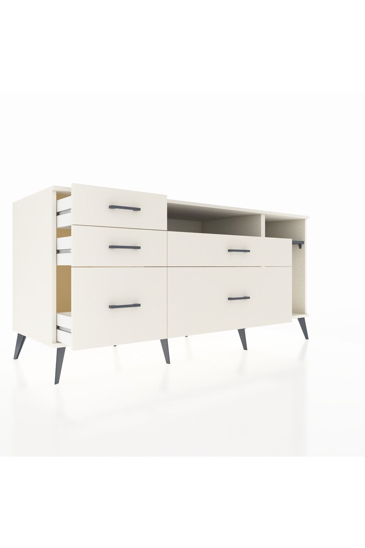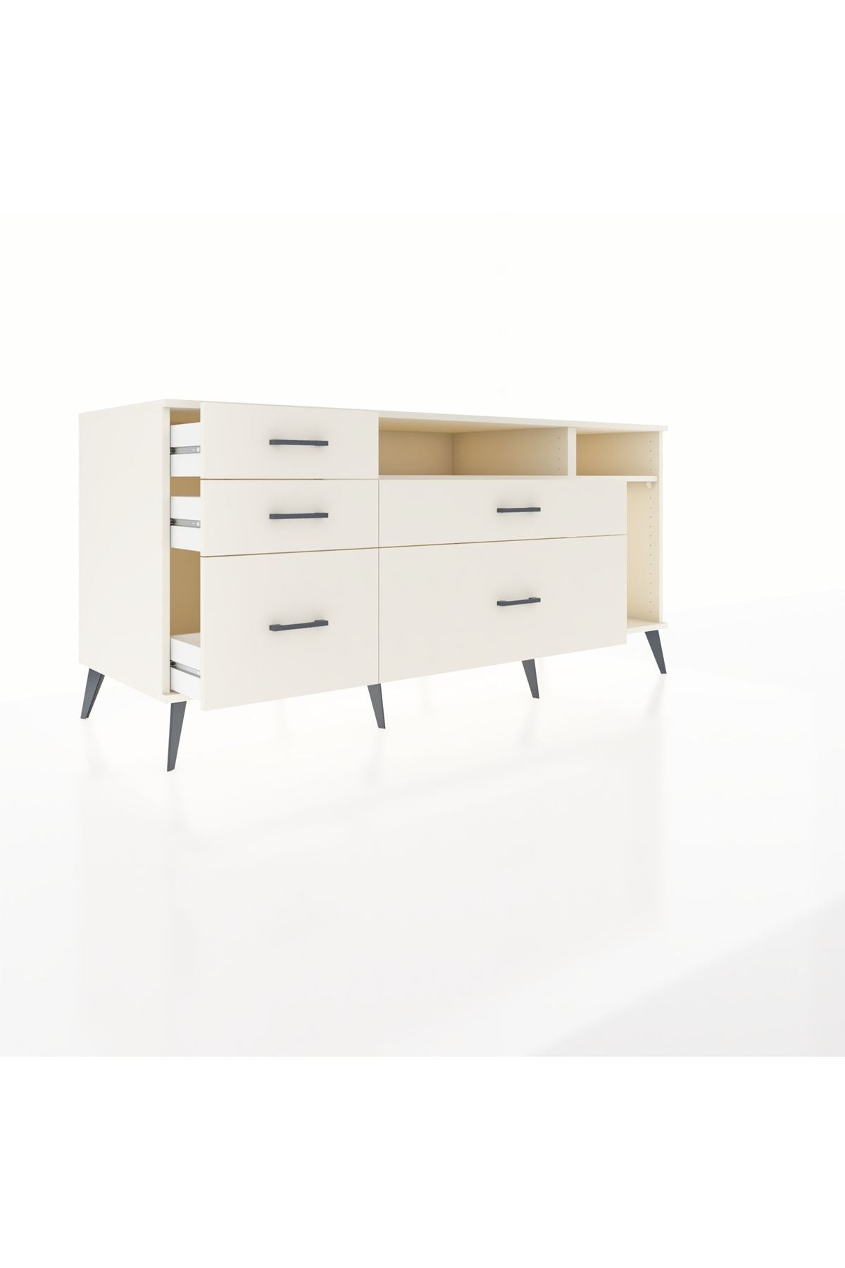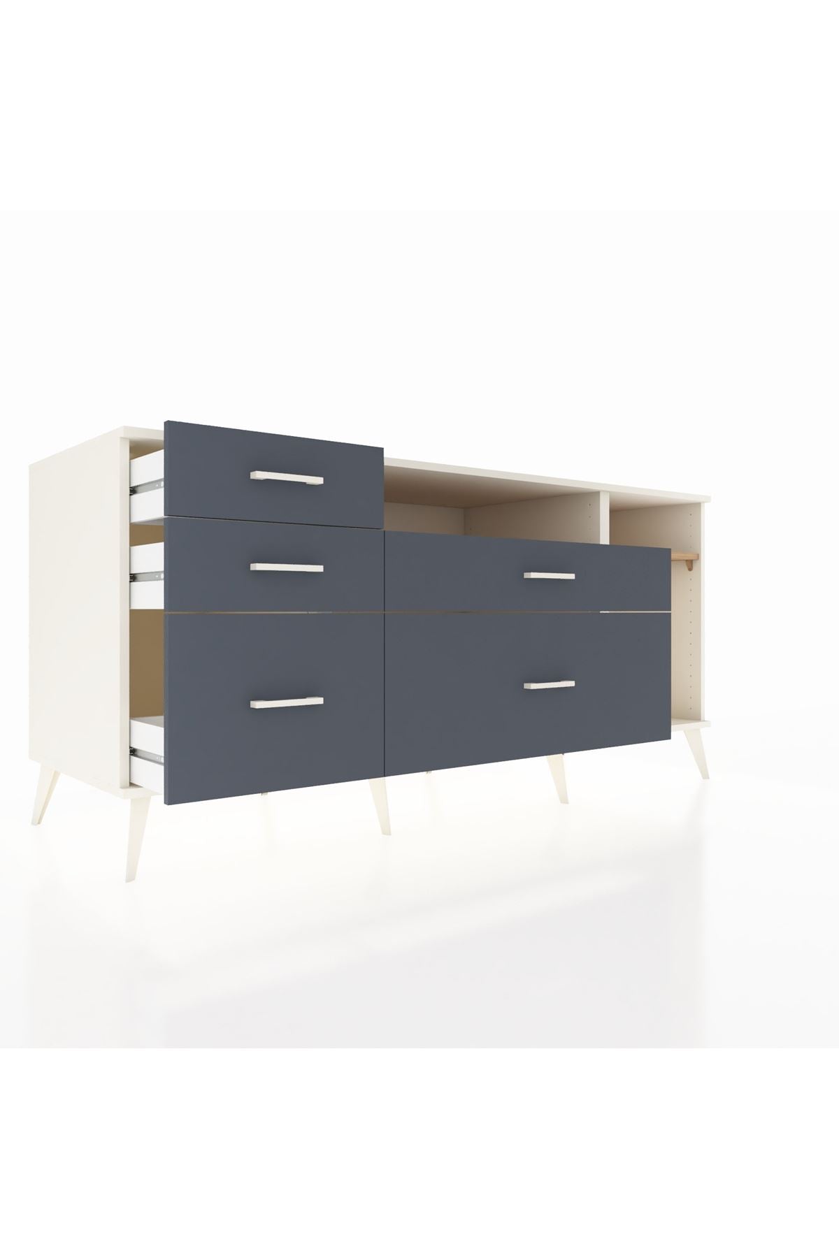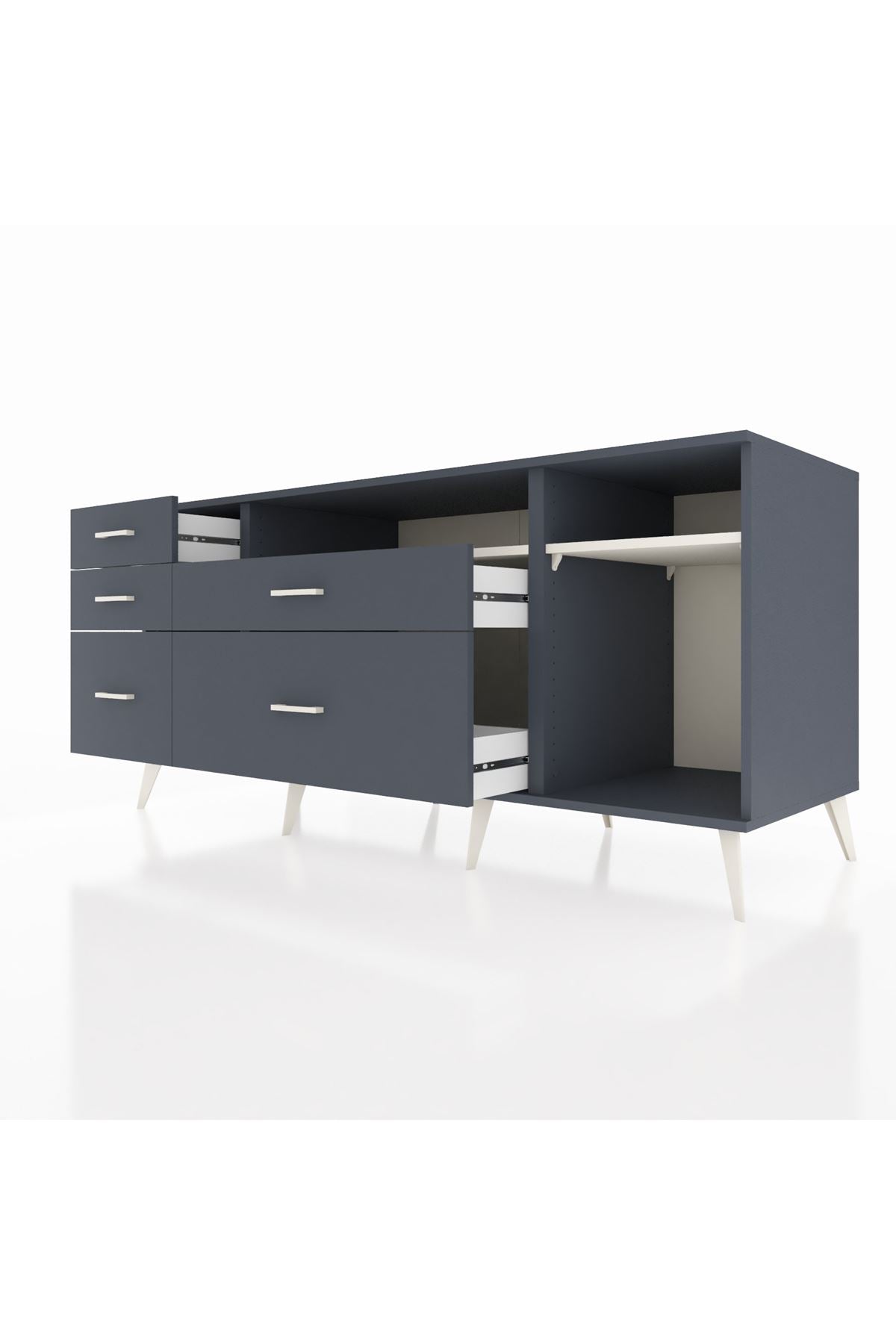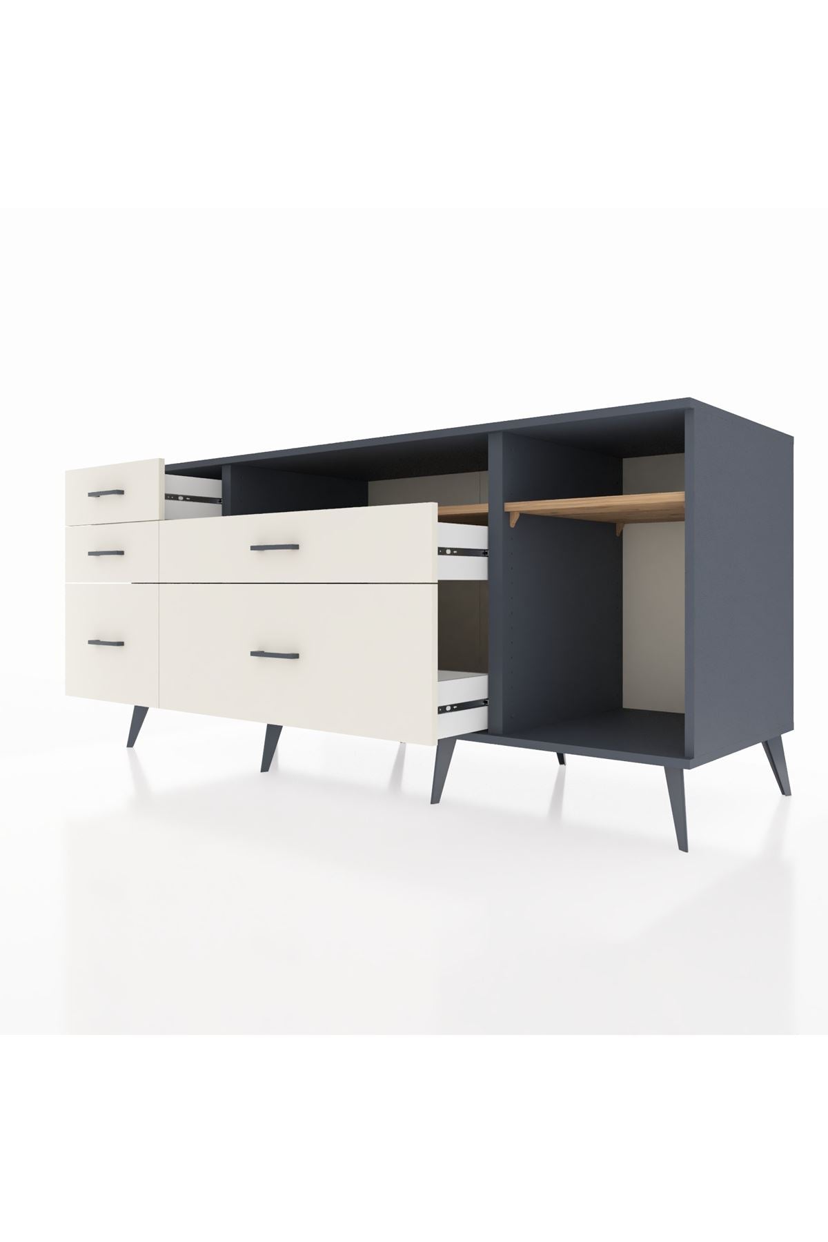 Kronos Konsol 2 Raflı 5 Çekmeceli 176x59x83, evinizin farklı odalarında kullanabileceğiniz çok yönlü bir mobilyadır.