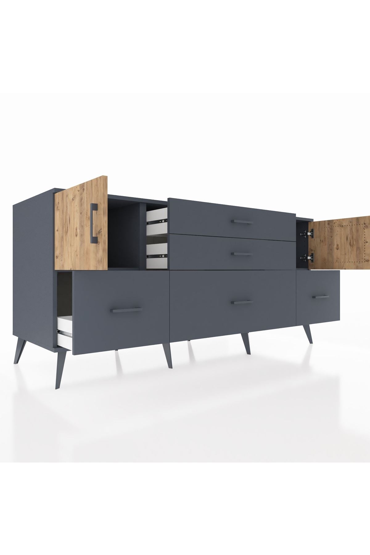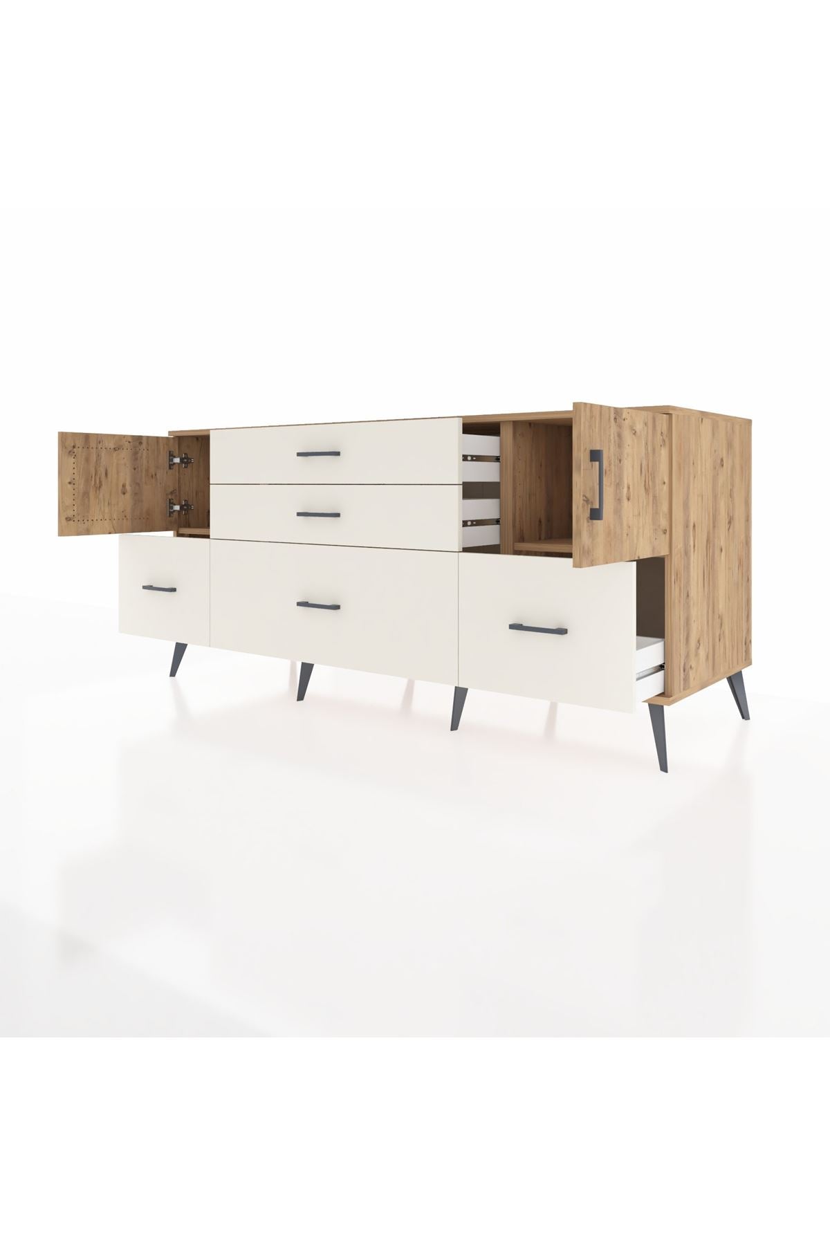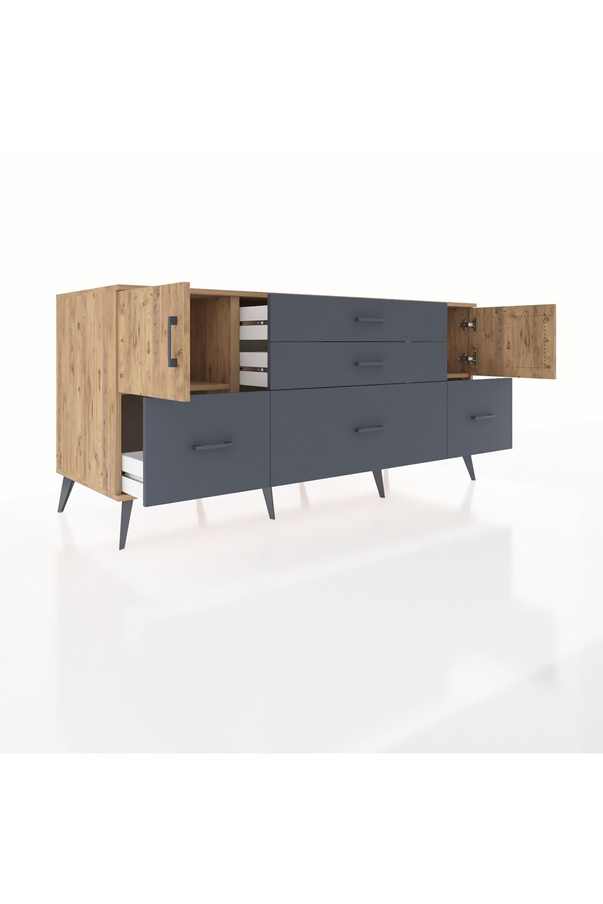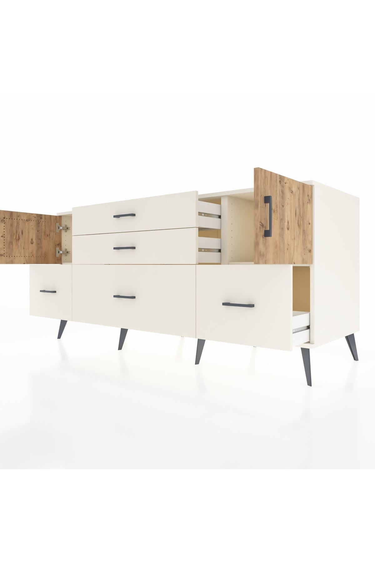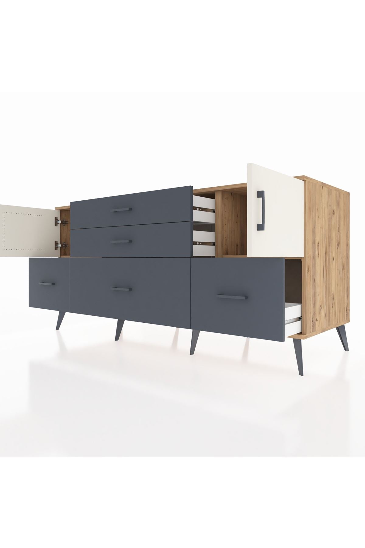 📌 Kronos Konsol 2 Raflı 5 Çekmeceli 2 Kapaklı 176x59x83