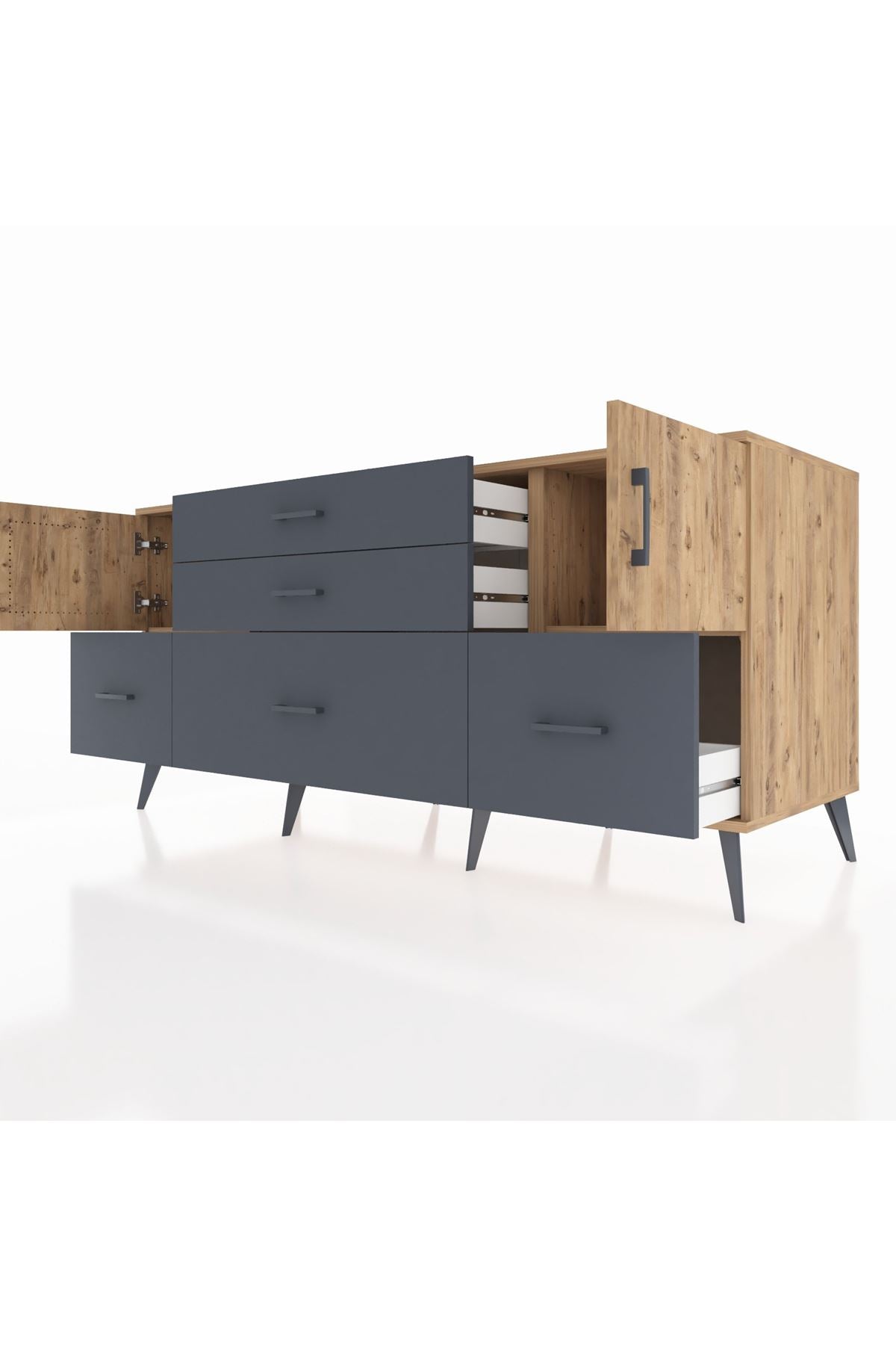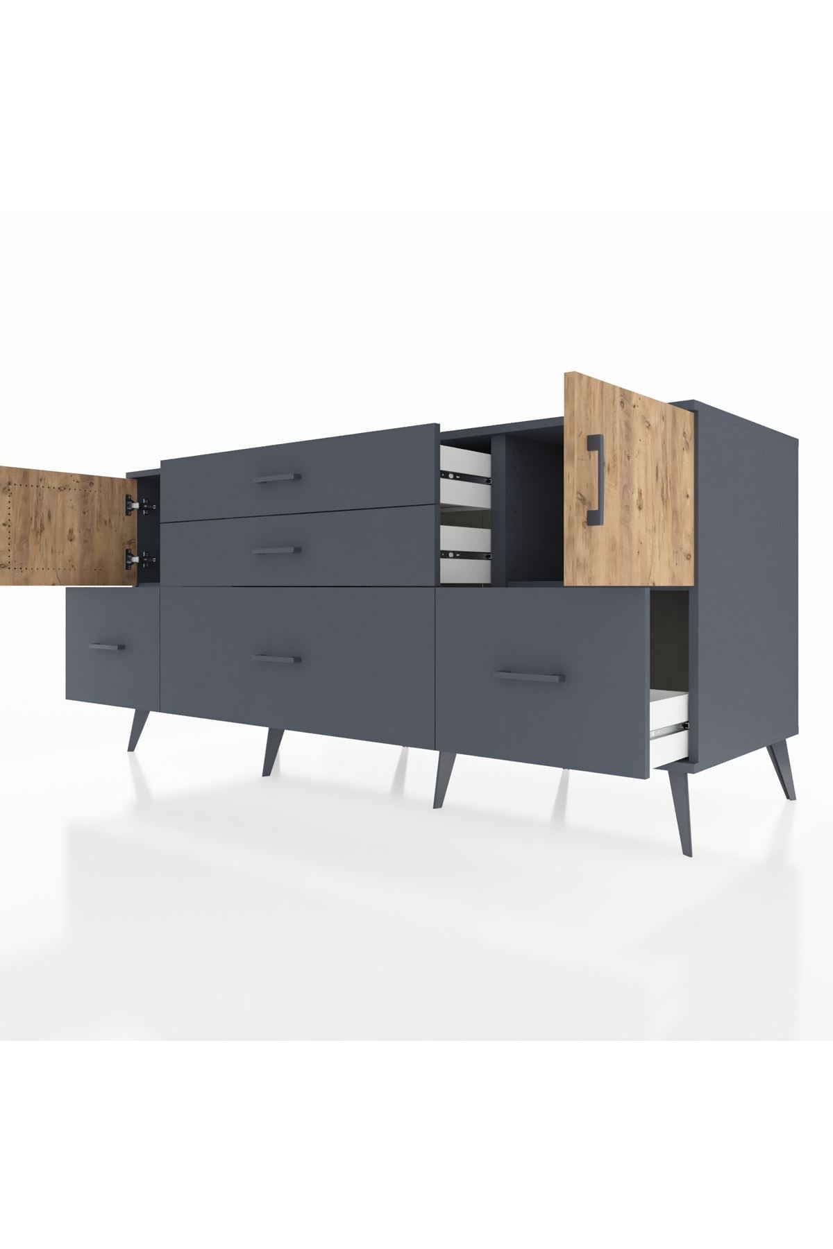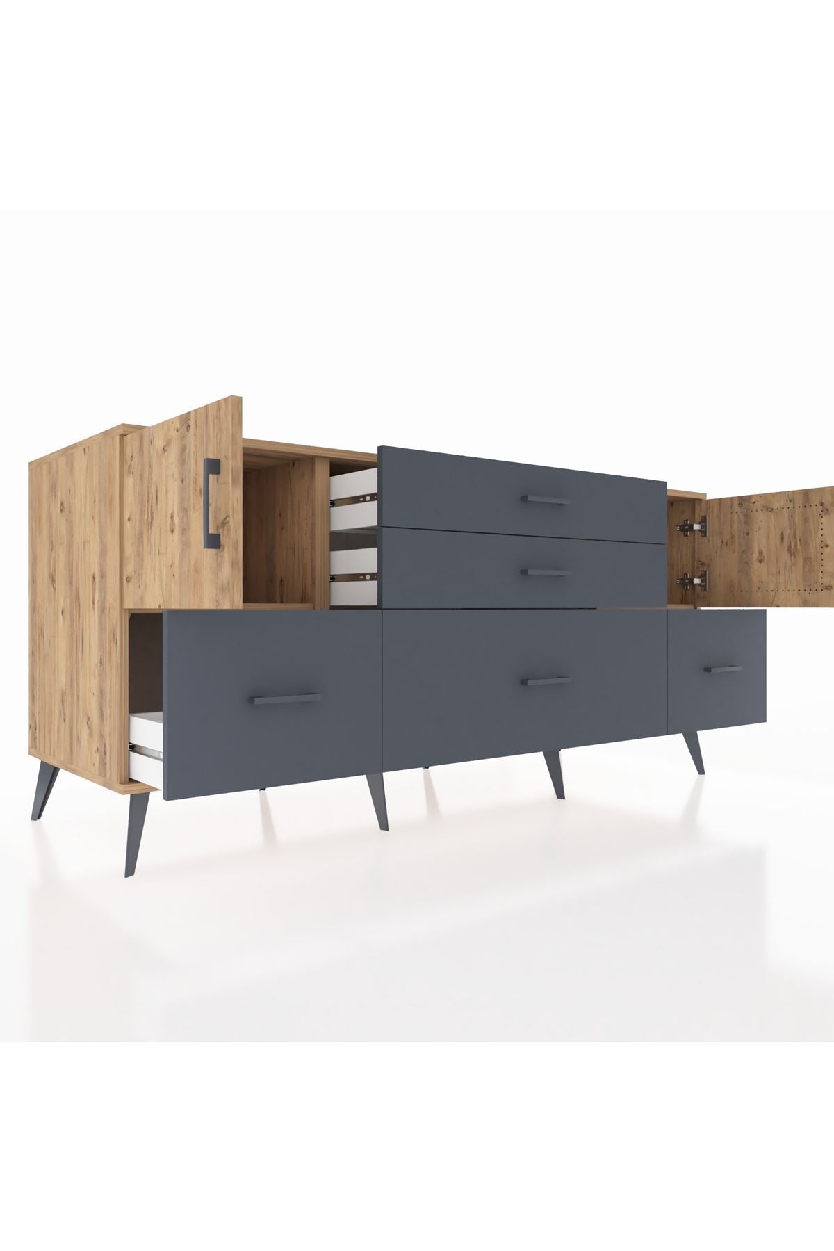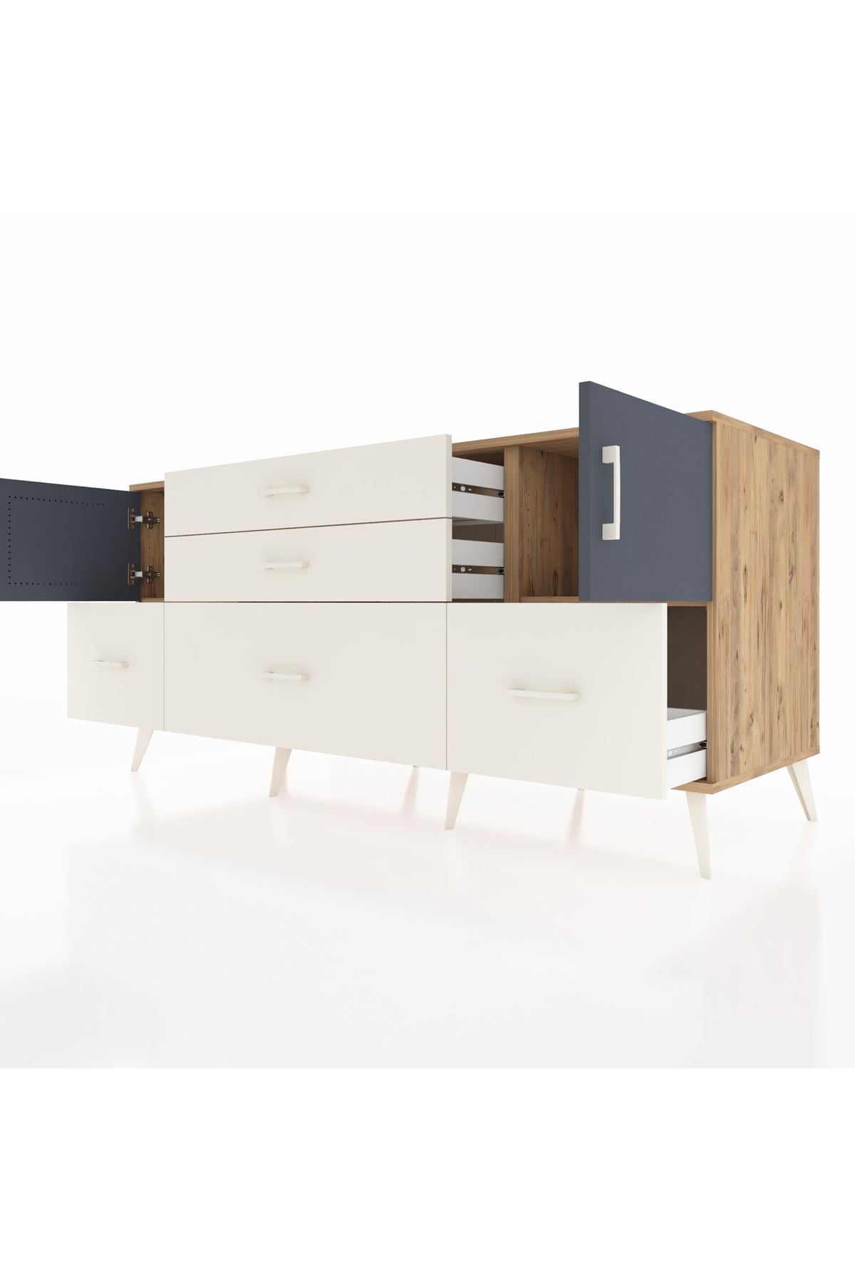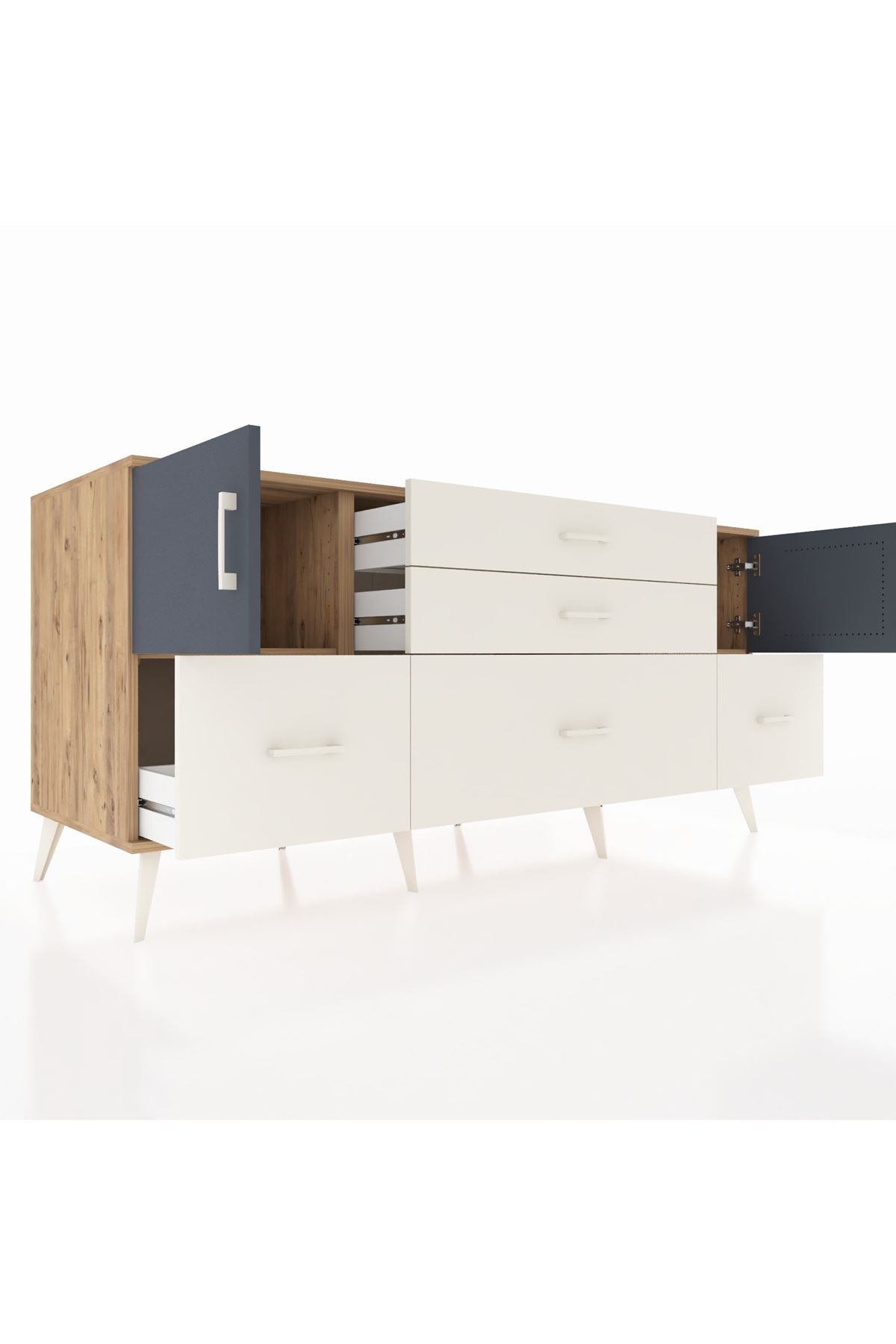 📌 Kronos Konsol 2 Raflı 5 Çekmeceli 2 Kapaklı 176x59x83