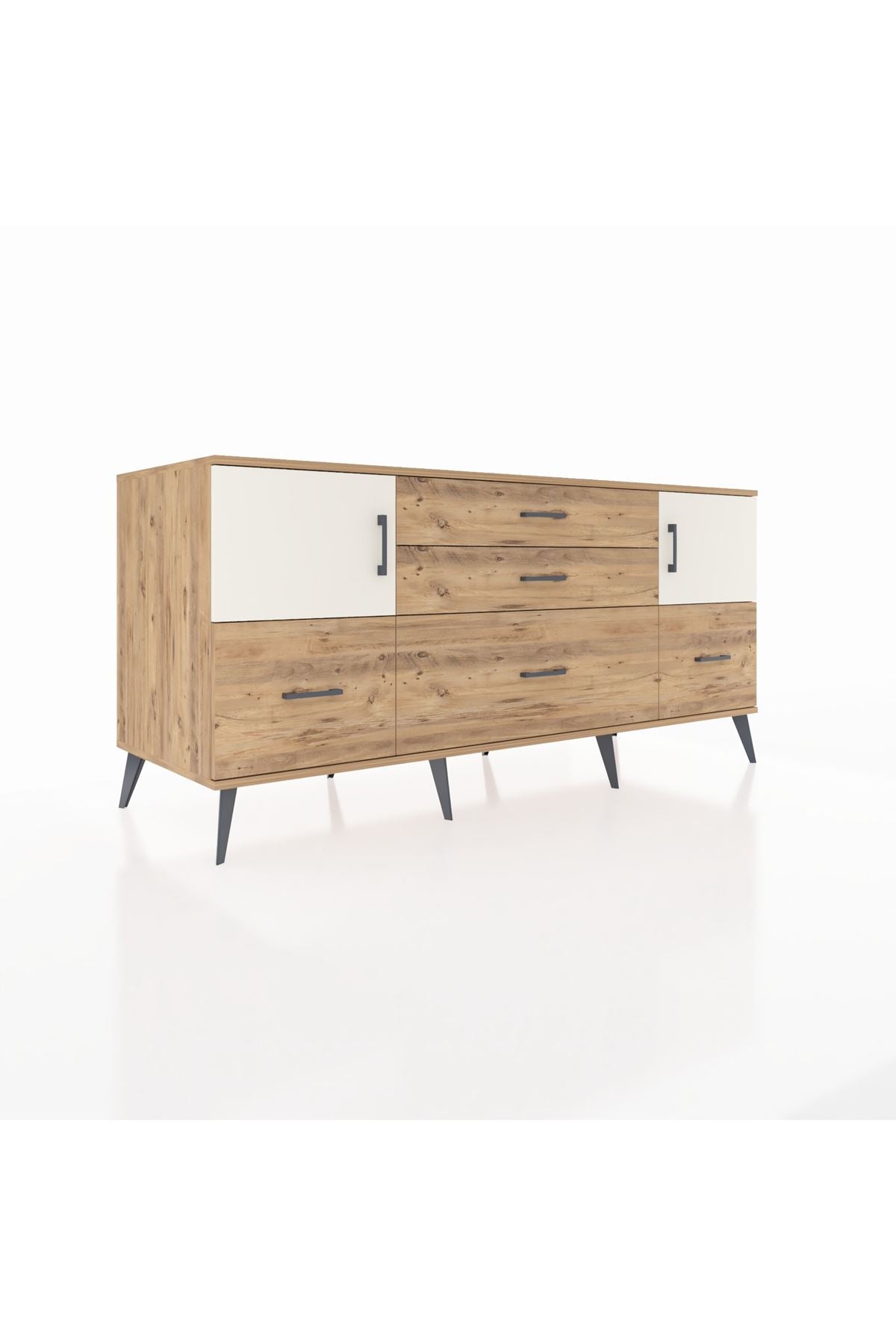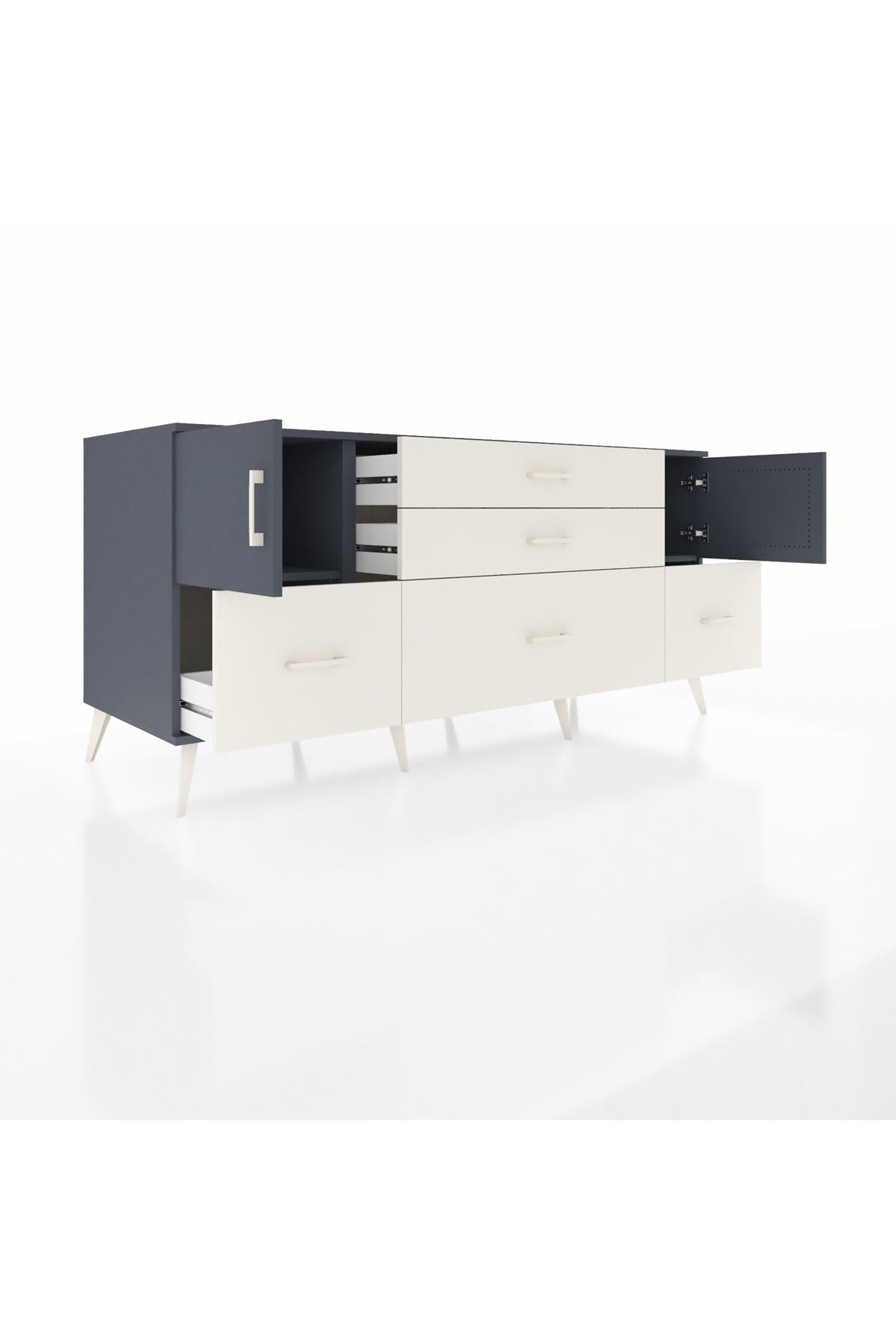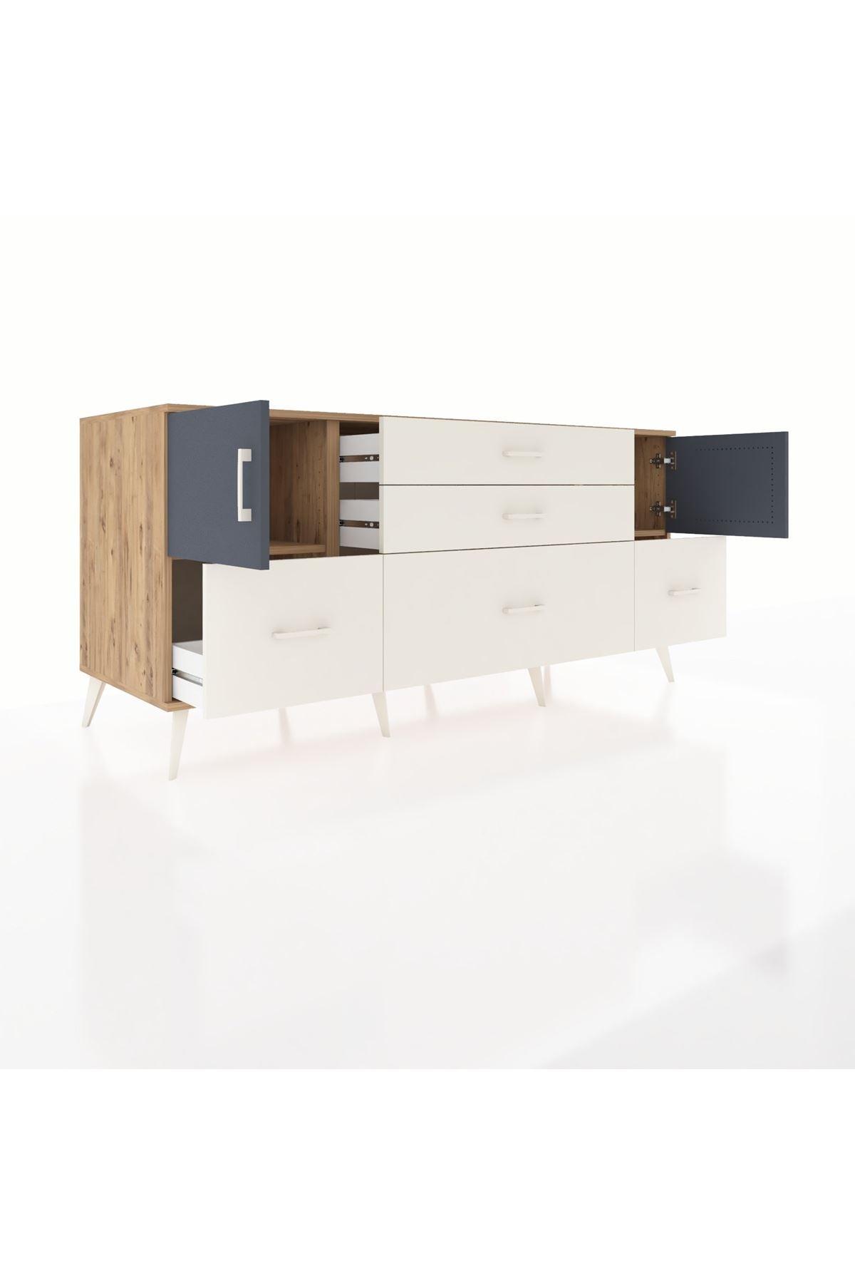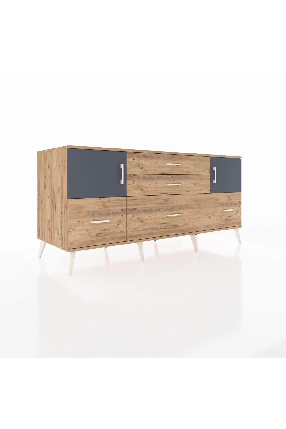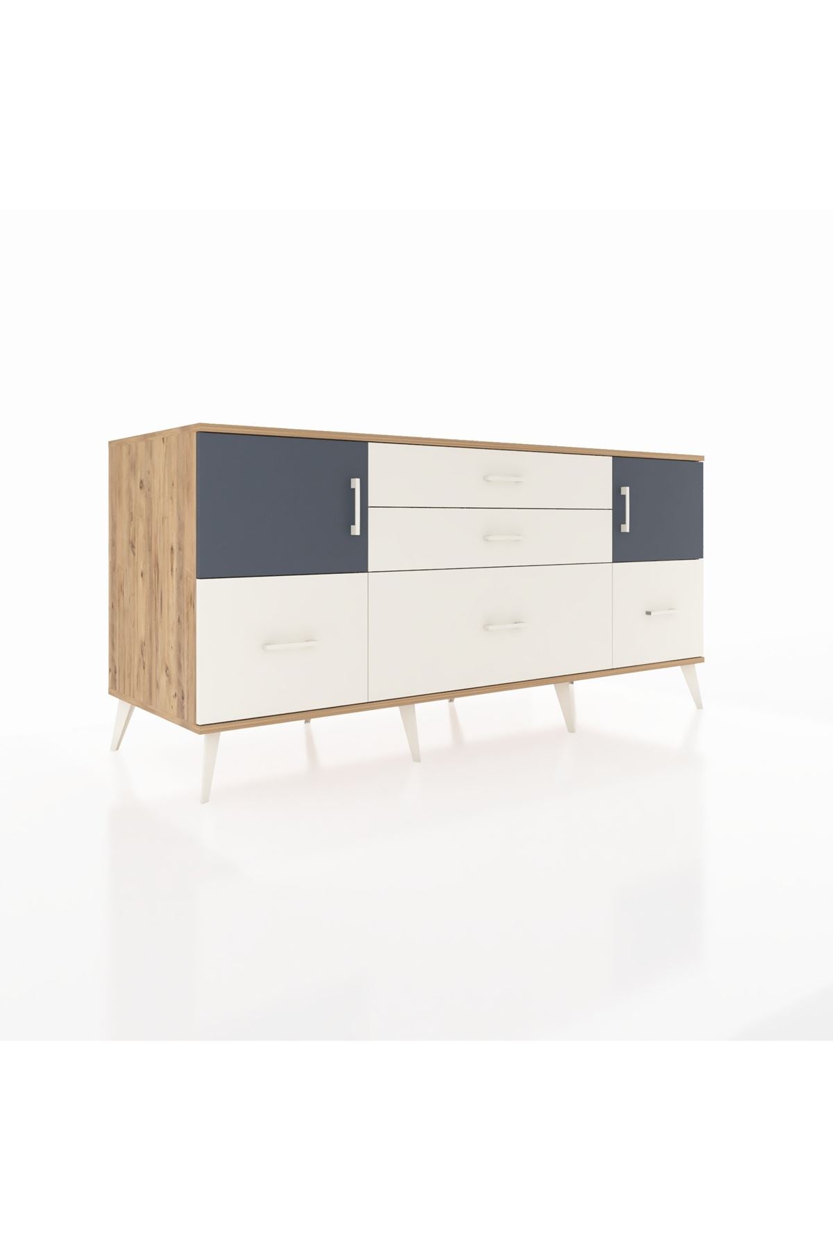 Kronos Konsol 2 Raflı 5 Çekmeceli 2 Kapaklı, yatak odası, oturma odası, çalışma odası, antre veya giyinme odası gibi birçok farklı alanda kullanılabilir. Şık tasarımı ve fonksiyonel yapısıyla evinize kolayca uyum sağlar.