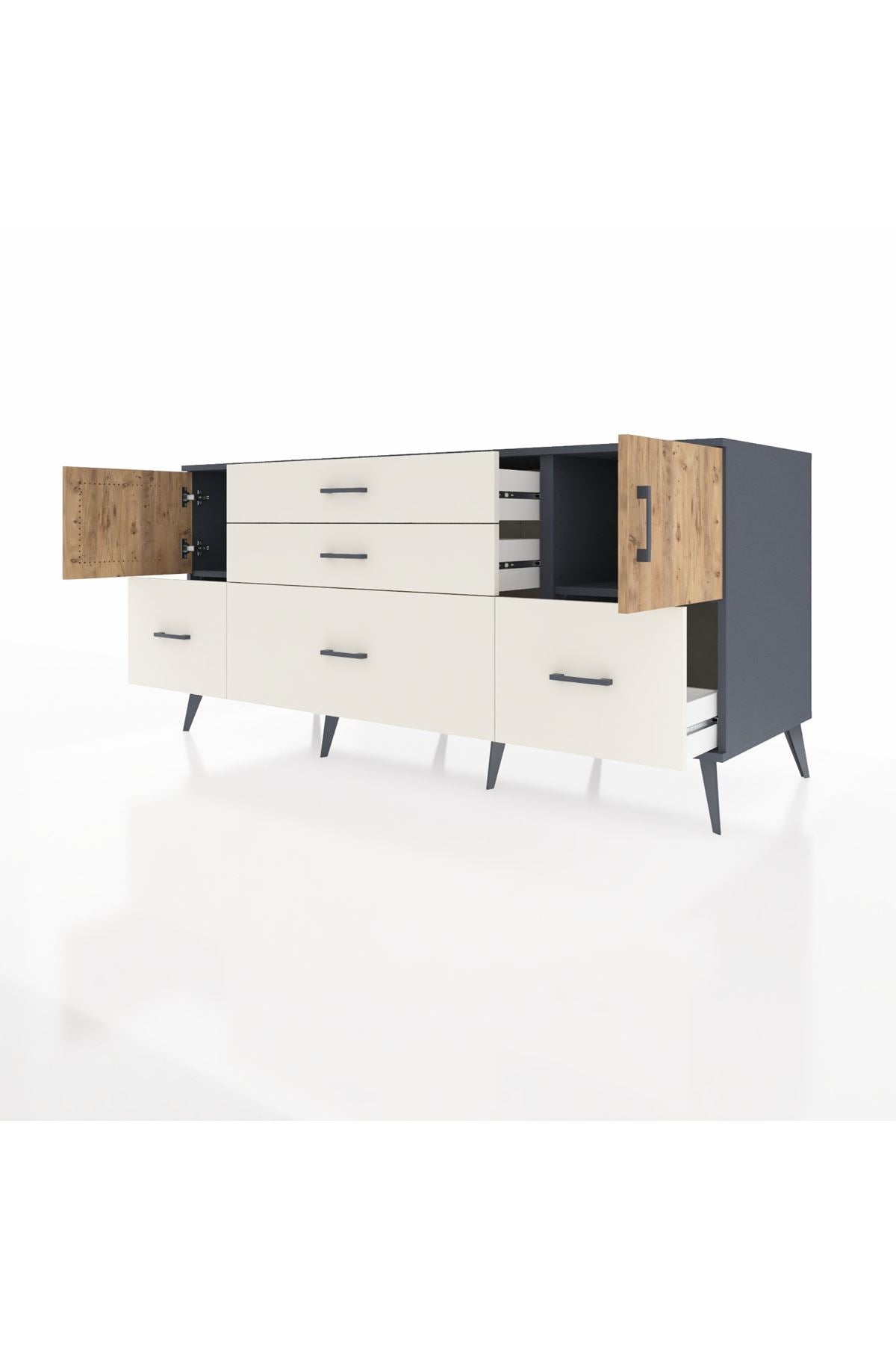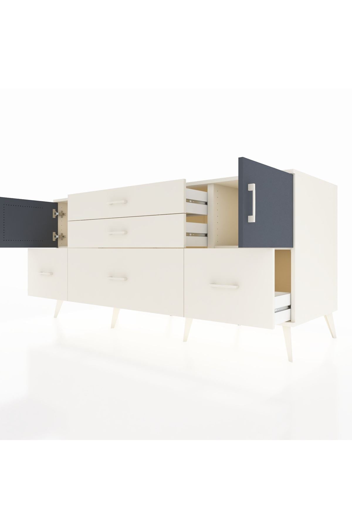 Kronos Konsol 2 Raflı 5 Çekmeceli 2 Kapaklı 176x59x83