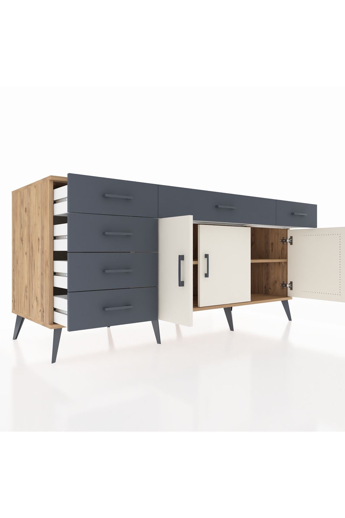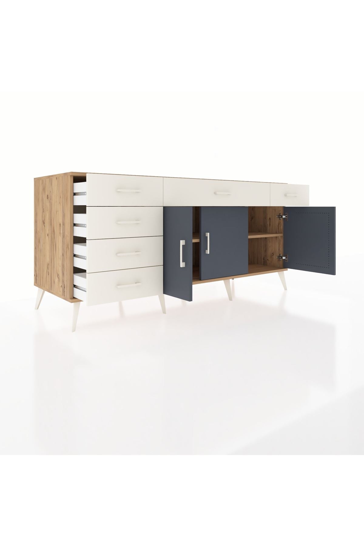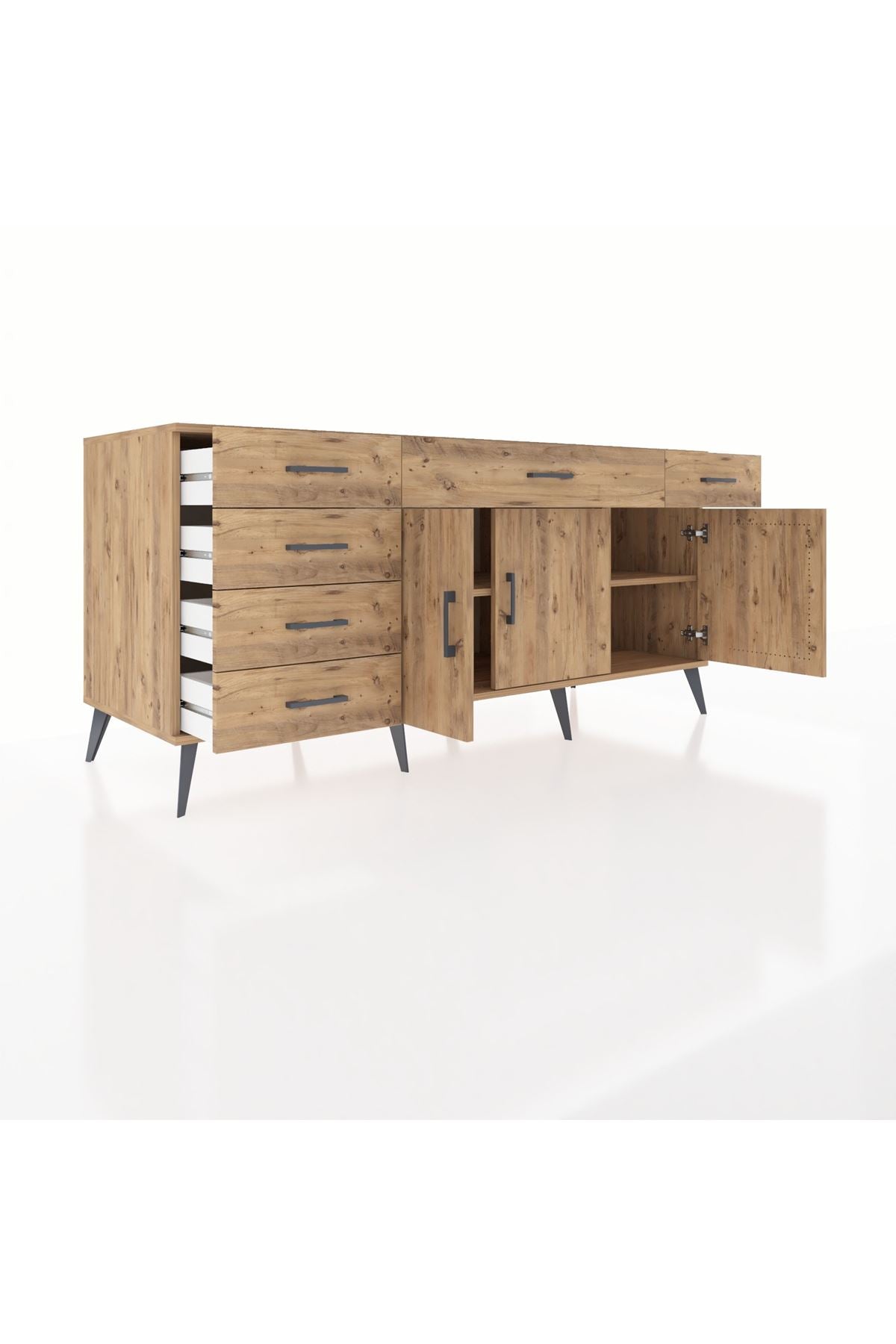 Kronos Konsol 2 Raflı 6 Çekmeceli 3 Kapaklı 176x59x83