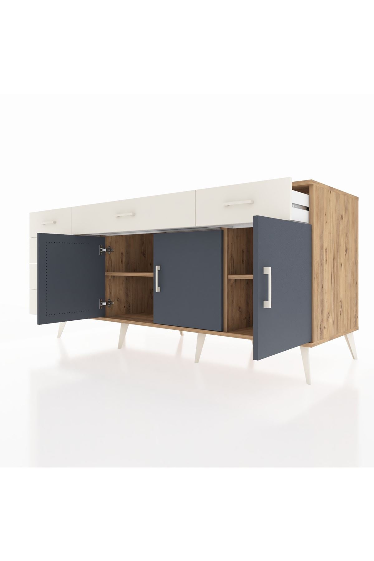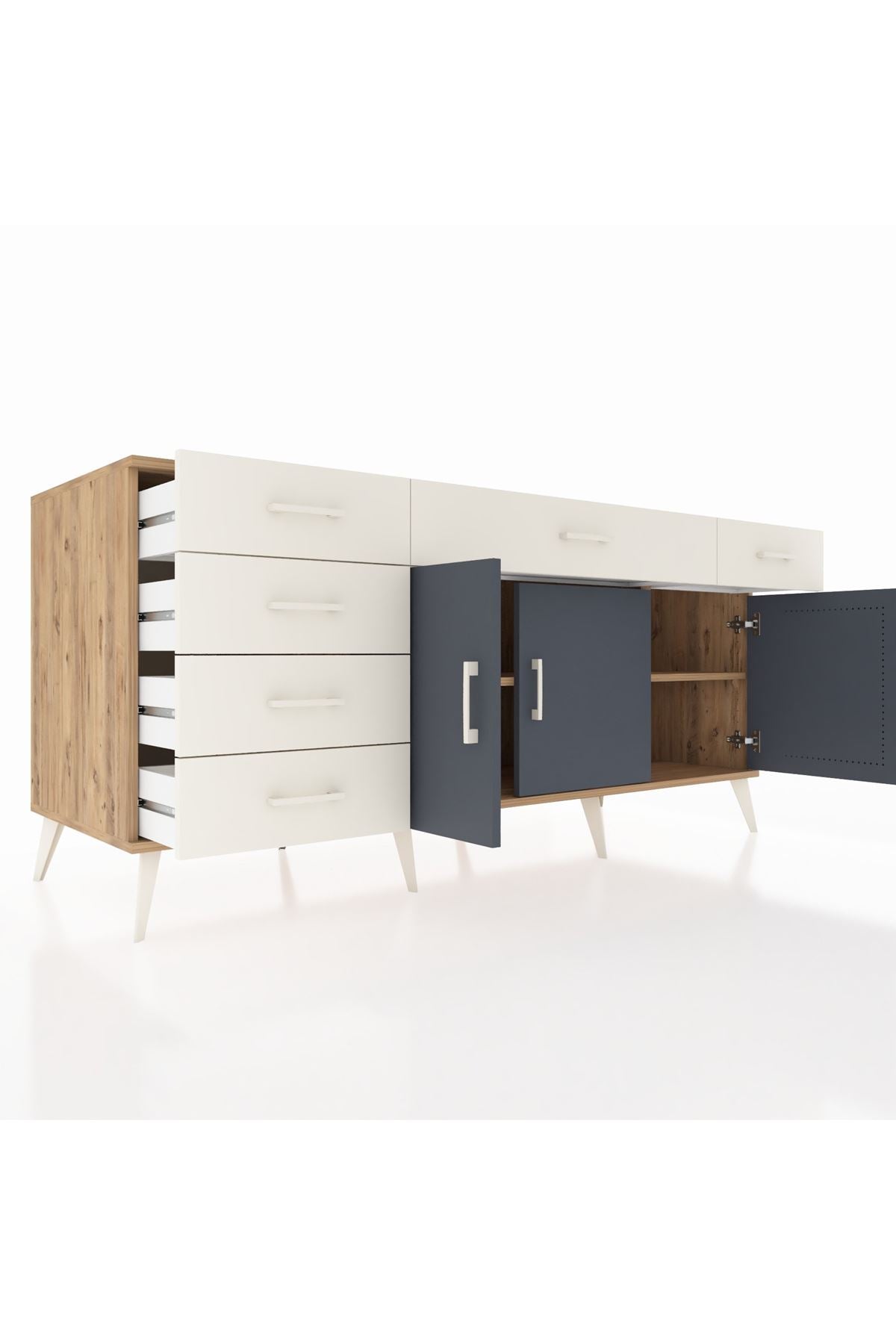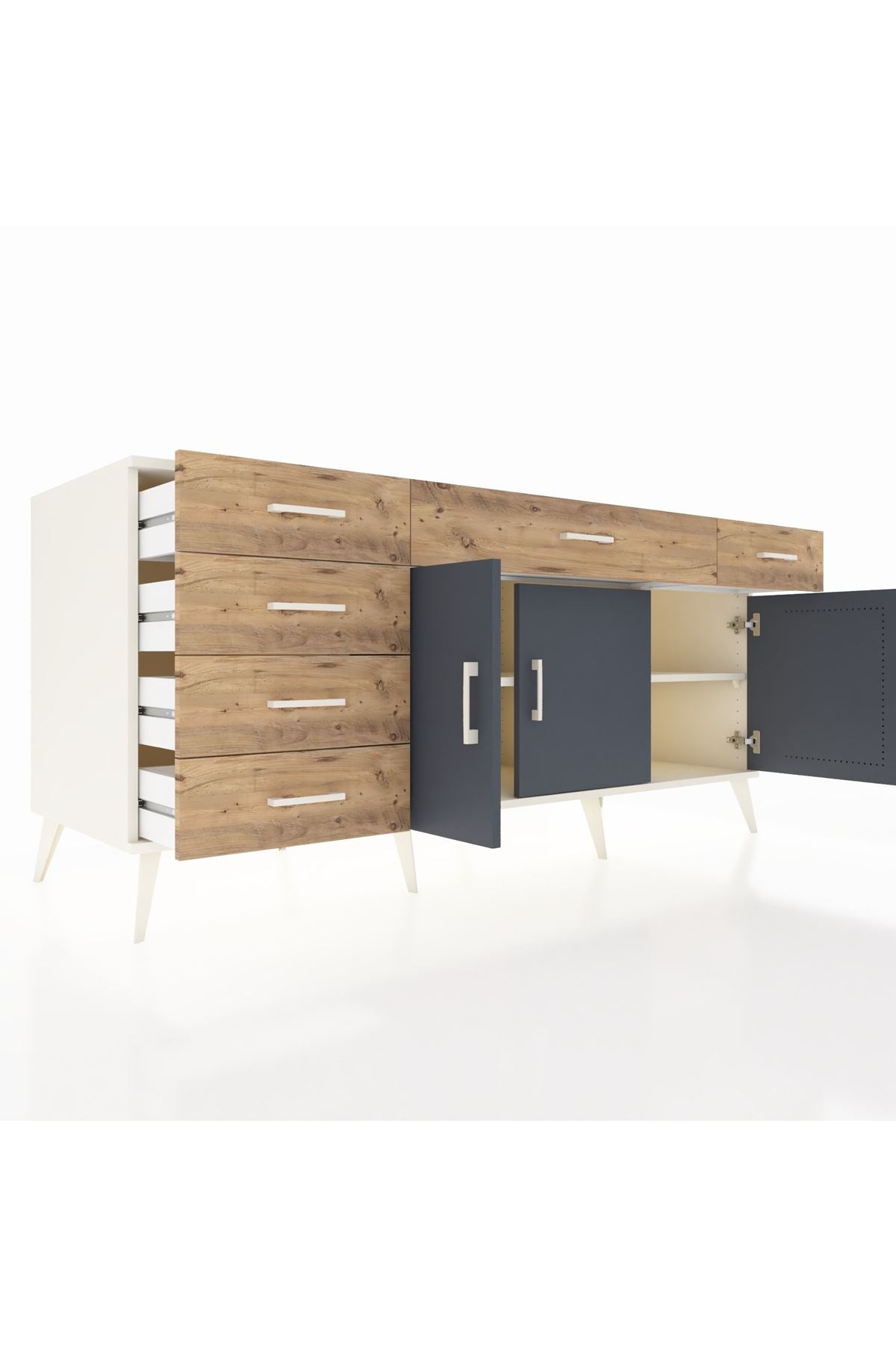 Kronos Konsol 2 Raflı 6 Çekmeceli 3 Kapaklı 176x59x83