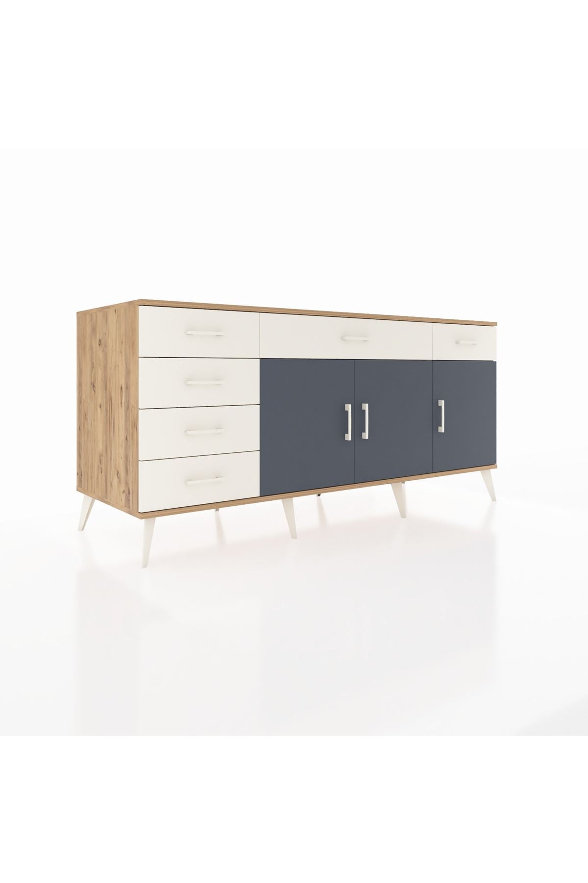 Yatak odanızda şifonyer veya komodin olarak kullanarak, kıyafetlerinizi, aksesuarlarınızı ve diğer kişisel eşyalarınızı düzenli bir şekilde saklayabilirsiniz. Şık tasarımıyla yatak odanızın atmosferini zenginleştirir.