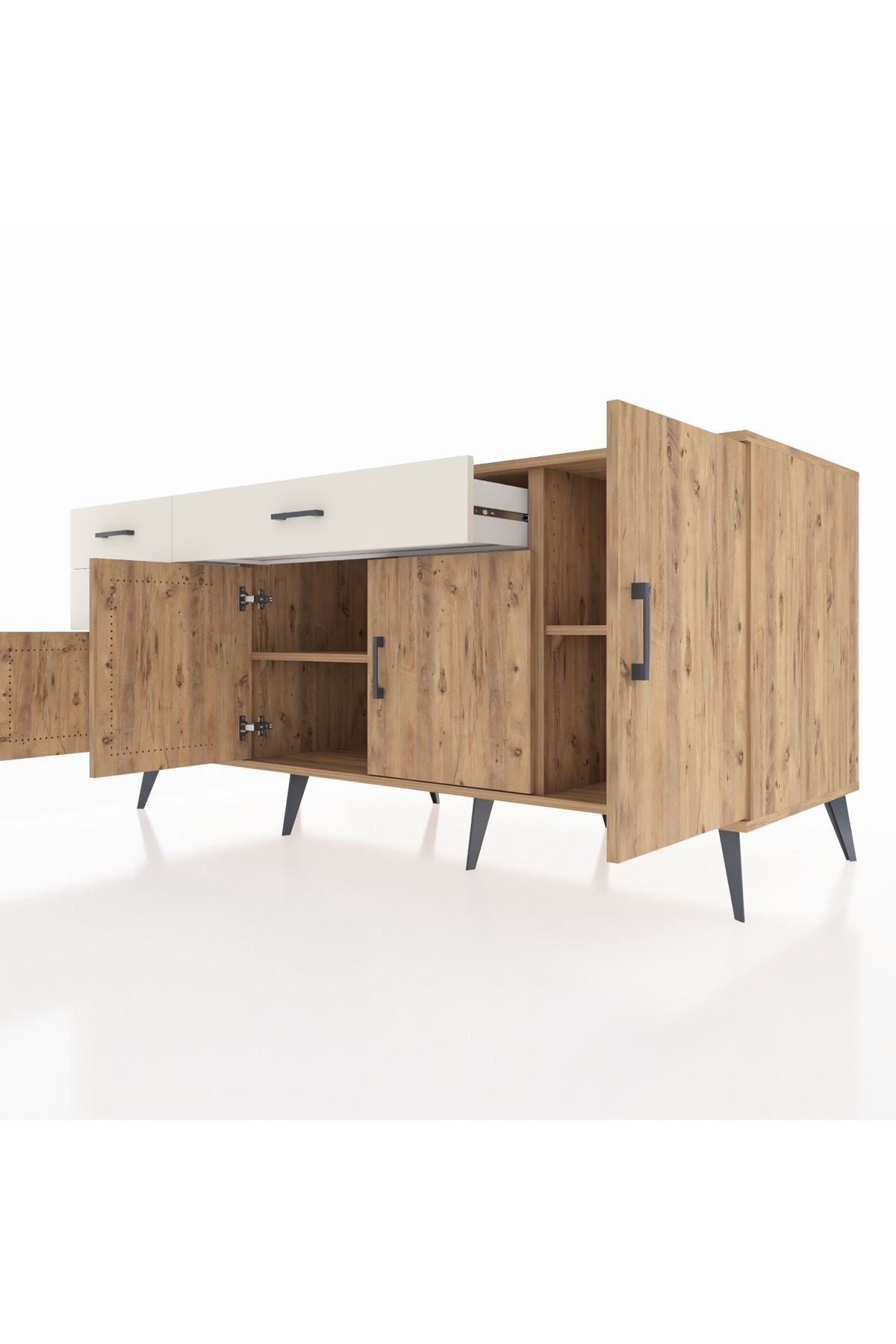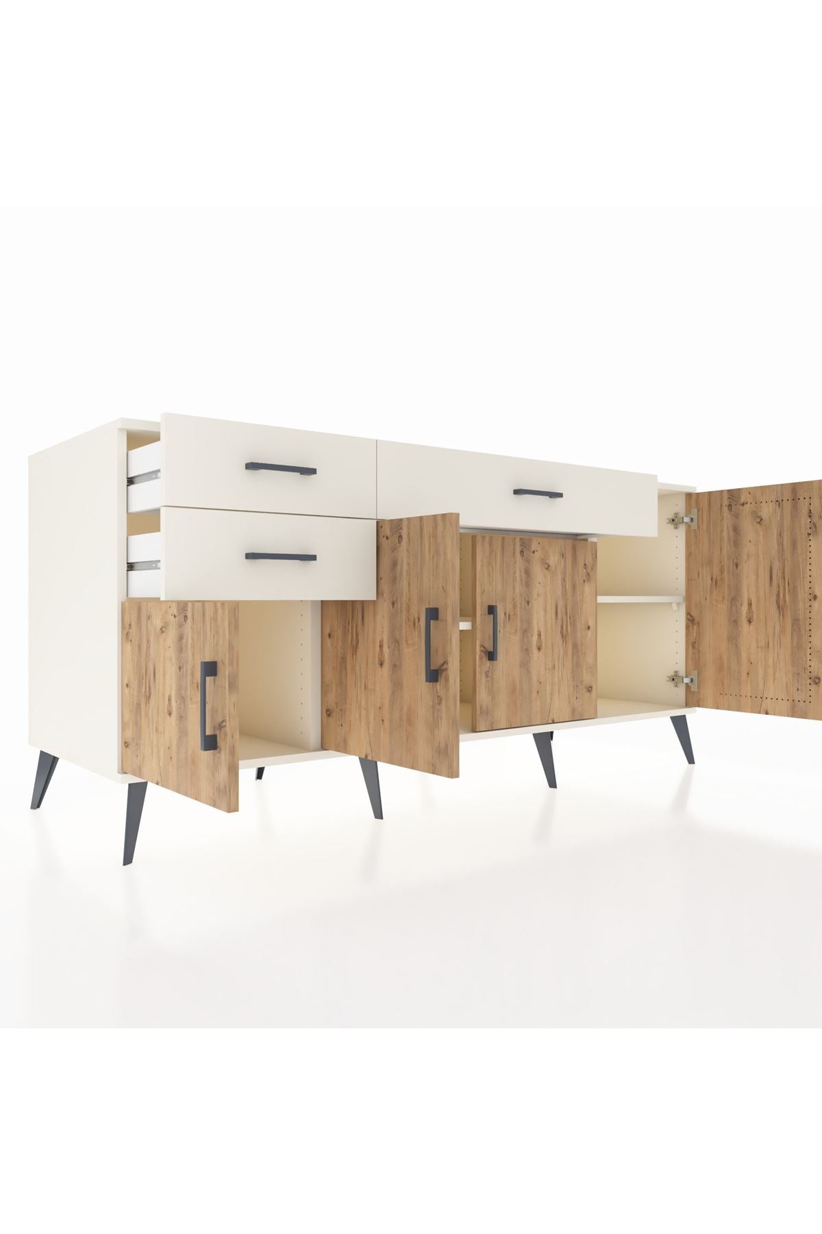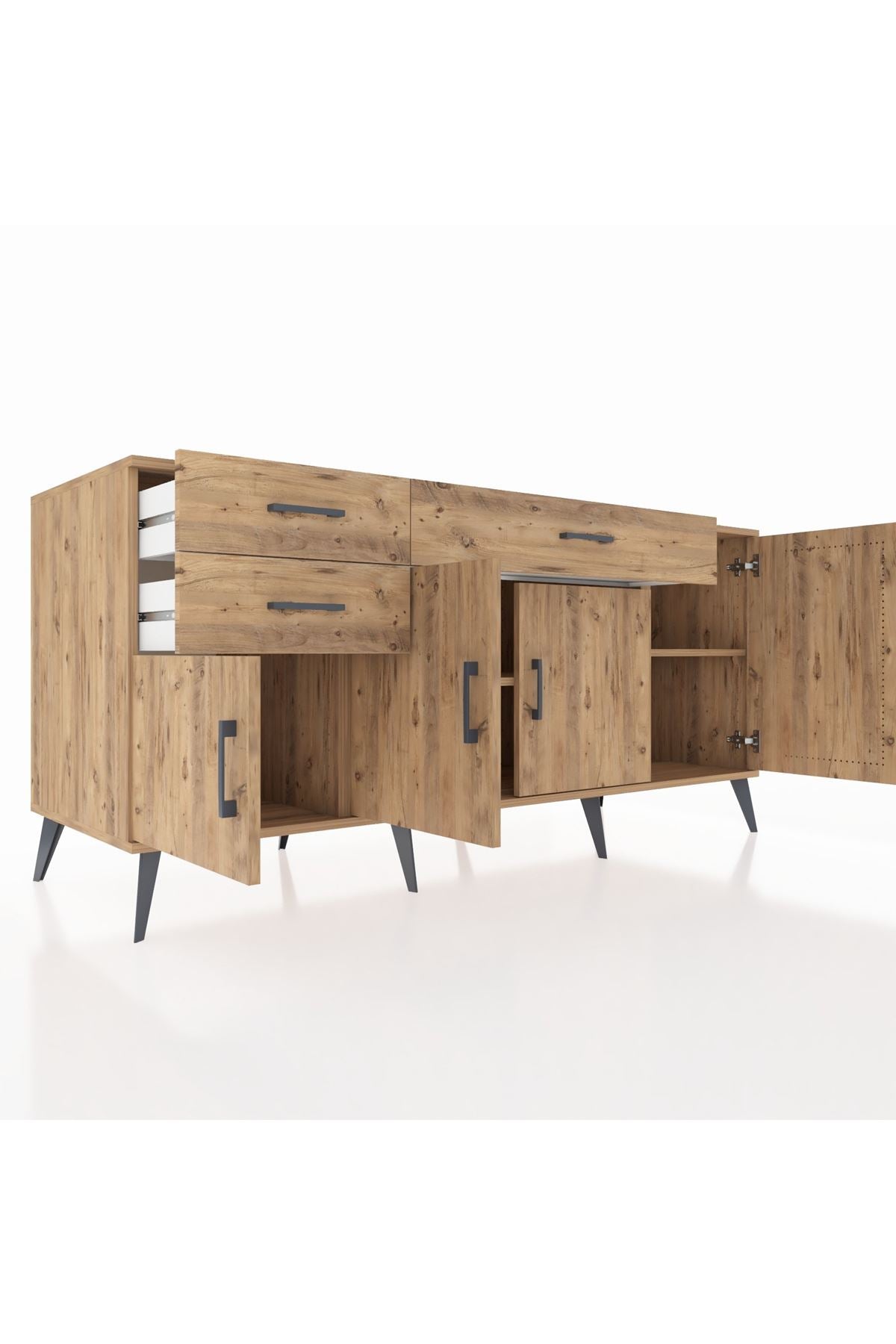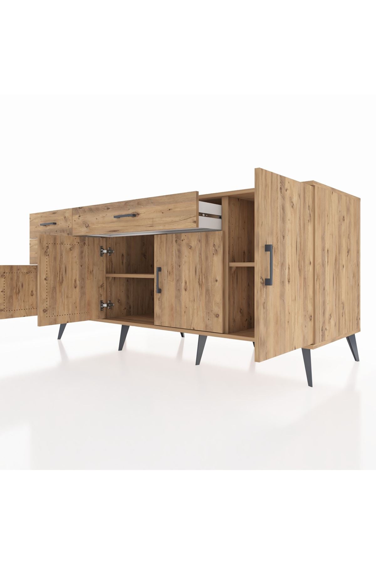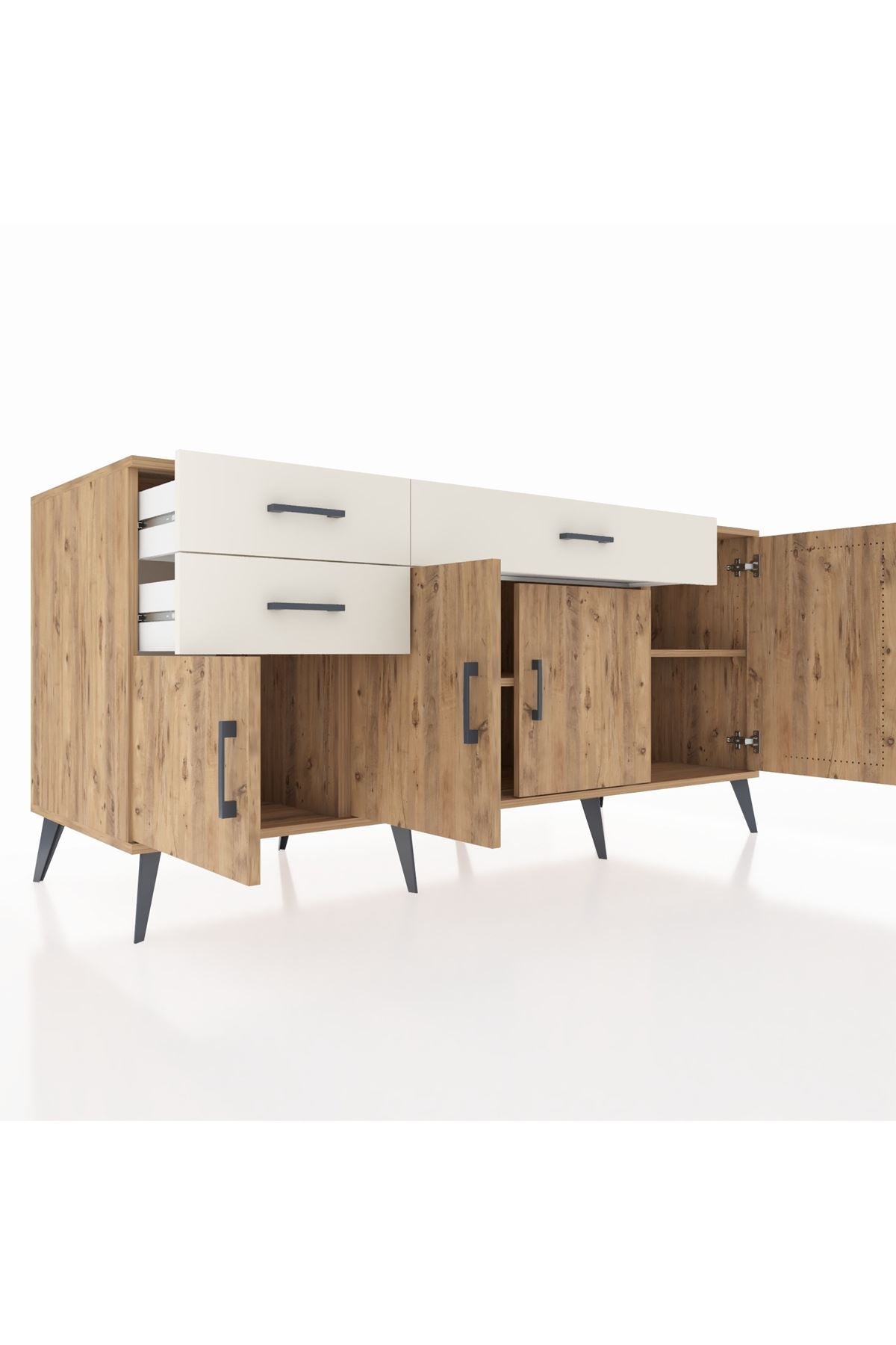 🦾 Konsolumuzun ayakları ve kulpları metal malzemeden üretilmiştir. Metal detaylar, konsola modern ve şık bir görünüm kazandırırken, sağlam yapısıyla da güvenli bir kullanım sunar.