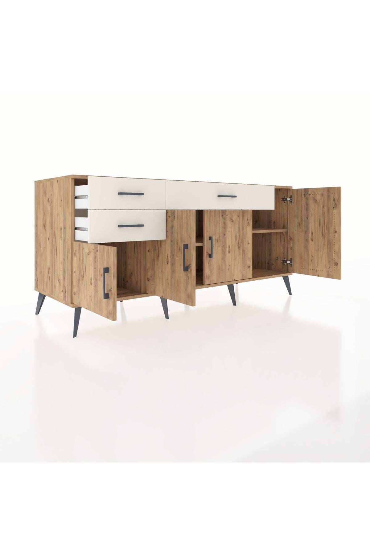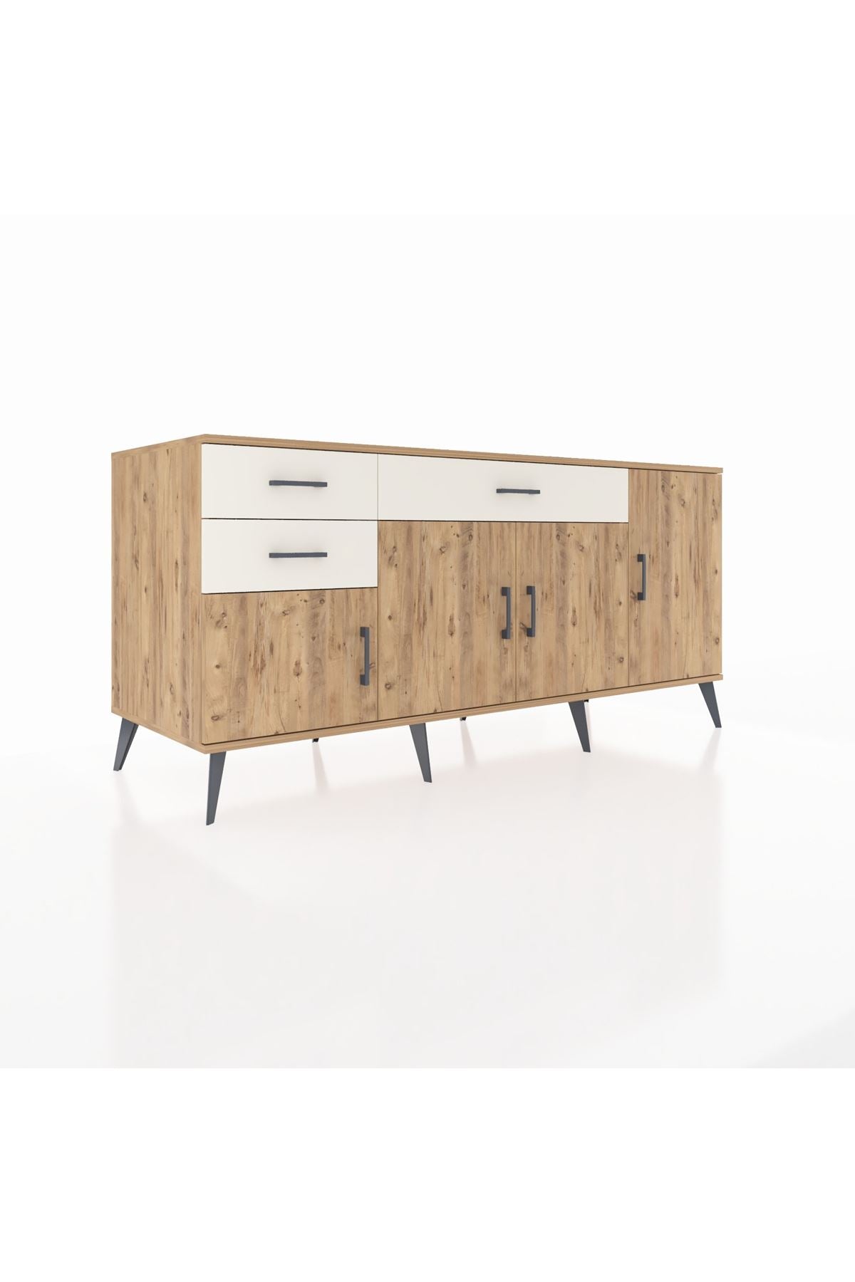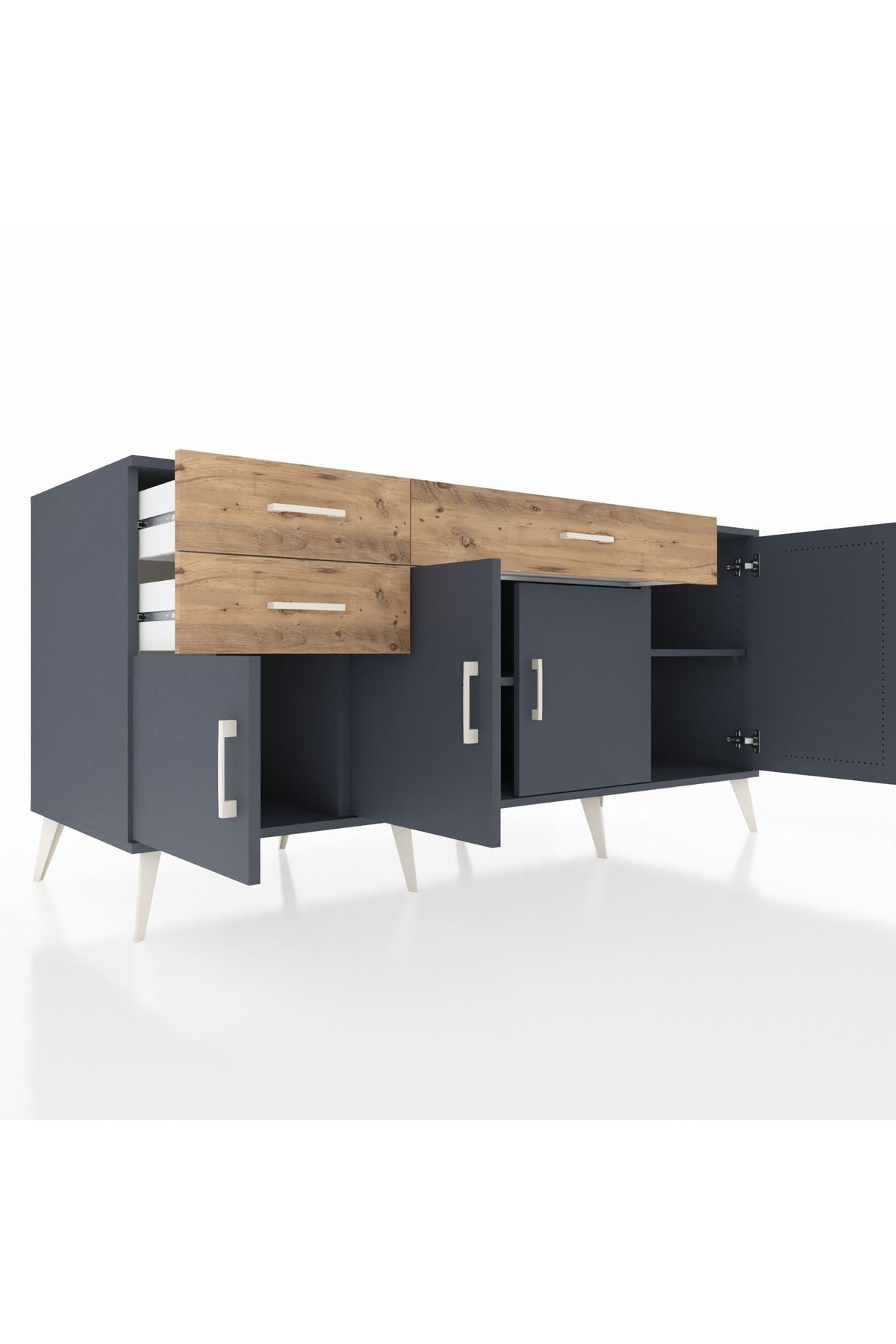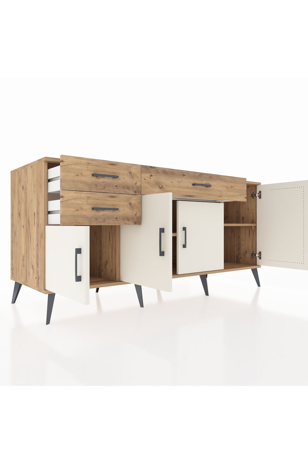 🦾 Konsolumuzun ayakları ve kulpları metal malzemeden üretilmiştir. Metal detaylar, konsola modern ve şık bir görünüm kazandırırken, sağlam yapısıyla da güvenli bir kullanım sunar.