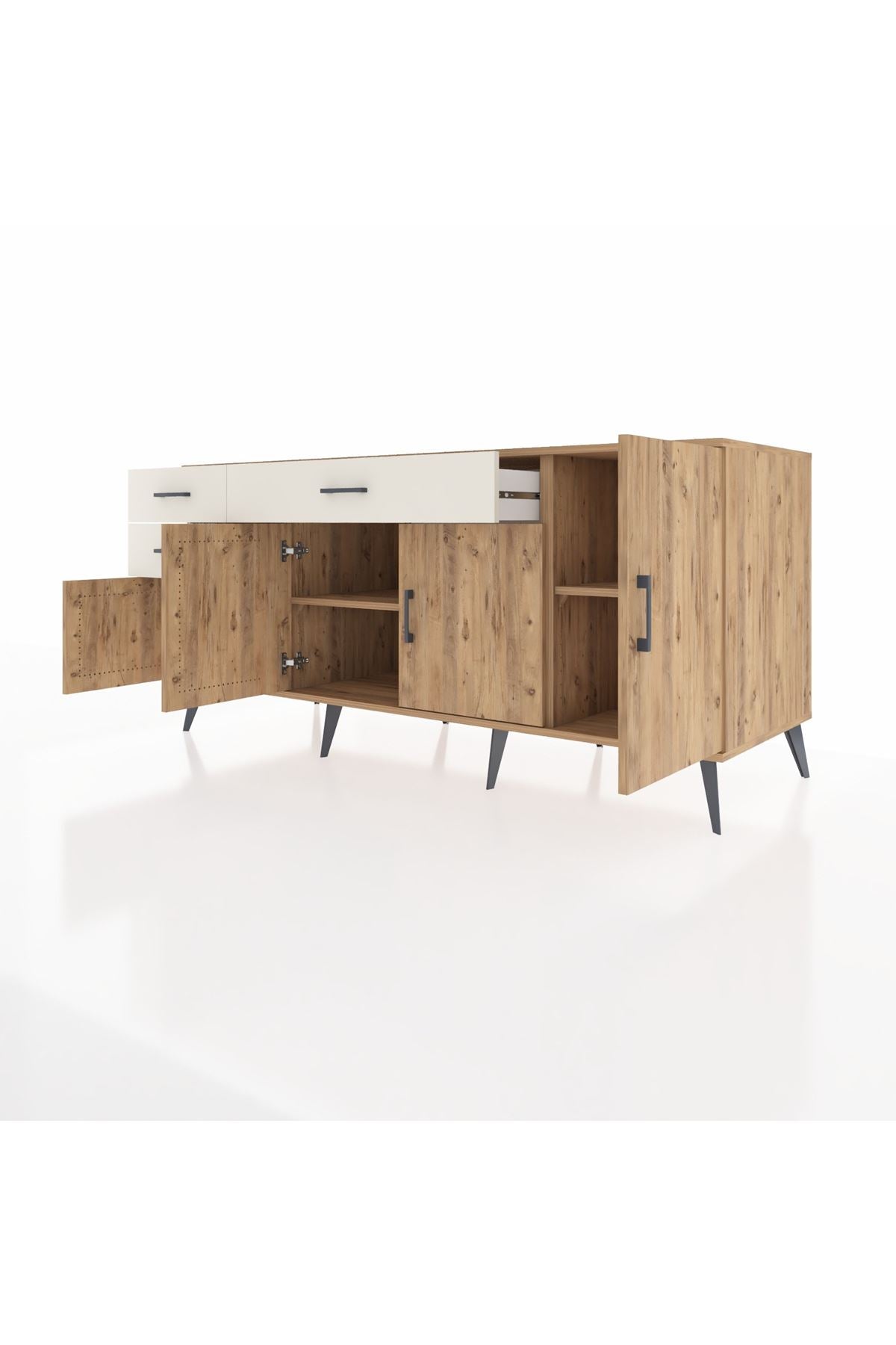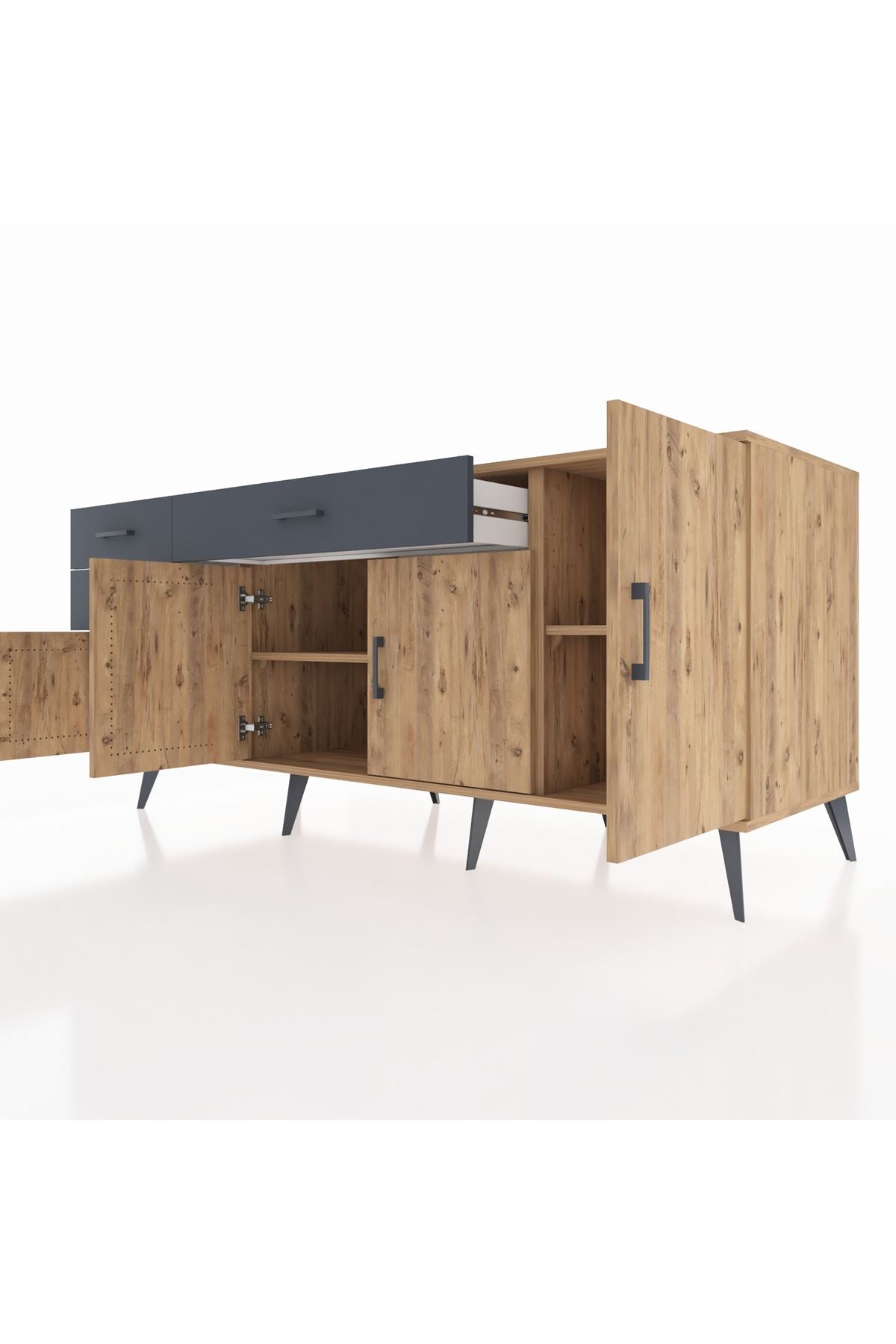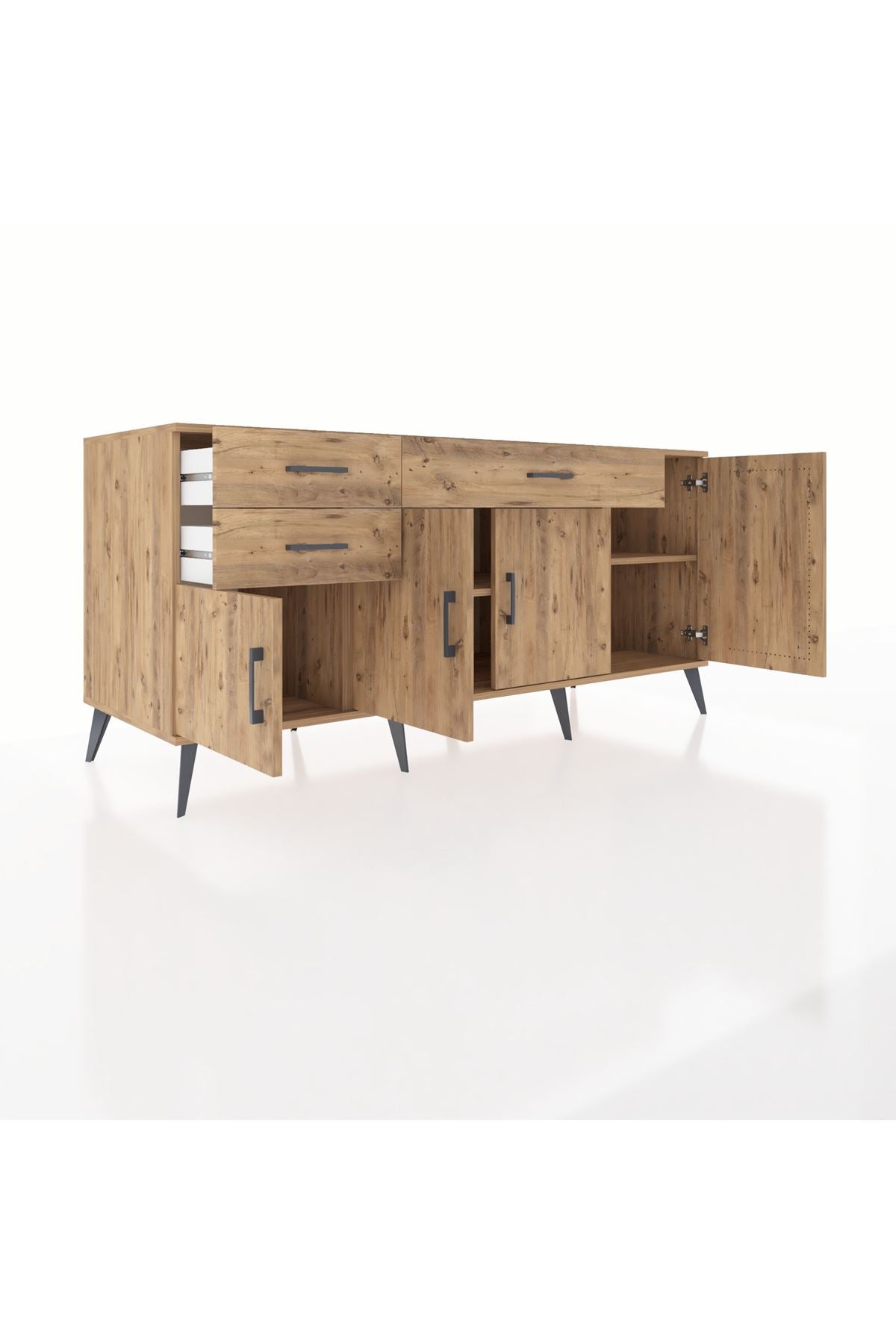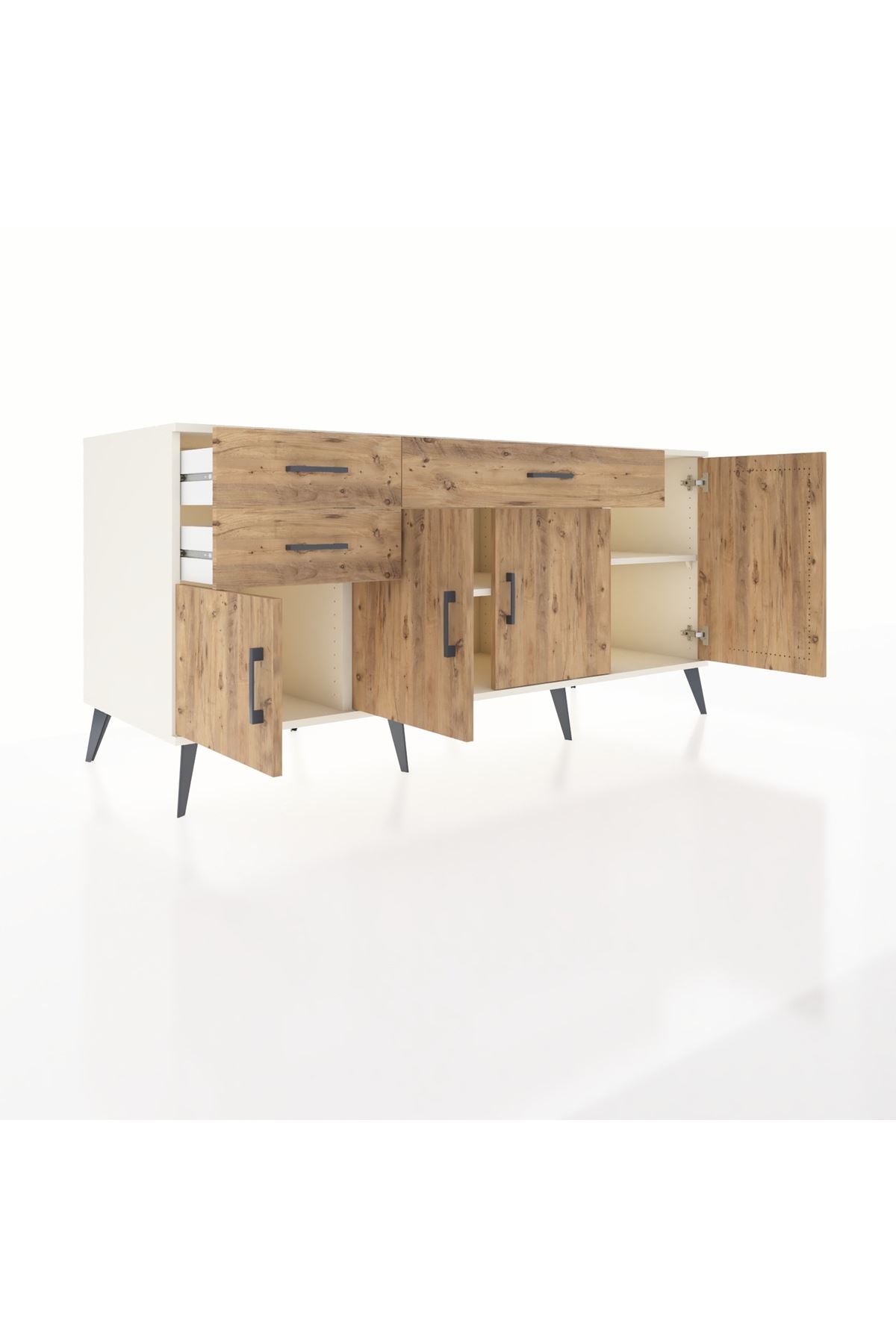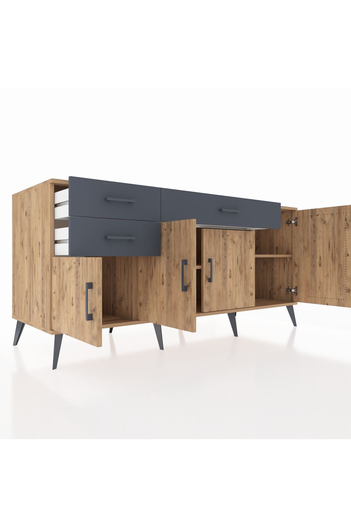 🦾 Konsolumuzun ayakları ve kulpları metal malzemeden üretilmiştir. Metal detaylar, konsola modern ve şık bir görünüm kazandırırken, sağlam yapısıyla da güvenli bir kullanım sunar.