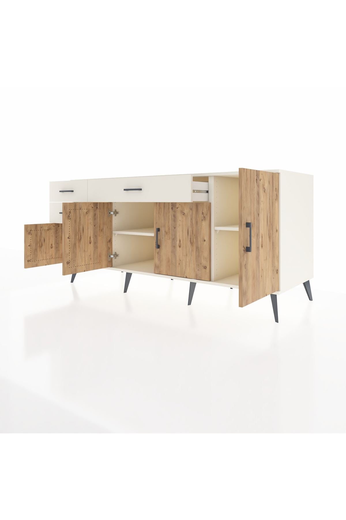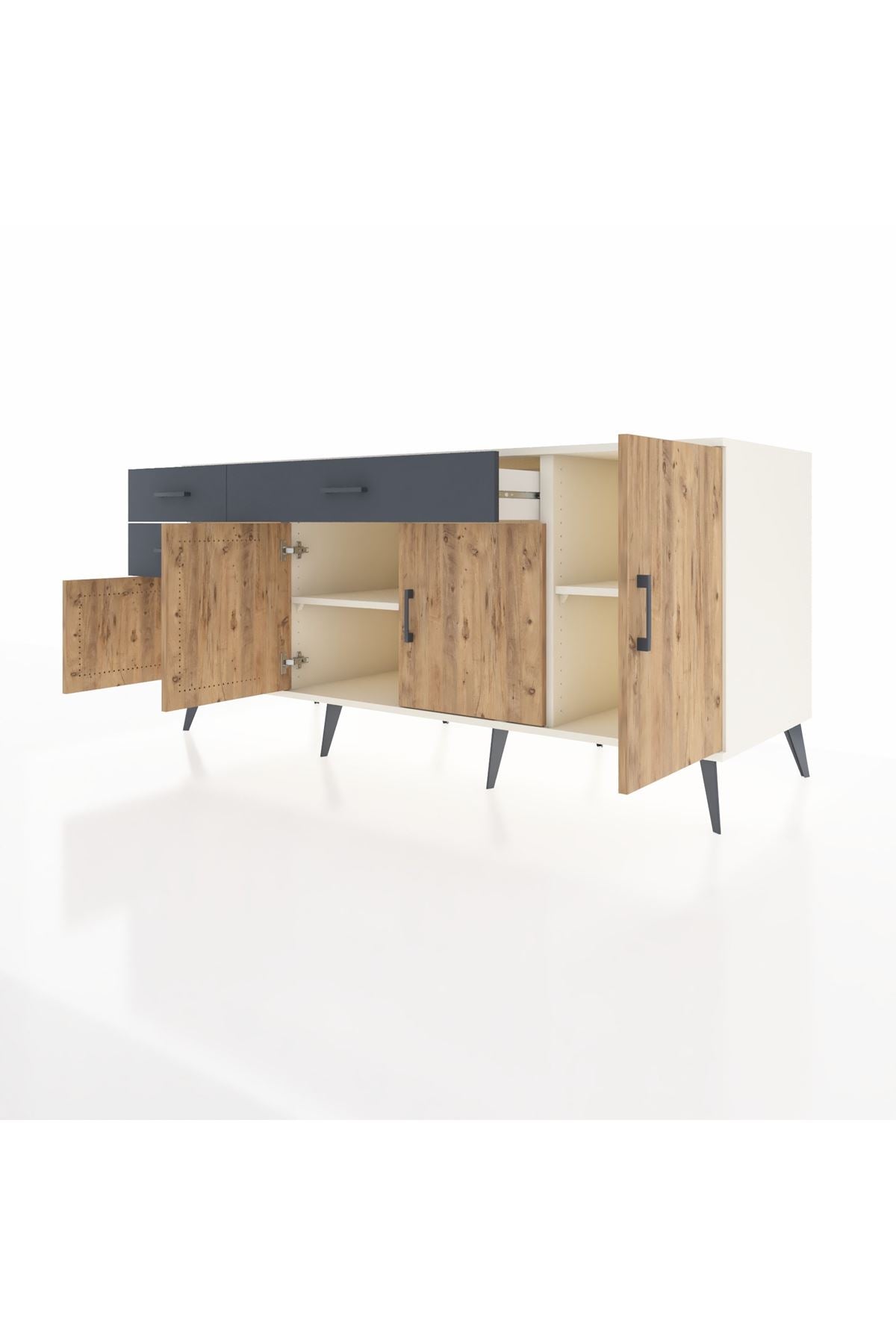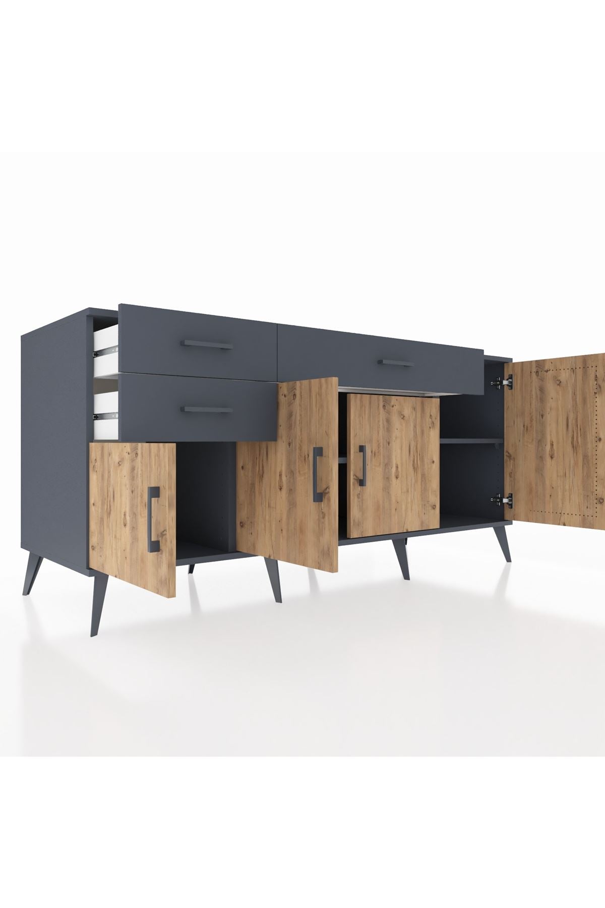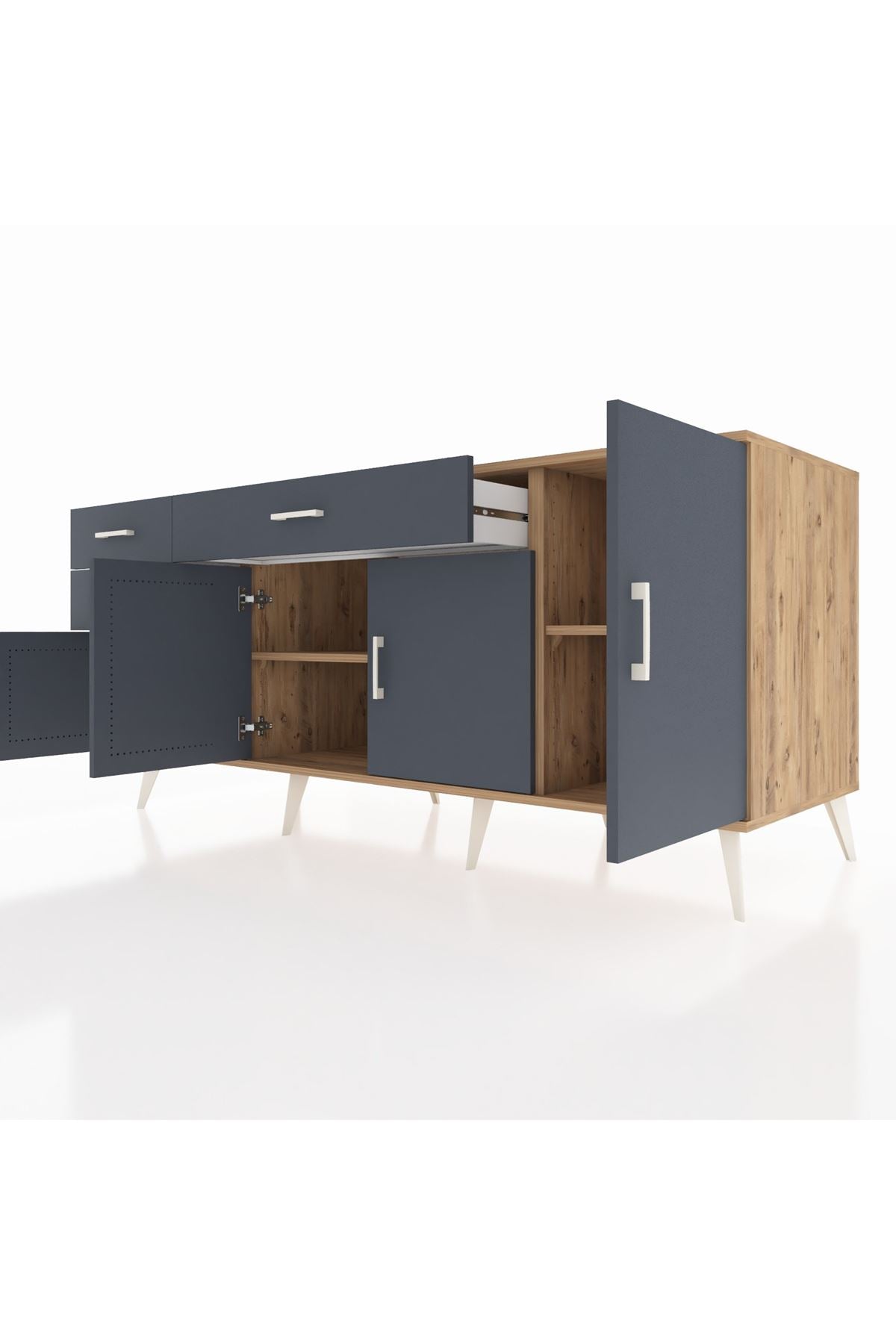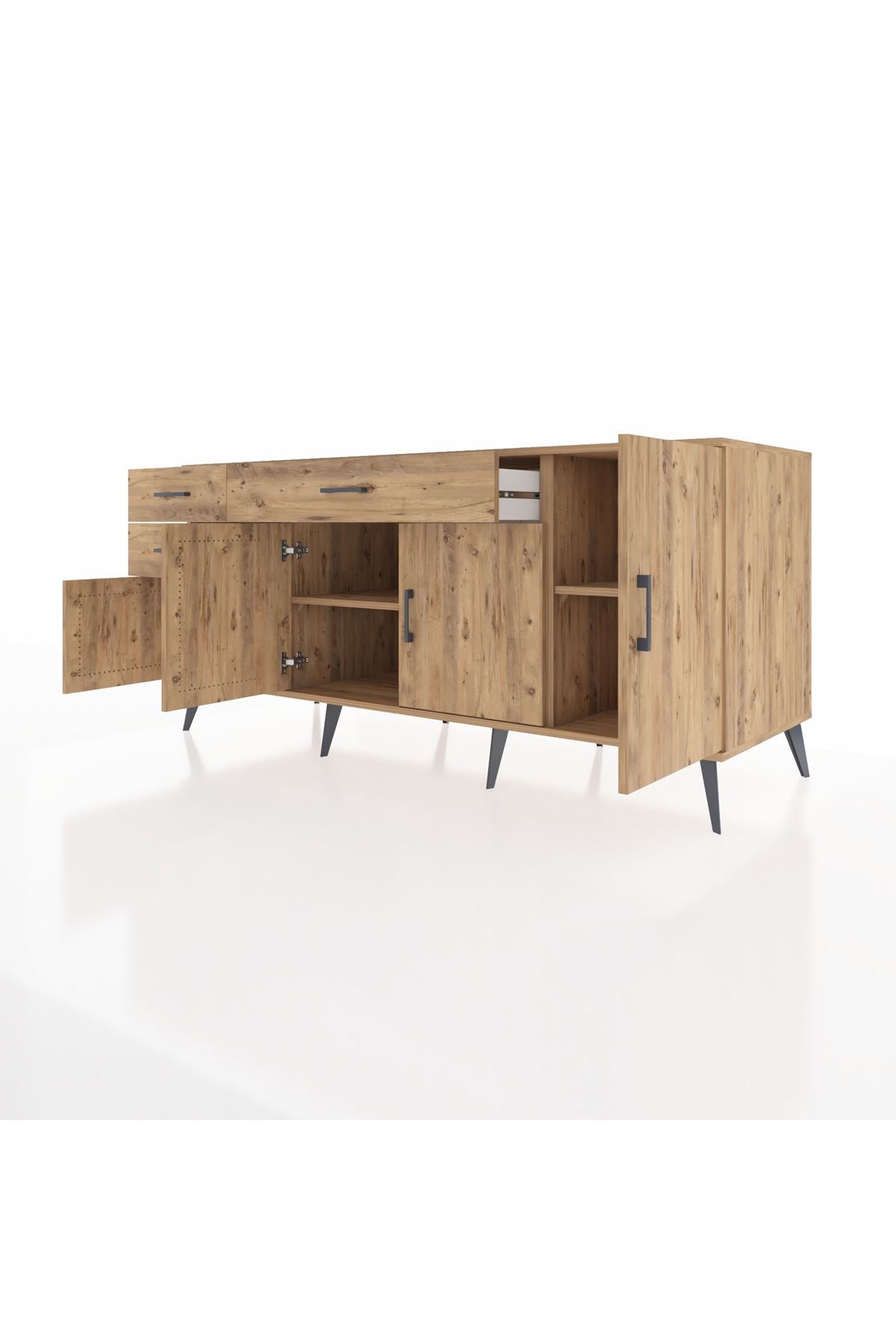 🦾 Konsolumuzun ayakları ve kulpları metal malzemeden üretilmiştir. Metal detaylar, konsola modern ve şık bir görünüm kazandırırken, sağlam yapısıyla da güvenli bir kullanım sunar.