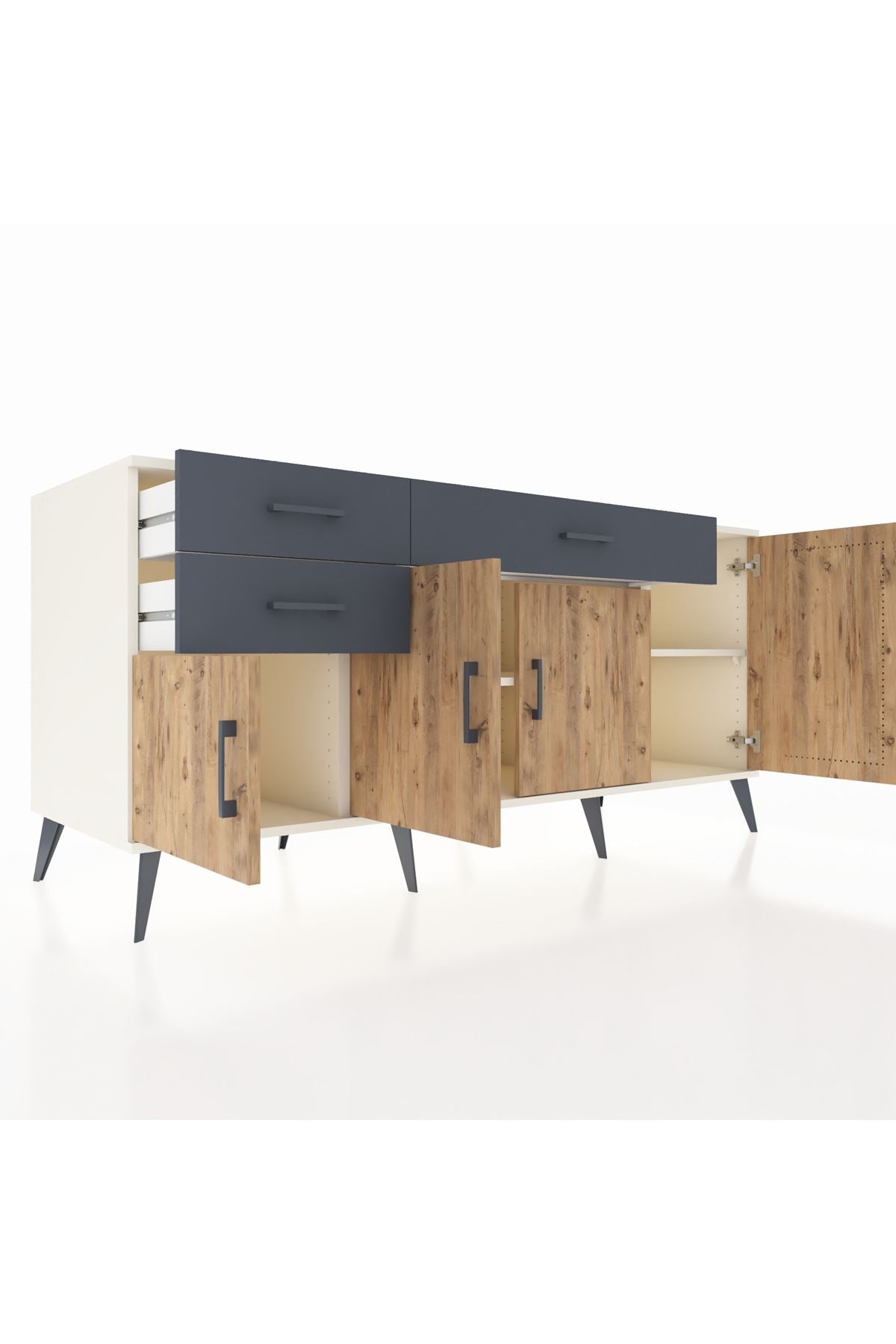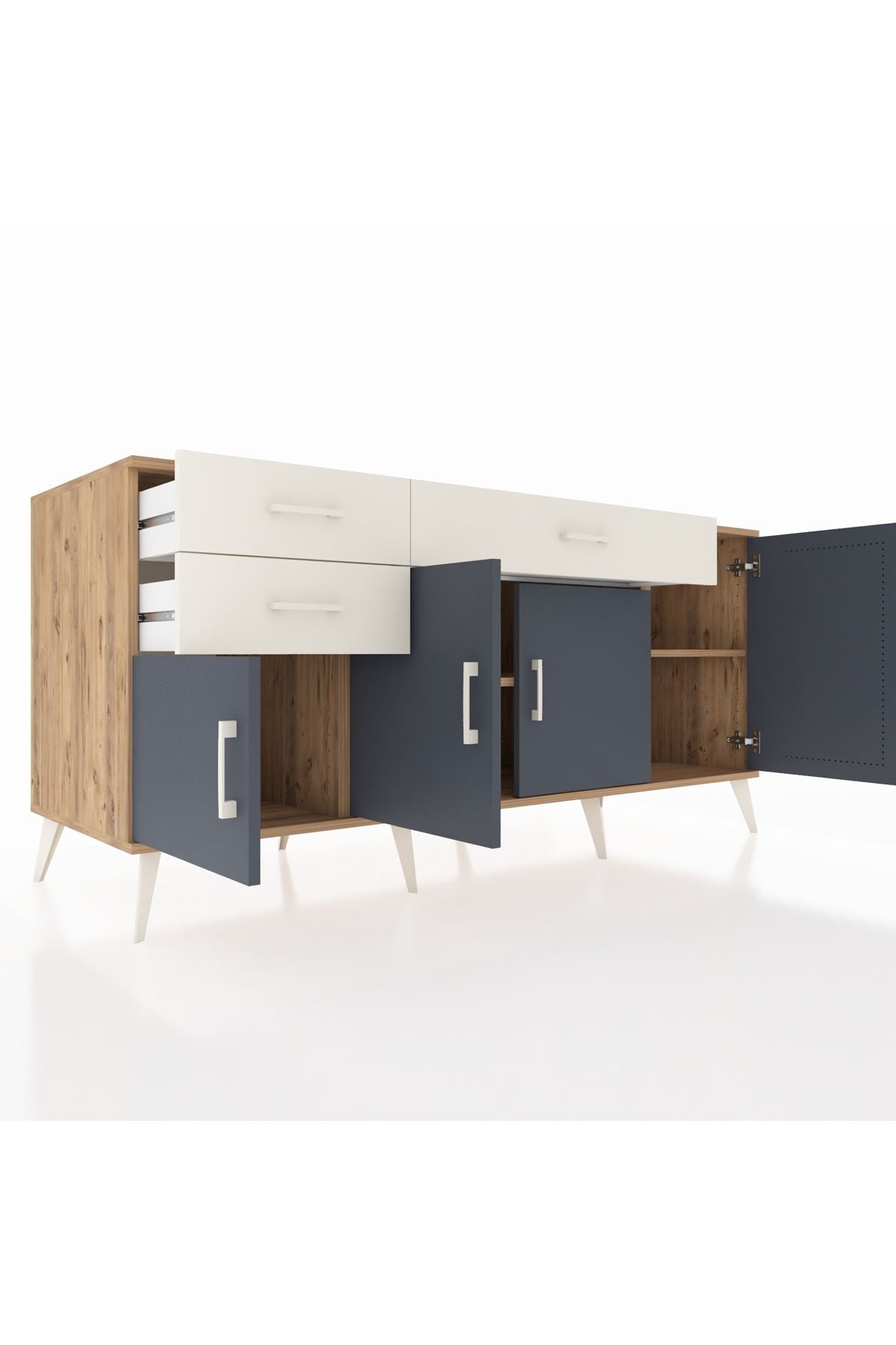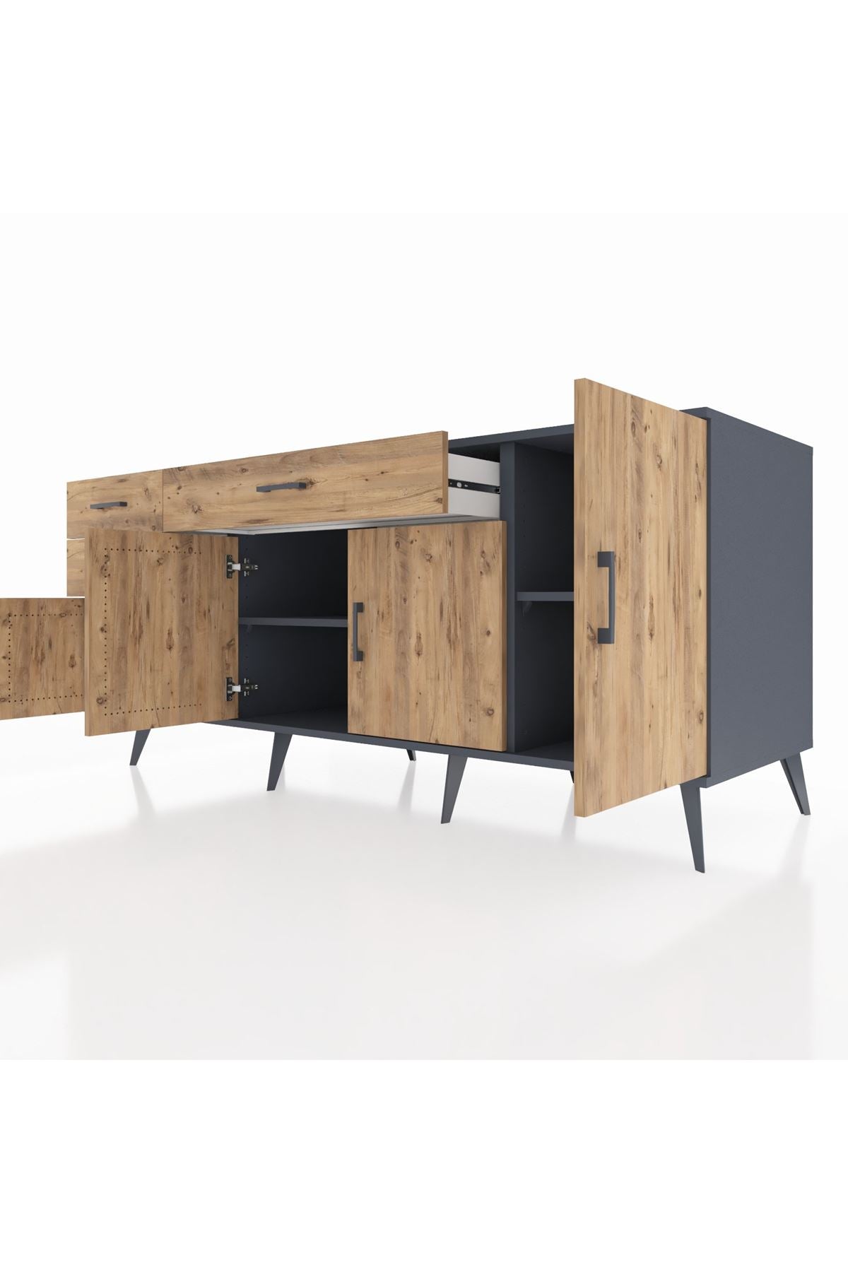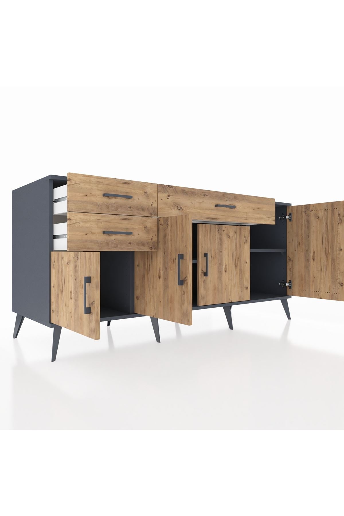 🦾 Konsolumuzun ayakları ve kulpları metal malzemeden üretilmiştir. Metal detaylar, konsola modern ve şık bir görünüm kazandırırken, sağlam yapısıyla da güvenli bir kullanım sunar.