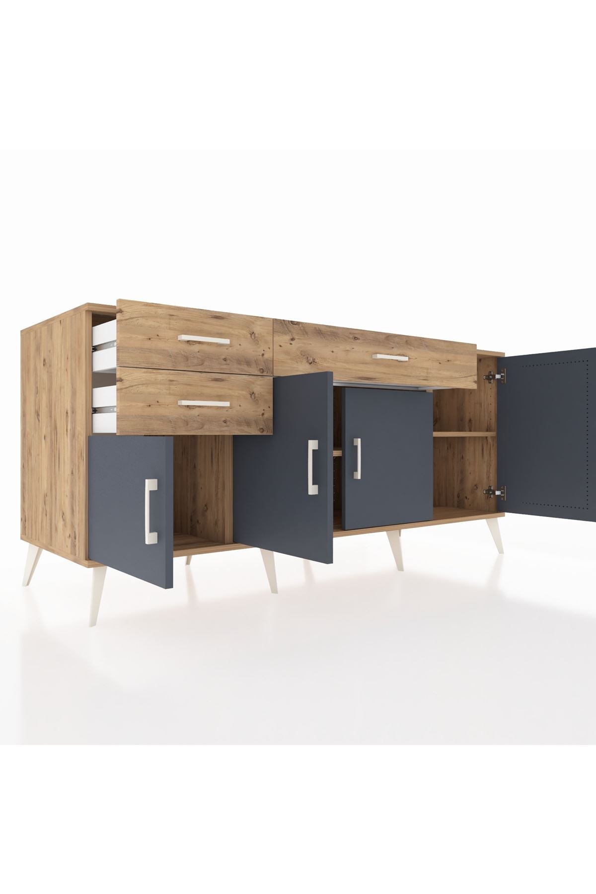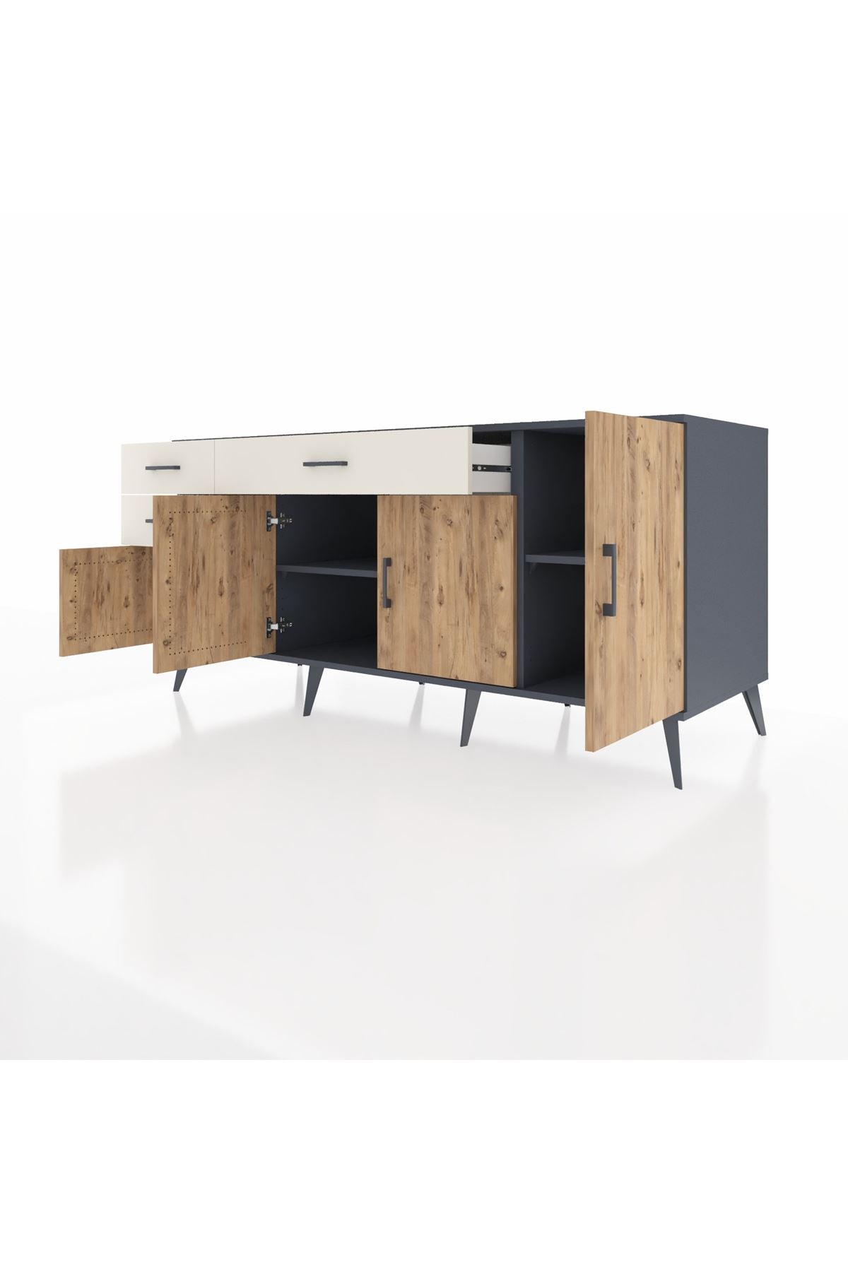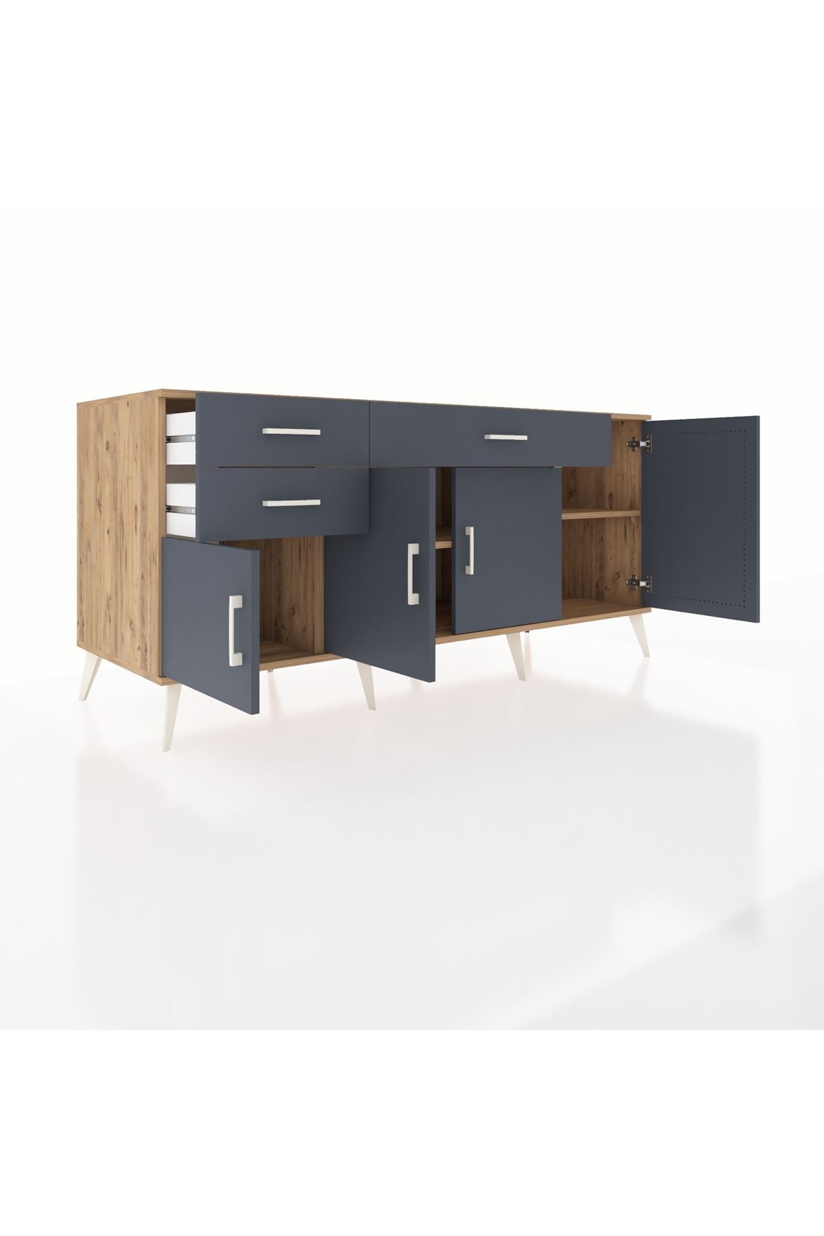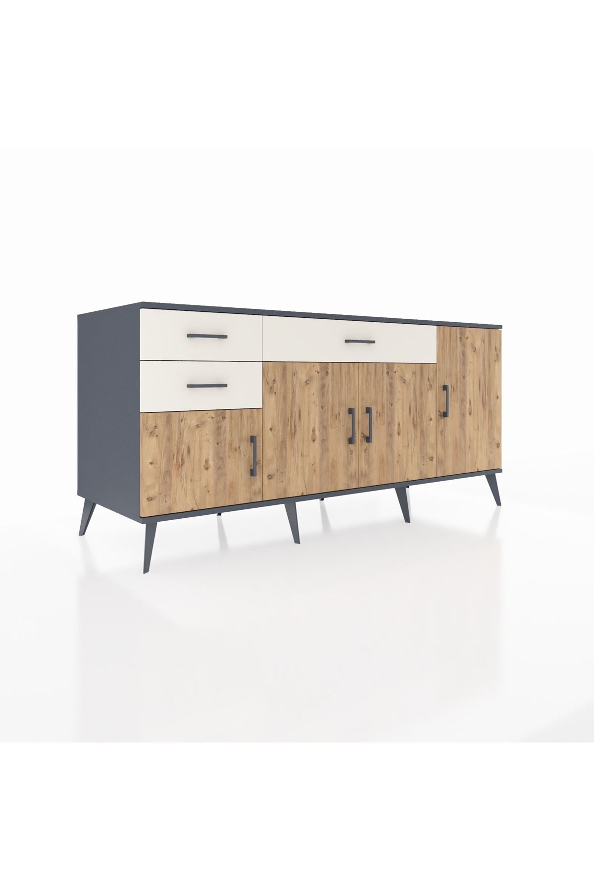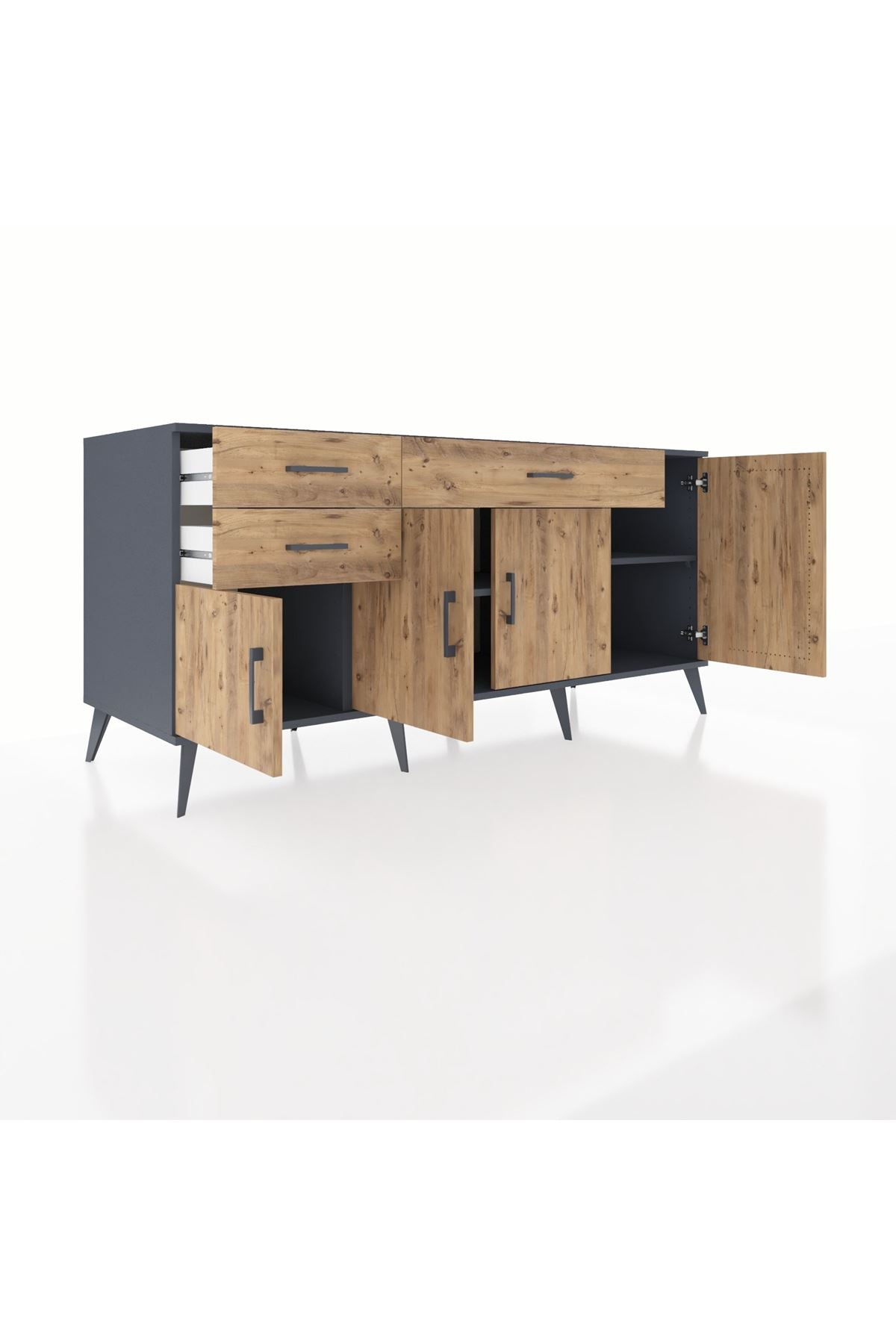 🦾 Konsolumuzun ayakları ve kulpları metal malzemeden üretilmiştir. Metal detaylar, konsola modern ve şık bir görünüm kazandırırken, sağlam yapısıyla da güvenli bir kullanım sunar.