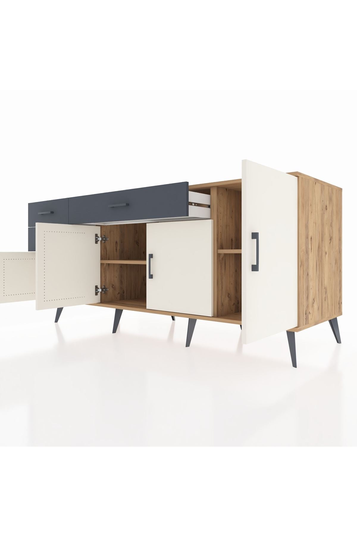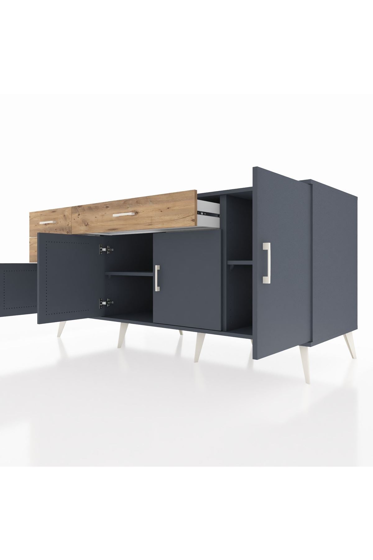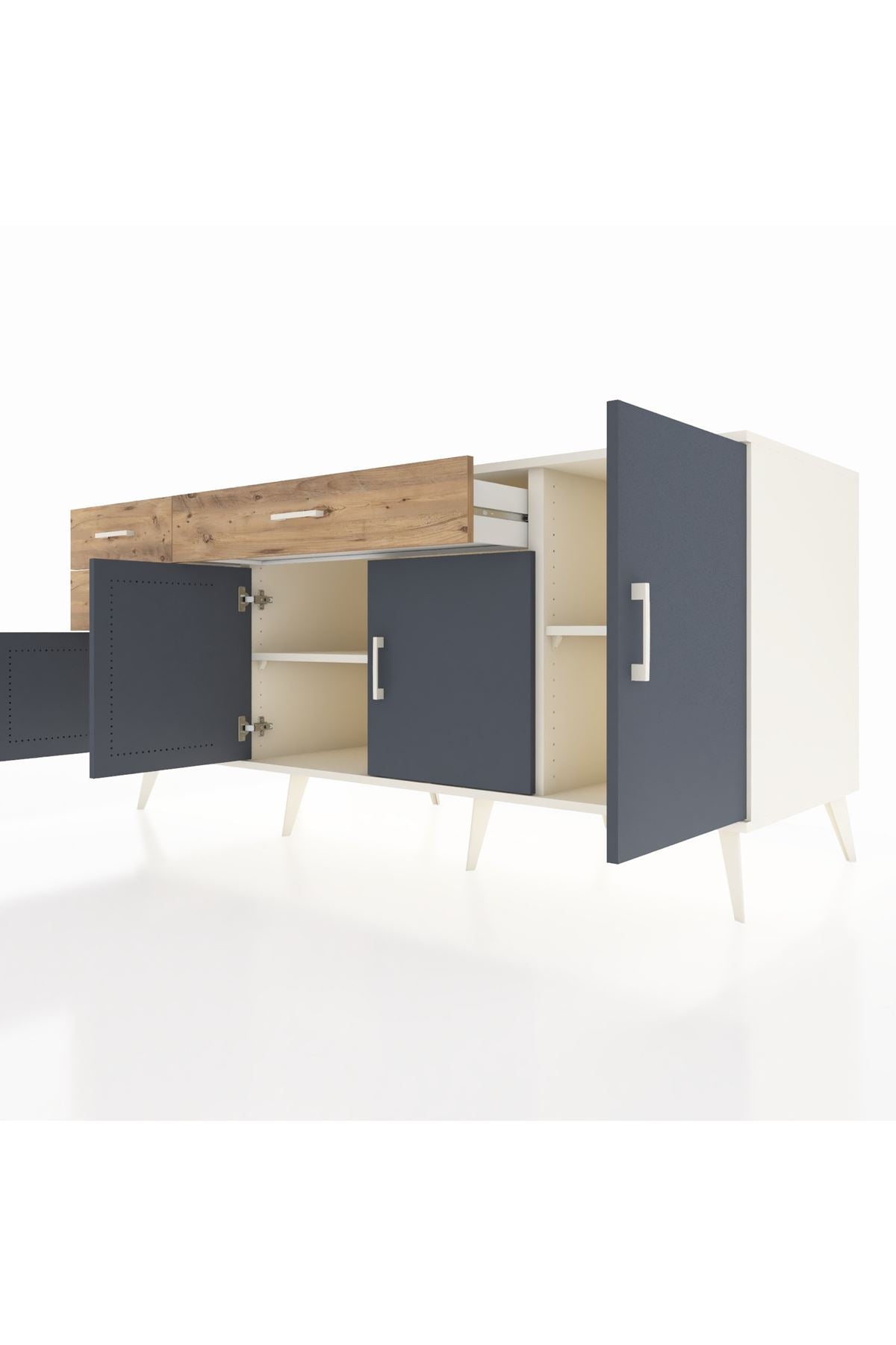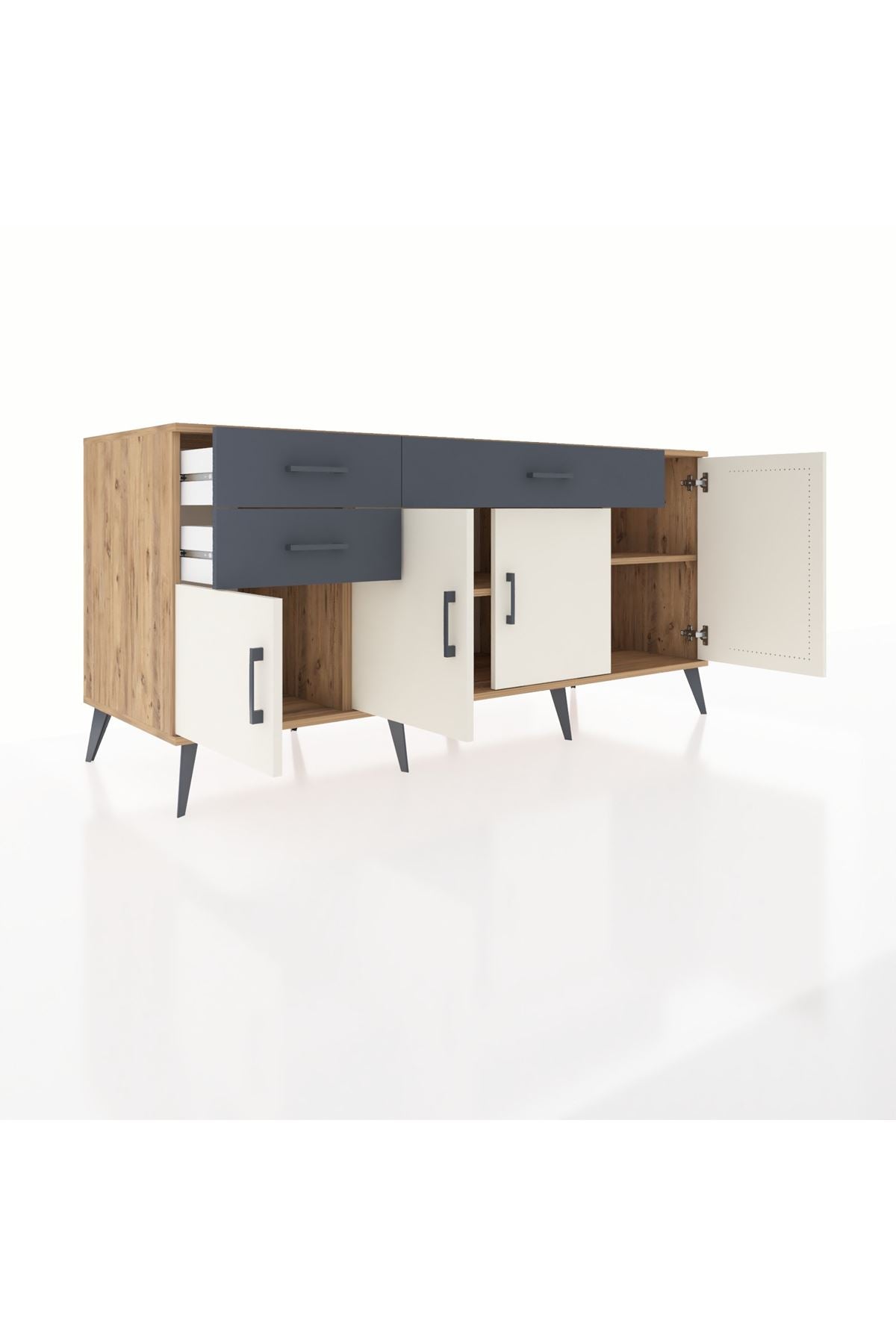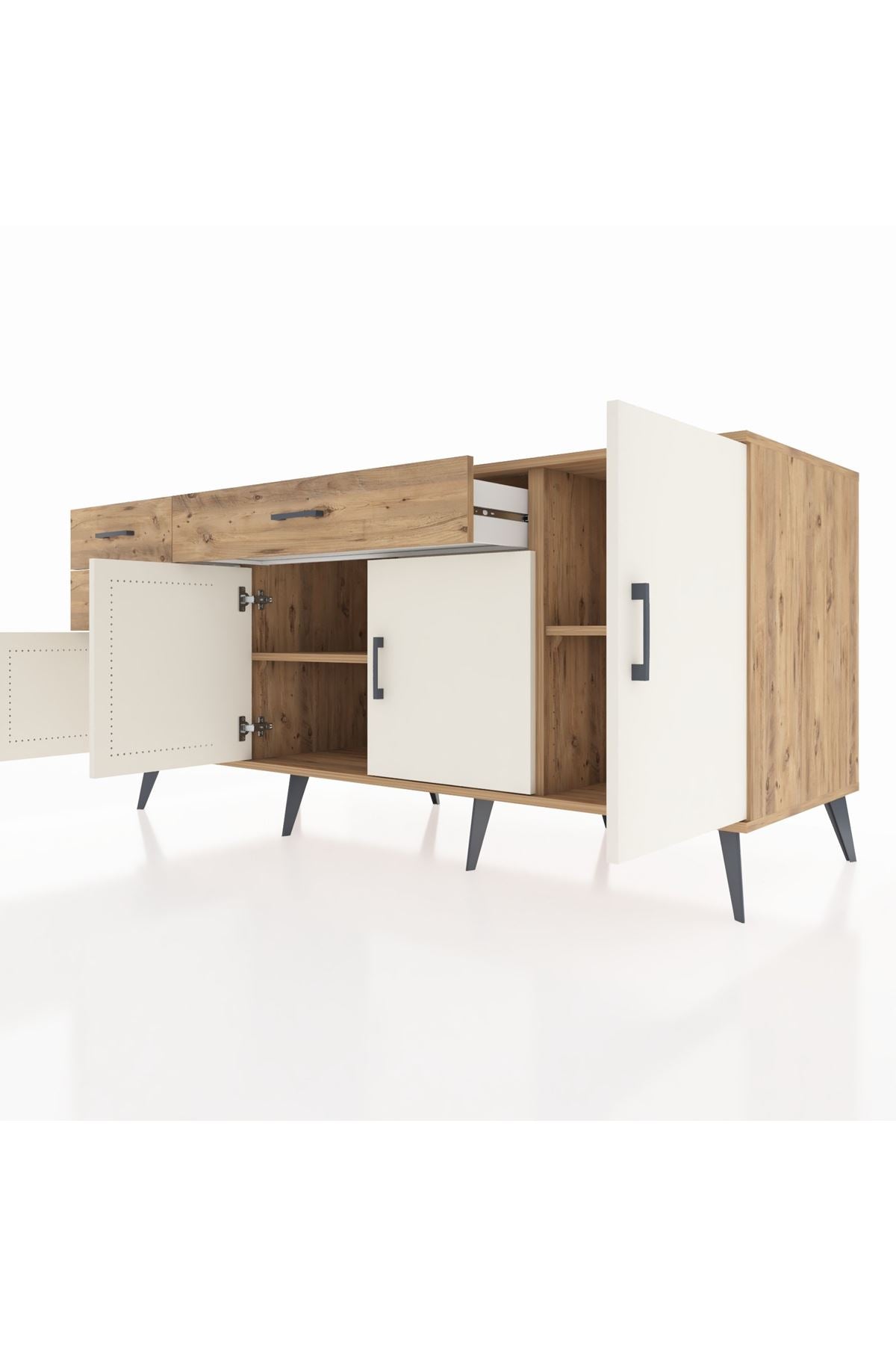 Kronos Konsol 3 Raflı 3 Çekmeceli 4 Kapaklı 176x59x83