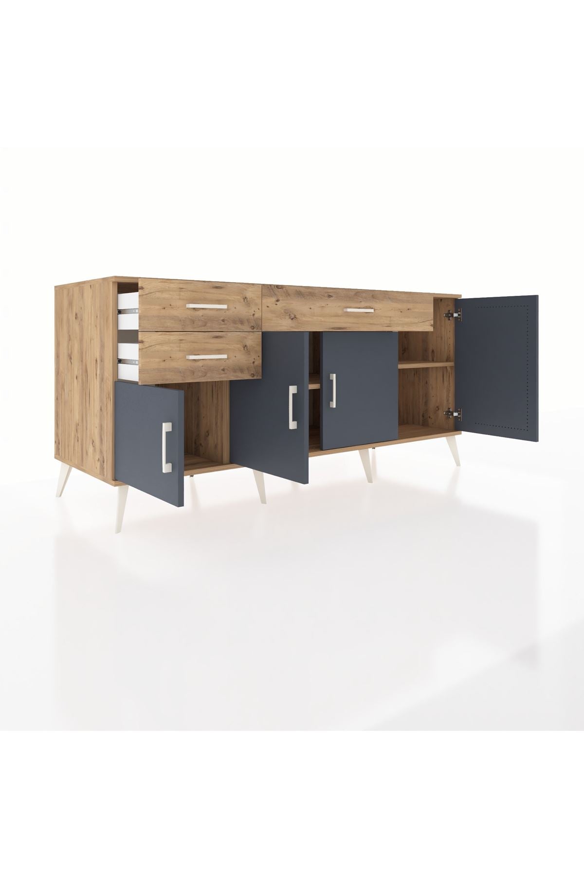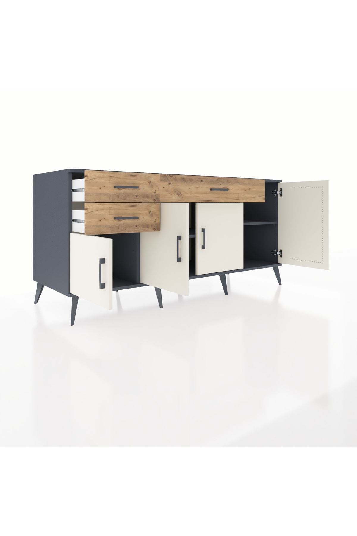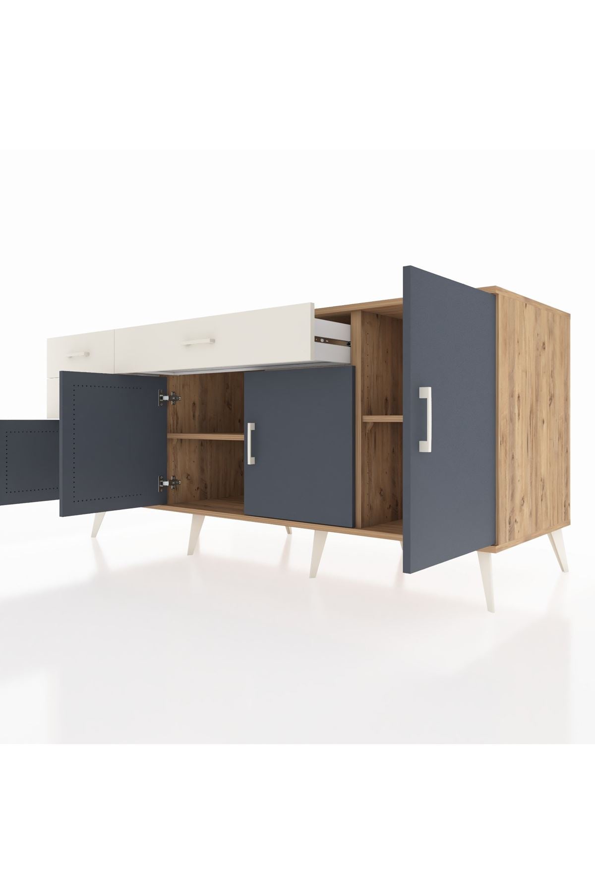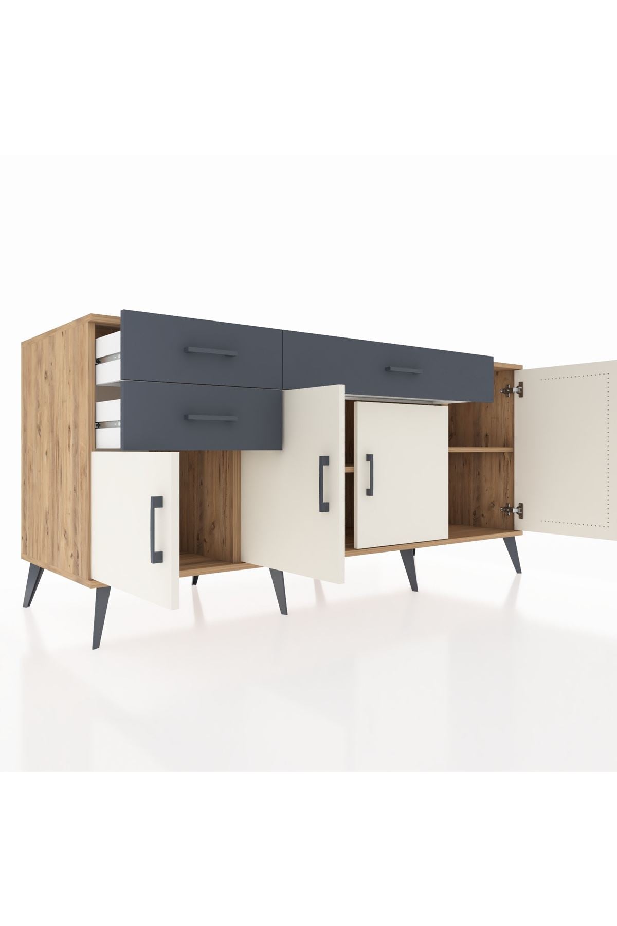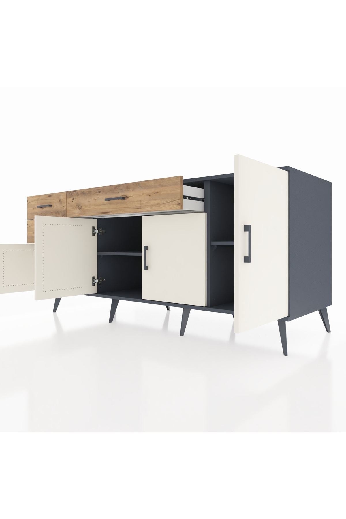 Kronos Konsol 3 Raflı 3 Çekmeceli 4 Kapaklı 176x59x83