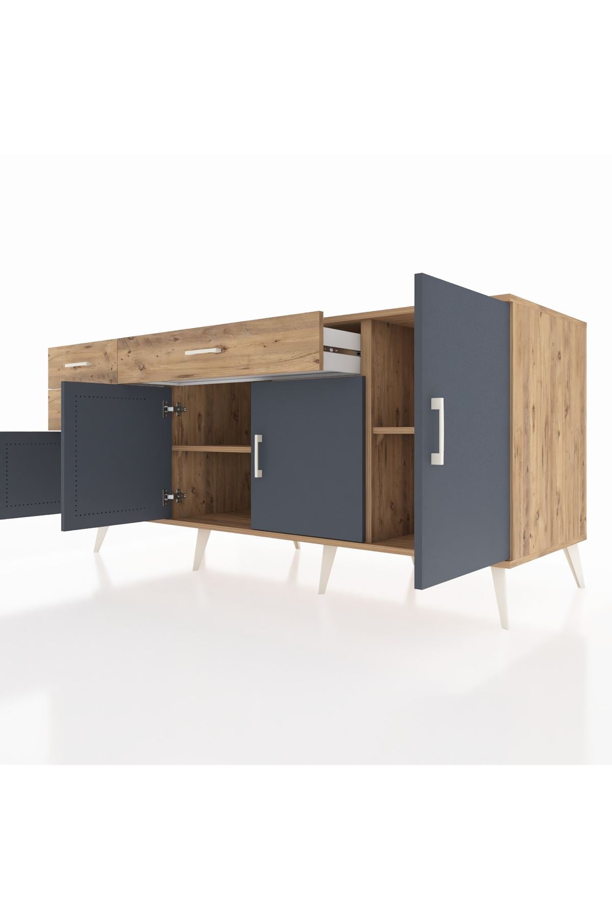 📌 Kronos Konsol 3 Raflı 3 Çekmeceli 4 Kapaklı 176x59x83
