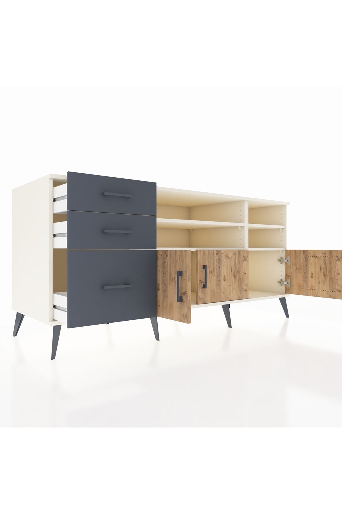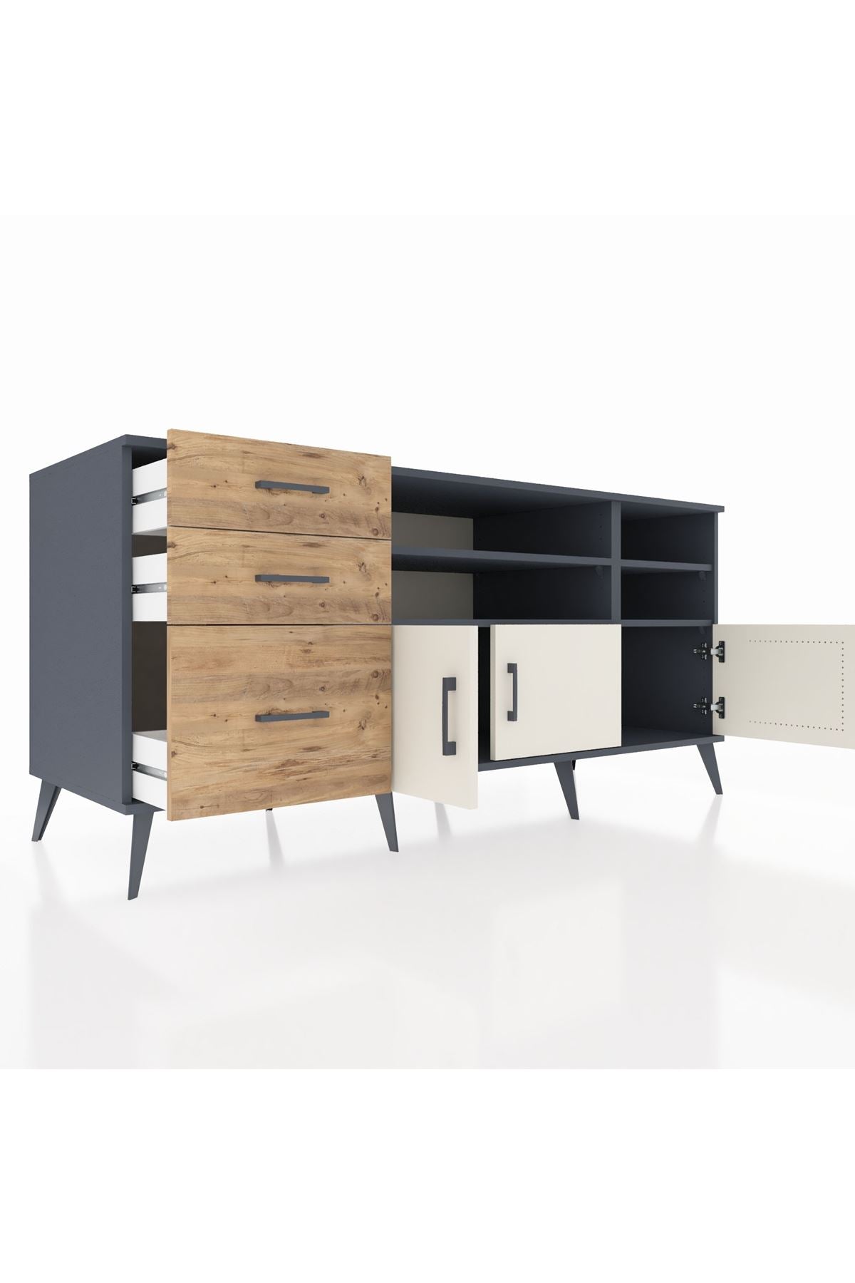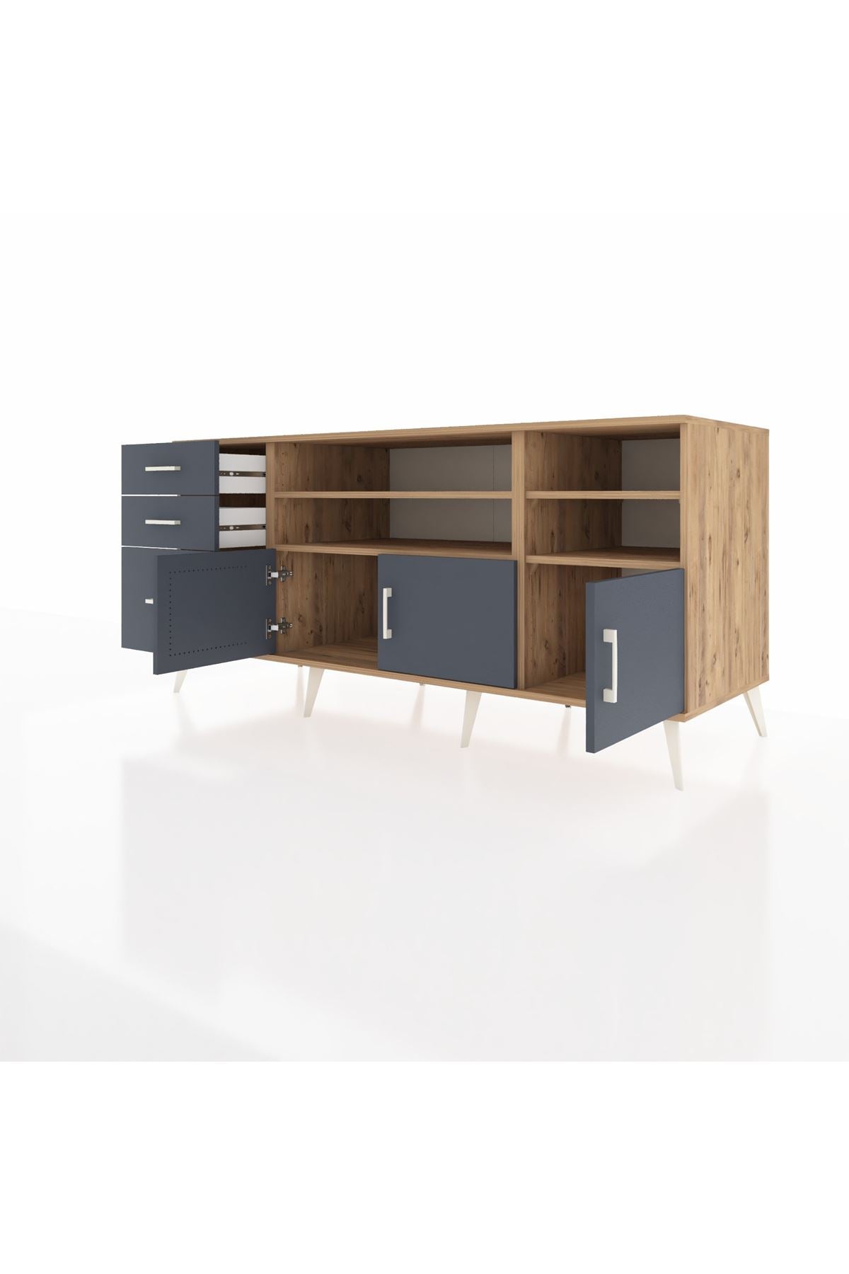 Kronos Konsol 4 Raflı 3 Çekmeceli 3 Kapaklı 176x59x83