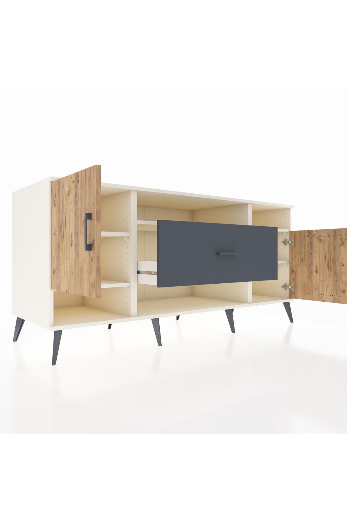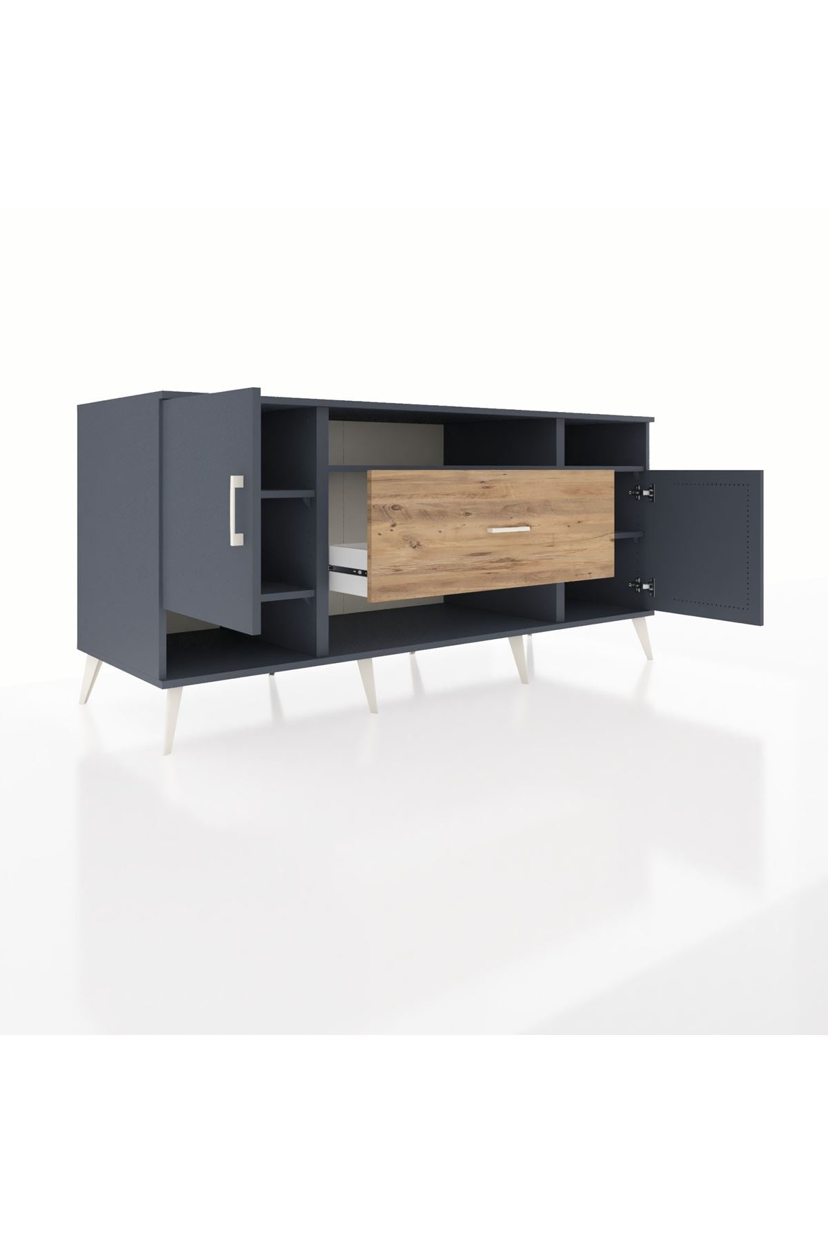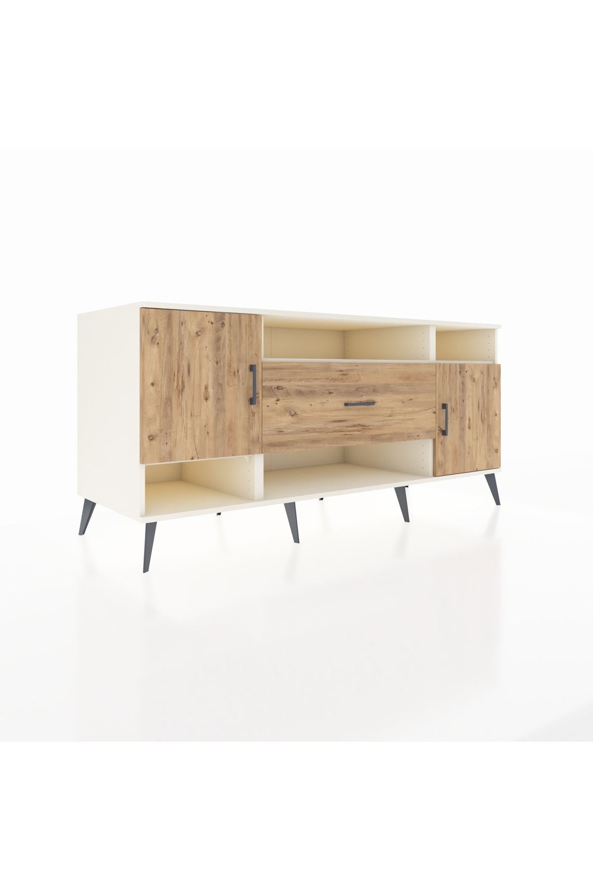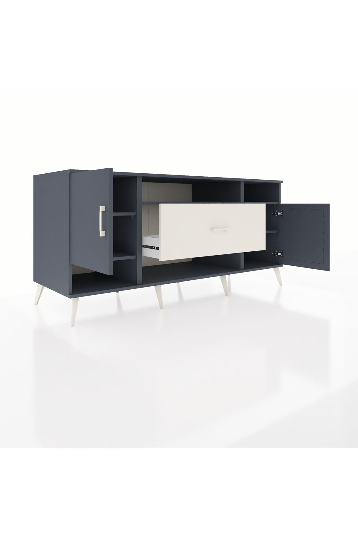 🦾 Metal ayaklar ve metal kulplar, konsolun modern ve şık görünümünü pekiştiriyor. Metal detaylar, hem sağlamlık sunar hem de tasarıma zarif bir dokunuş katar.