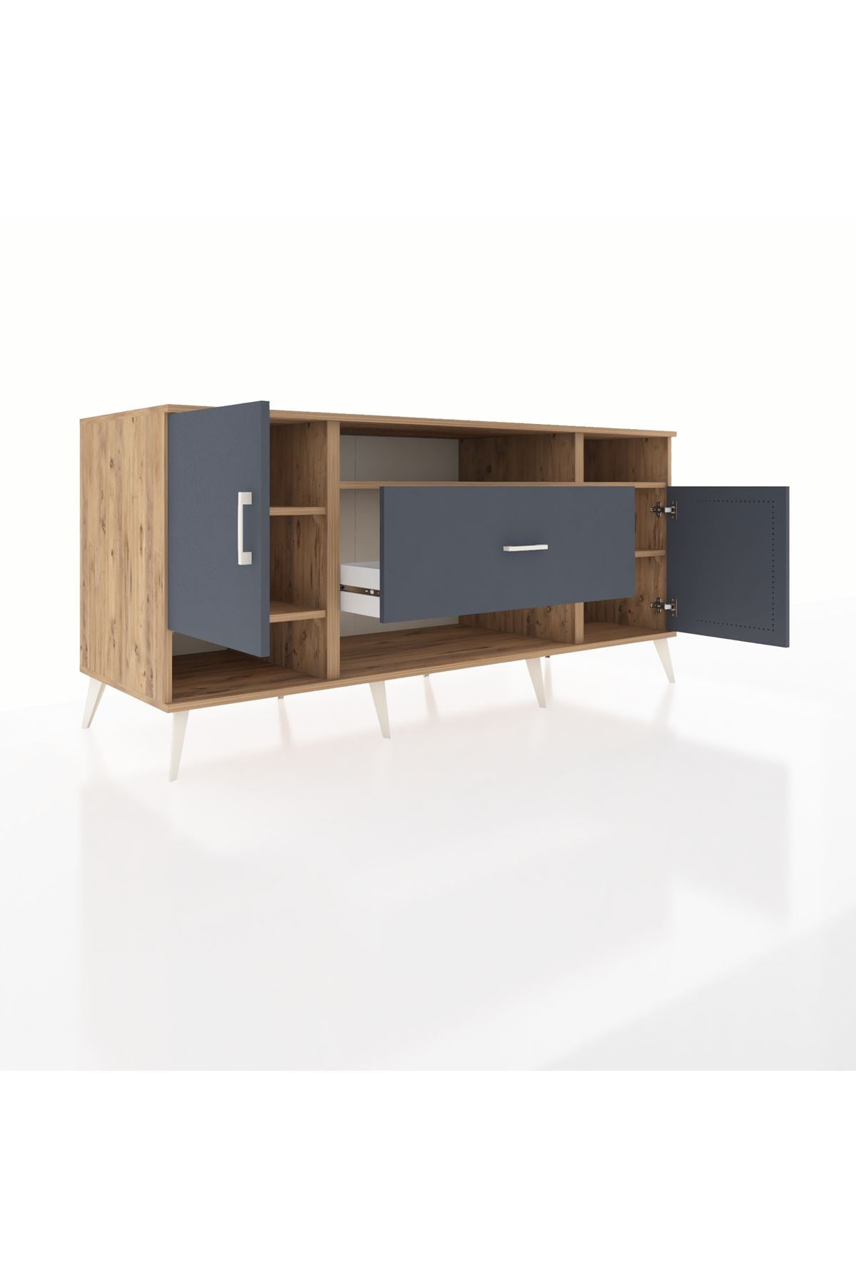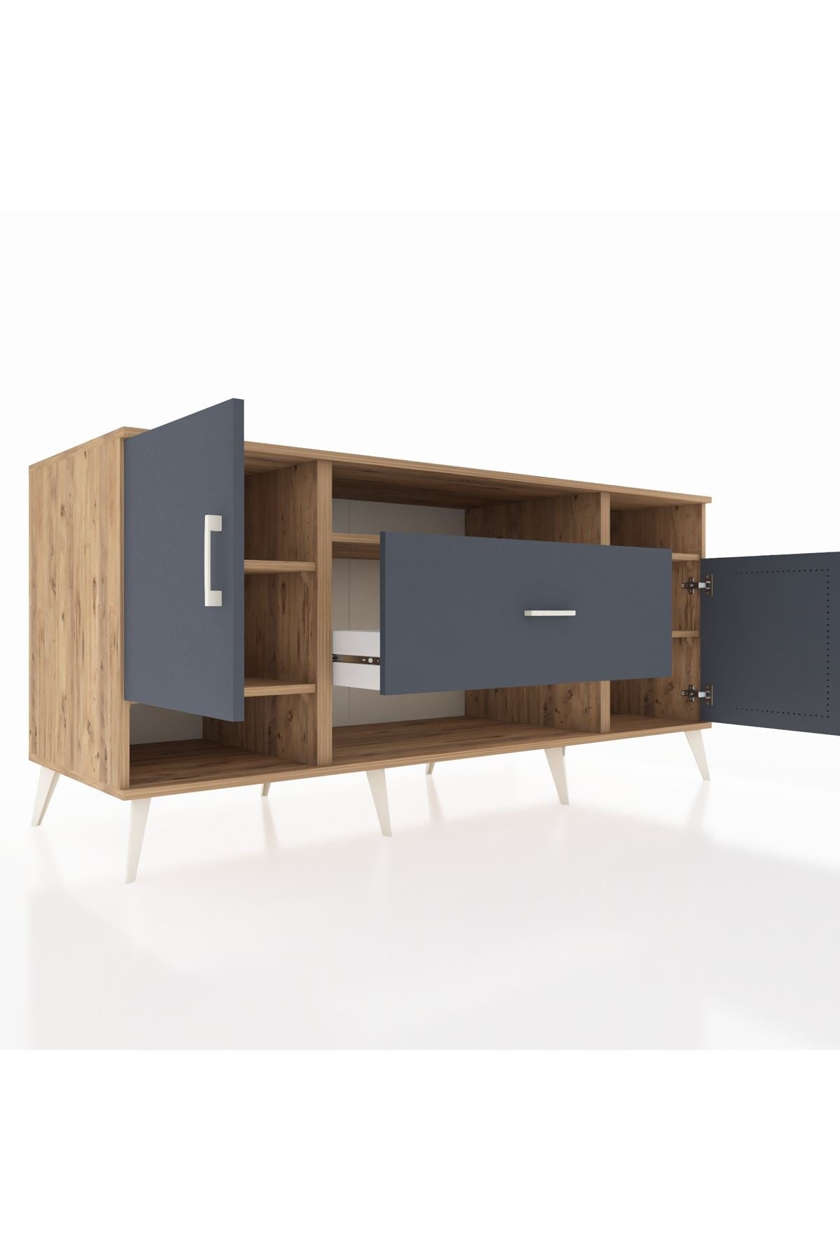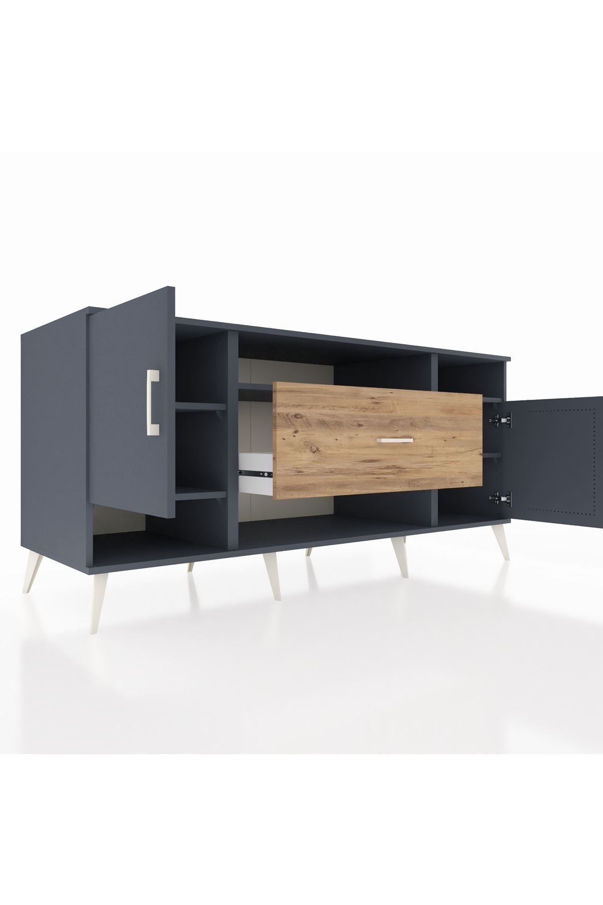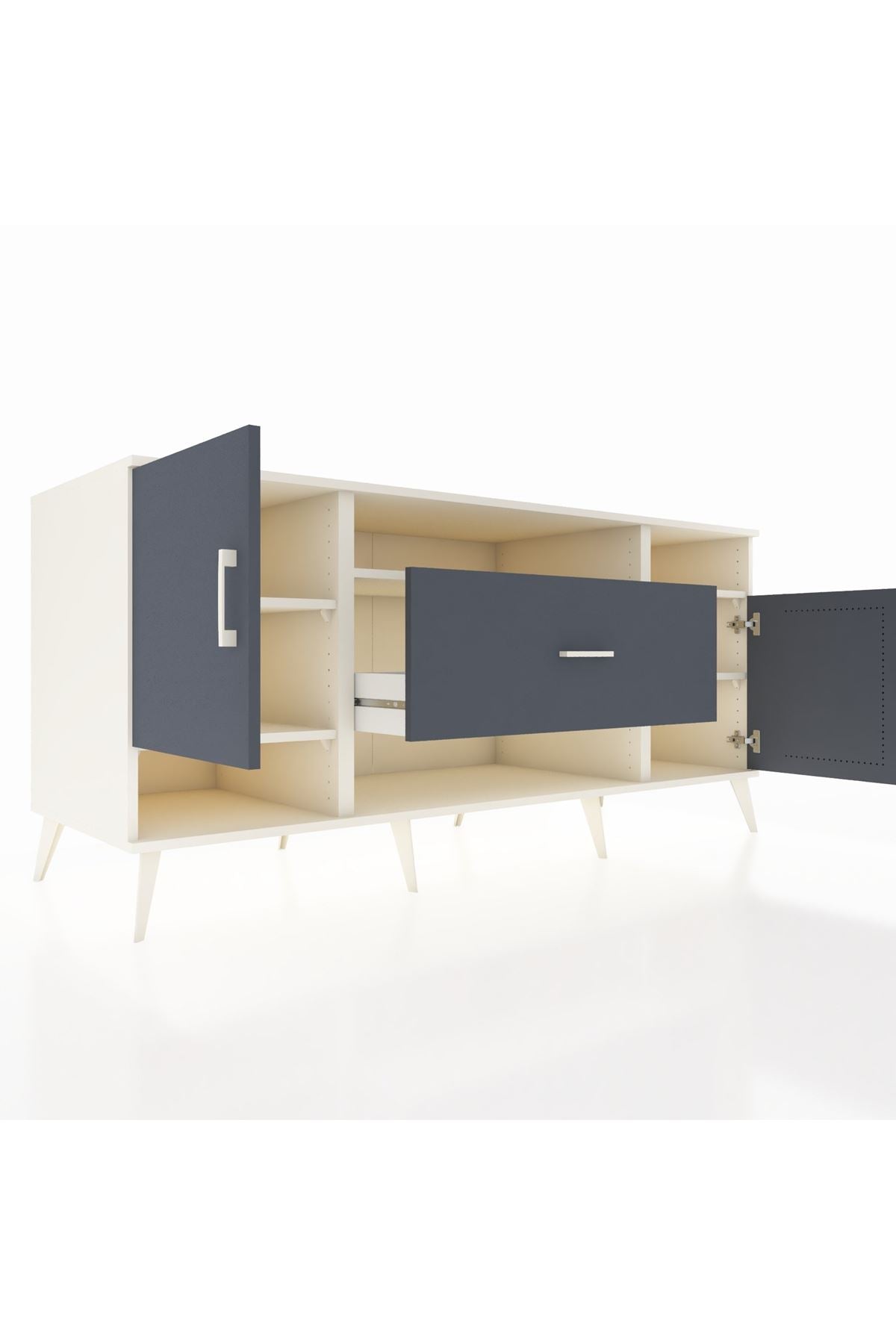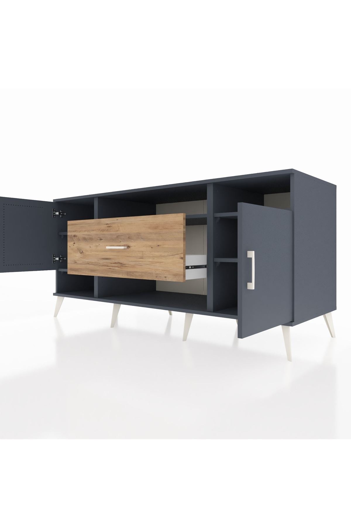 🦾 Metal ayaklar ve metal kulplar, konsolun modern ve şık görünümünü pekiştiriyor. Metal detaylar, hem sağlamlık sunar hem de tasarıma zarif bir dokunuş katar.