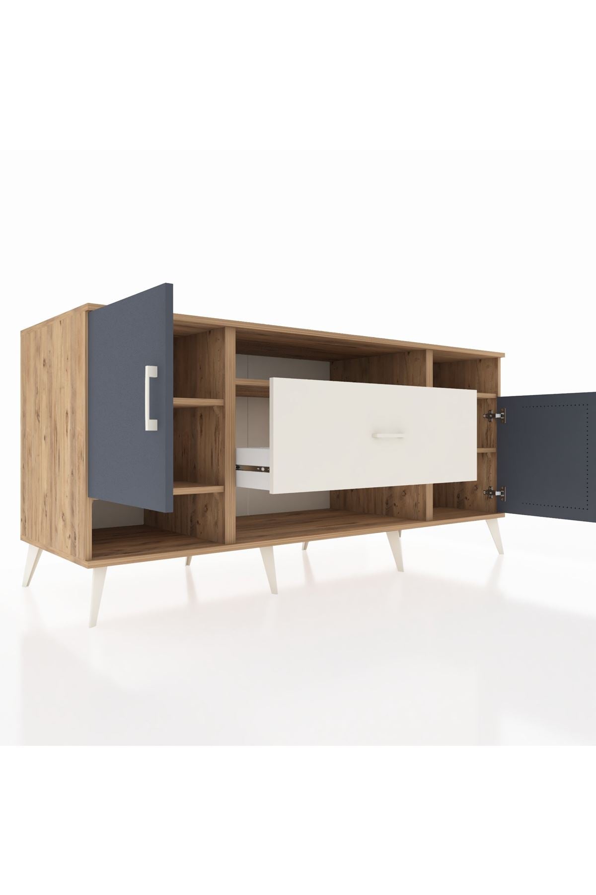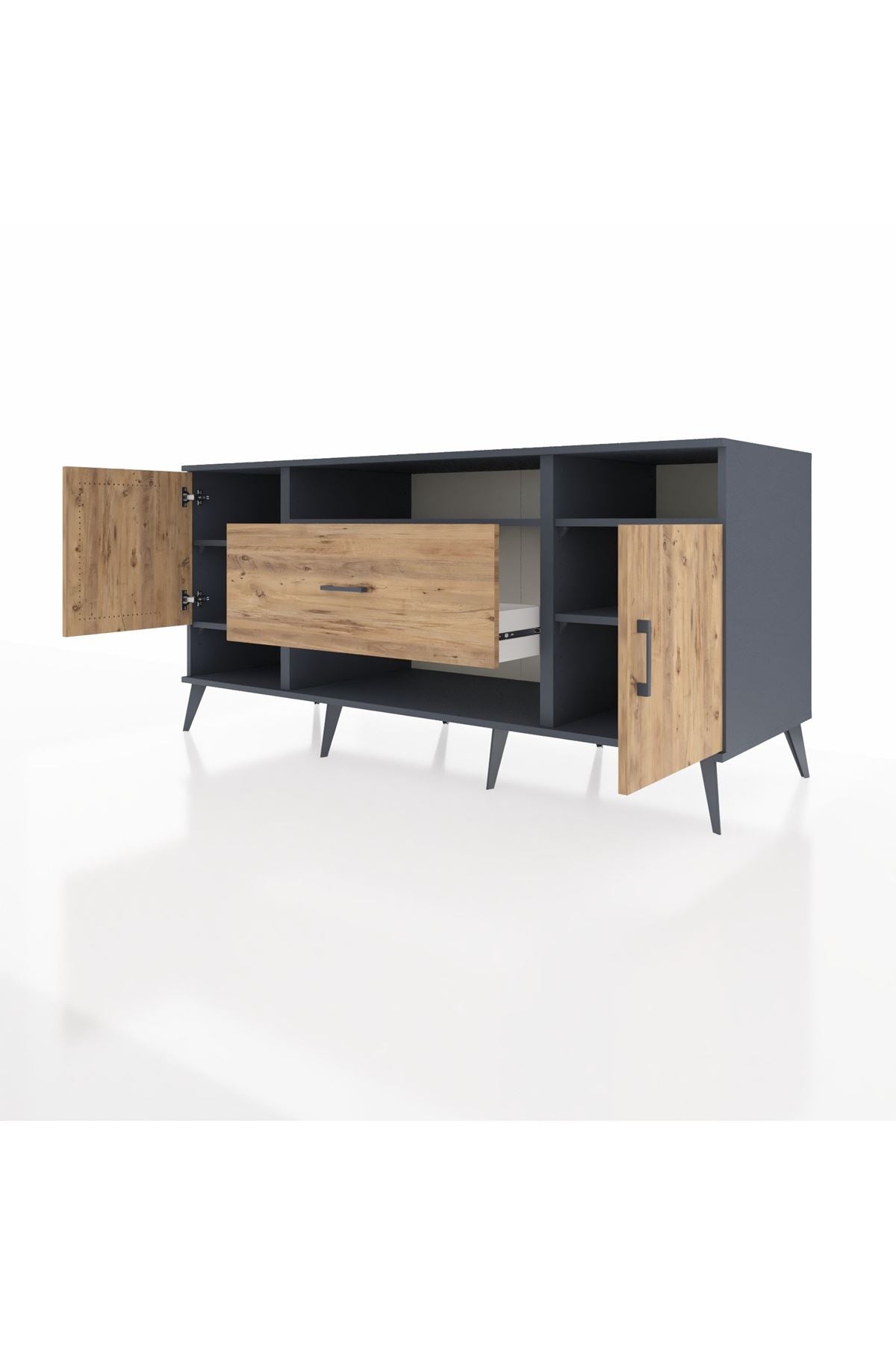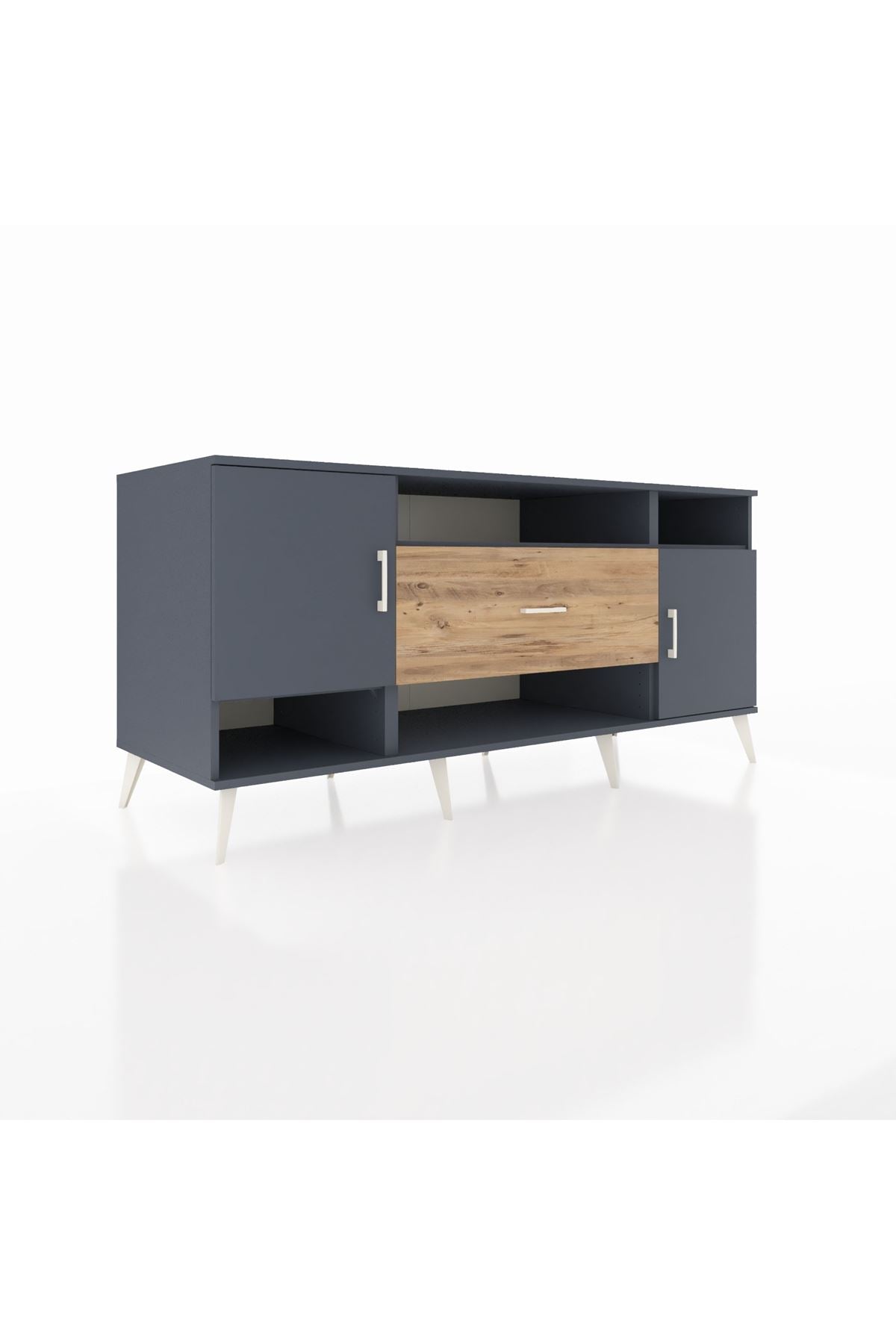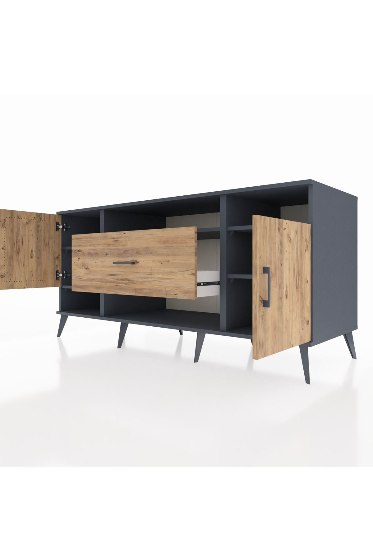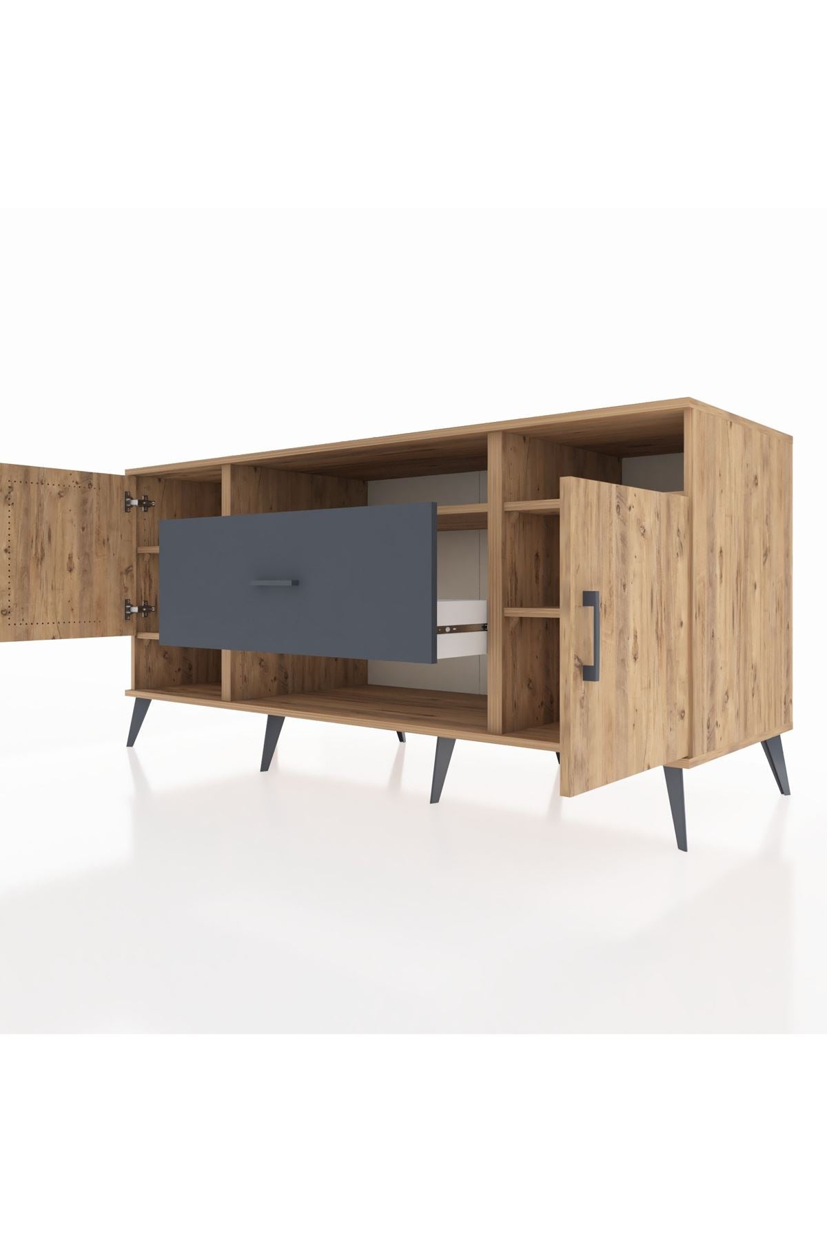 🦾 Metal ayaklar ve metal kulplar, konsolun modern ve şık görünümünü pekiştiriyor. Metal detaylar, hem sağlamlık sunar hem de tasarıma zarif bir dokunuş katar.