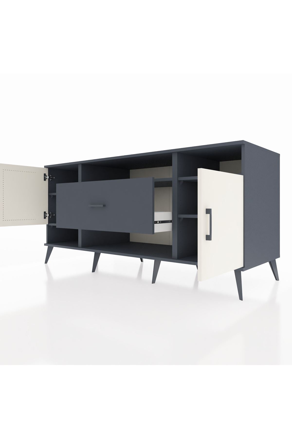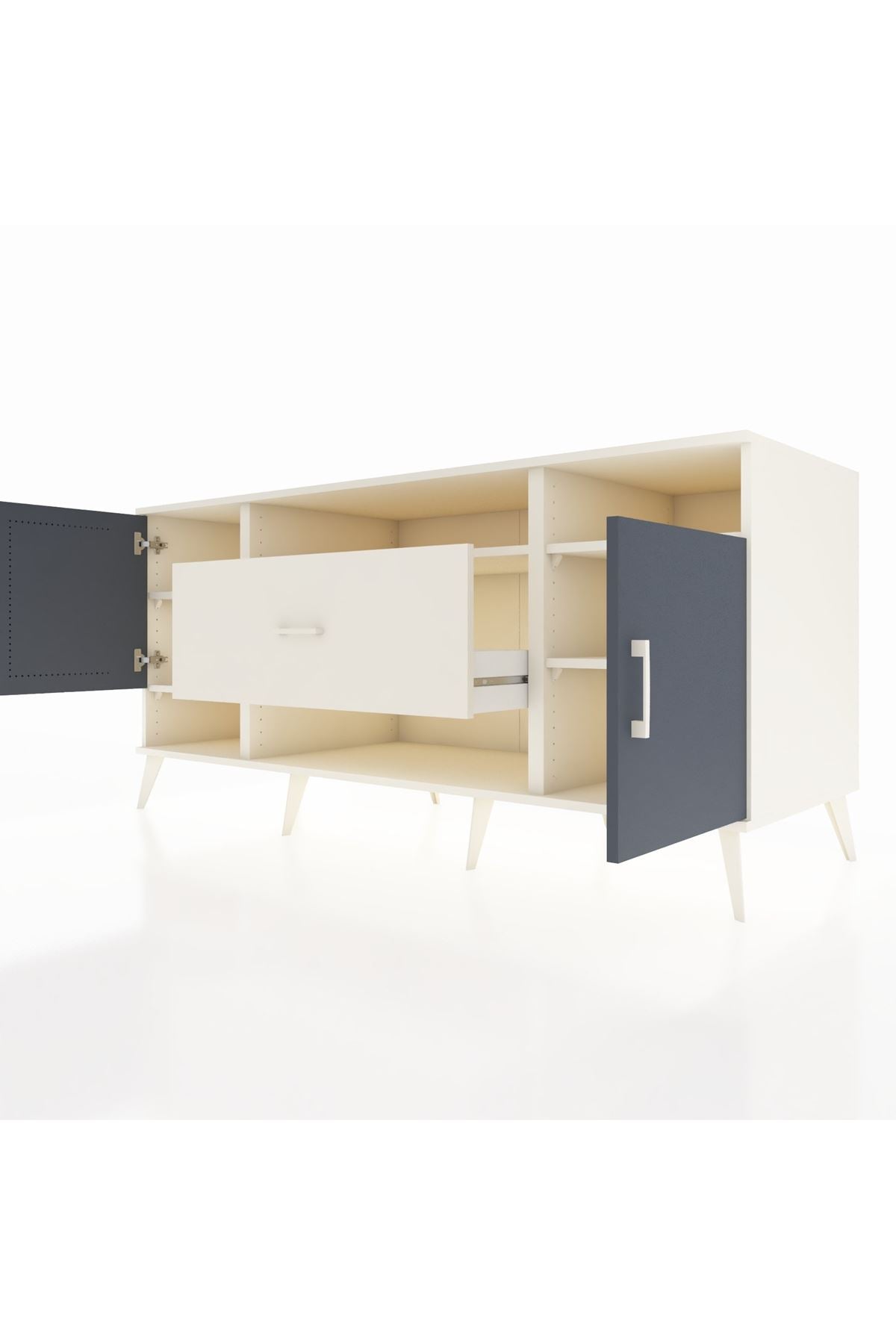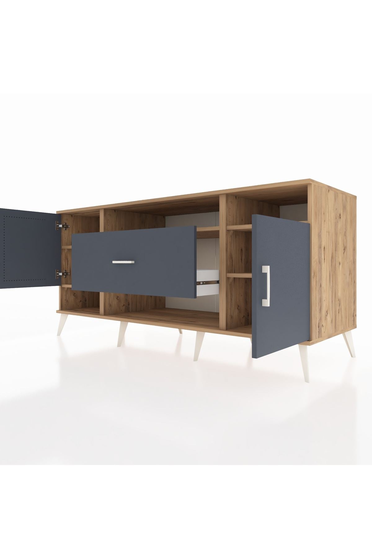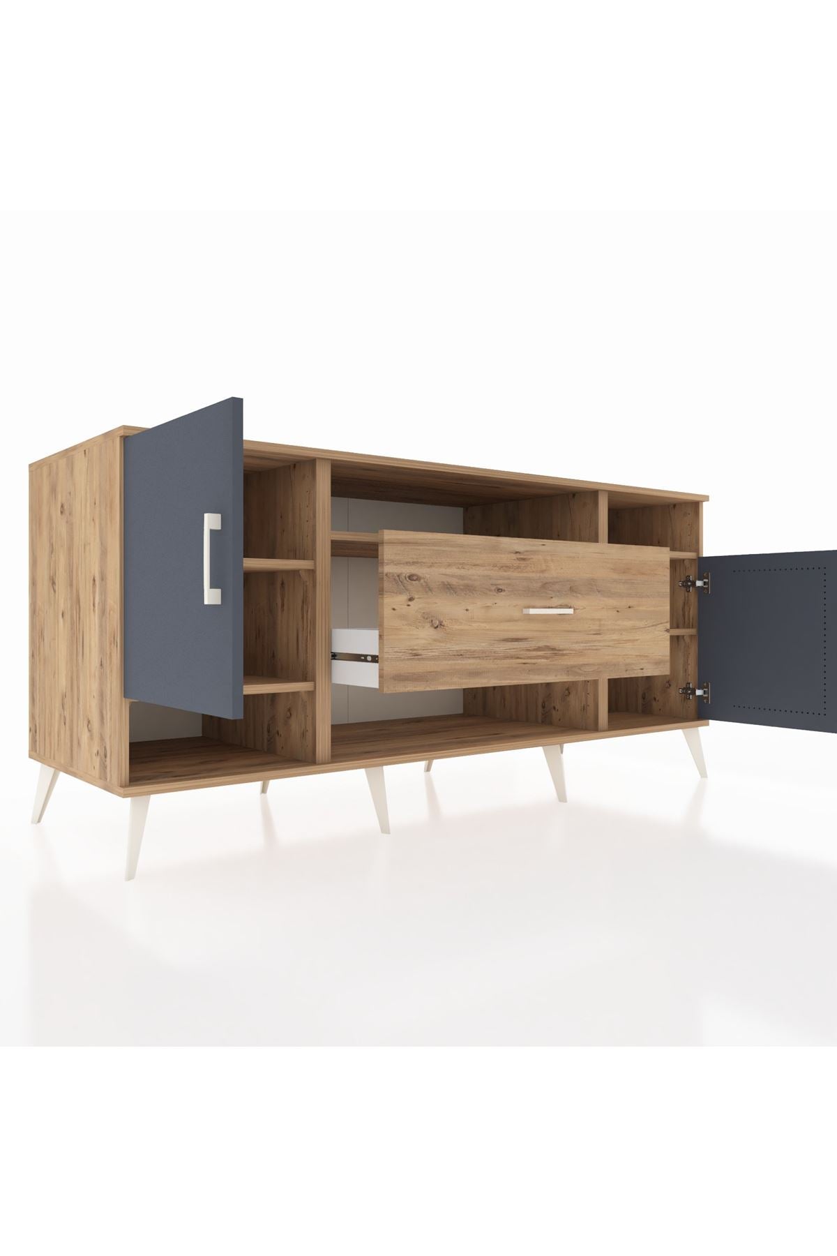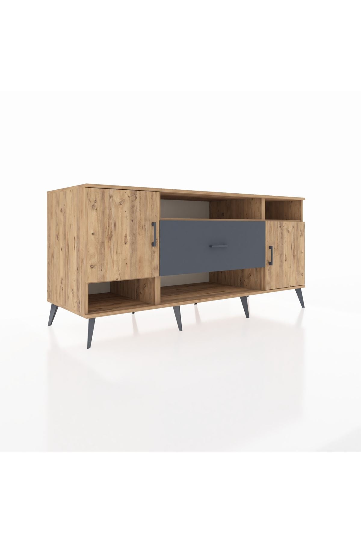 🦾 Metal ayaklar ve metal kulplar, konsolun modern ve şık görünümünü pekiştiriyor. Metal detaylar, hem sağlamlık sunar hem de tasarıma zarif bir dokunuş katar.
