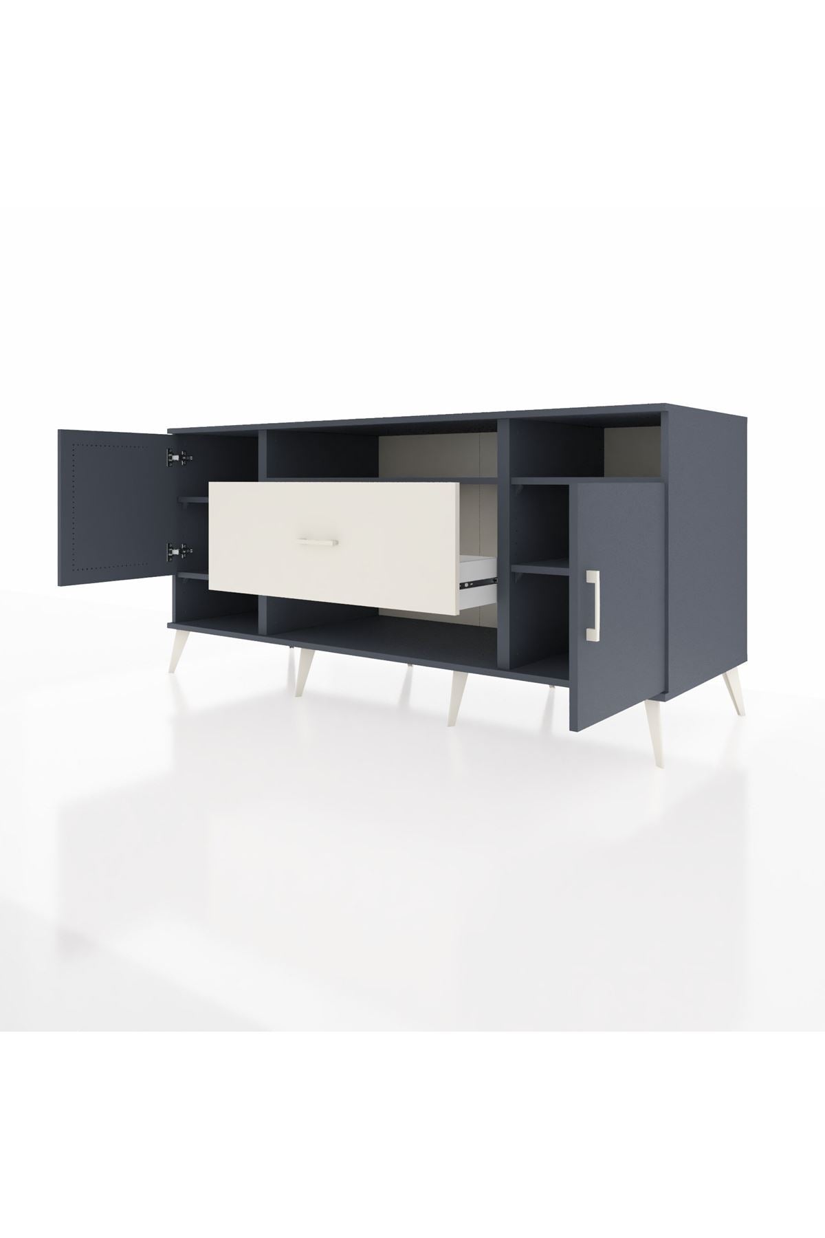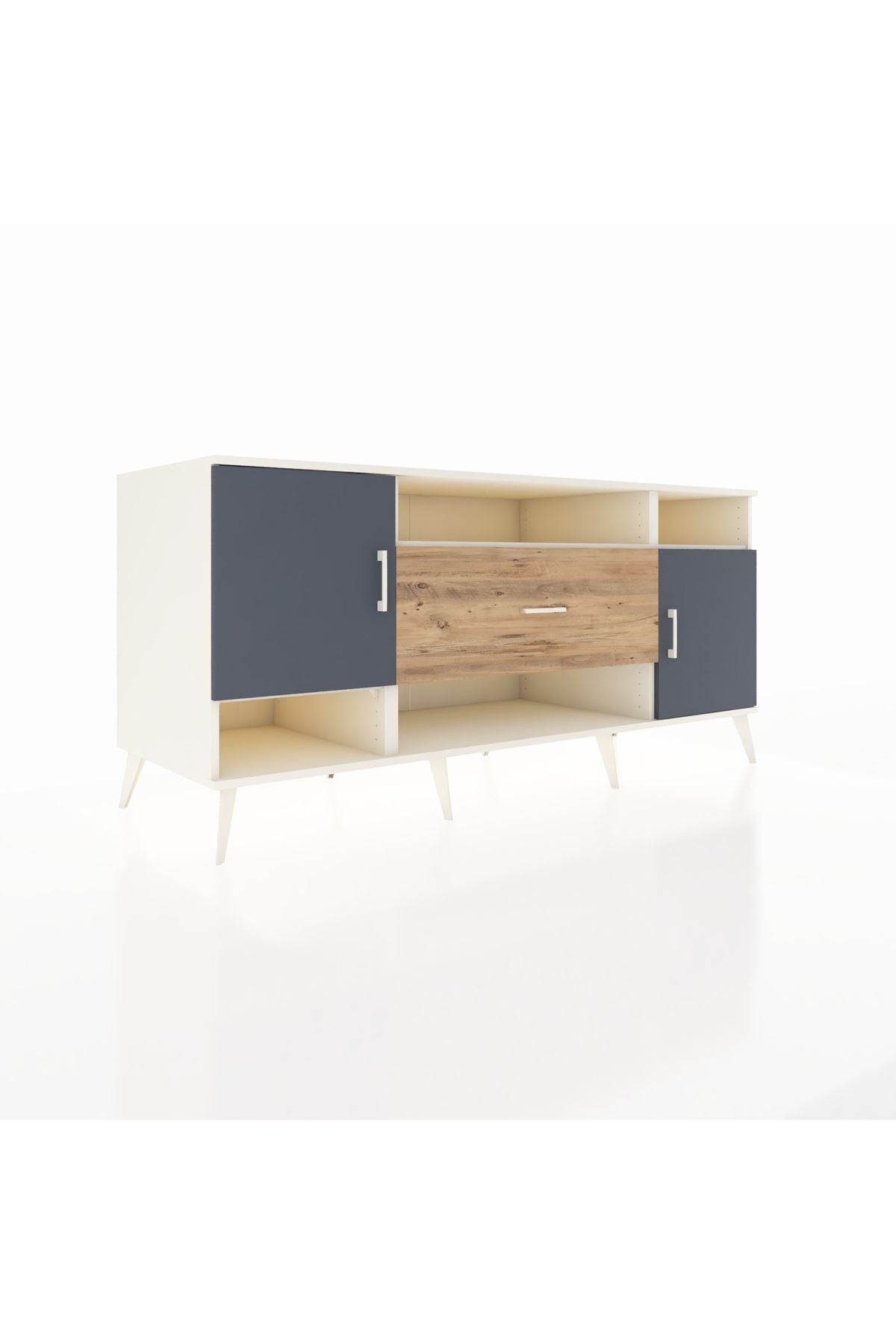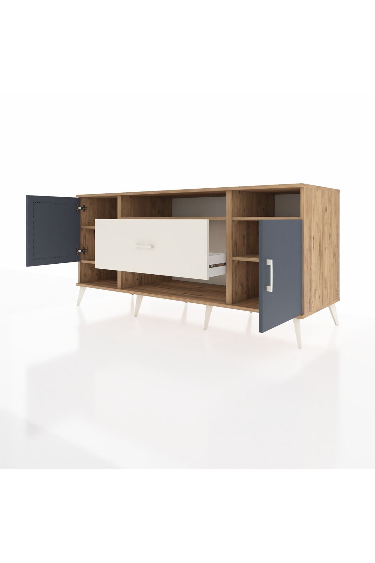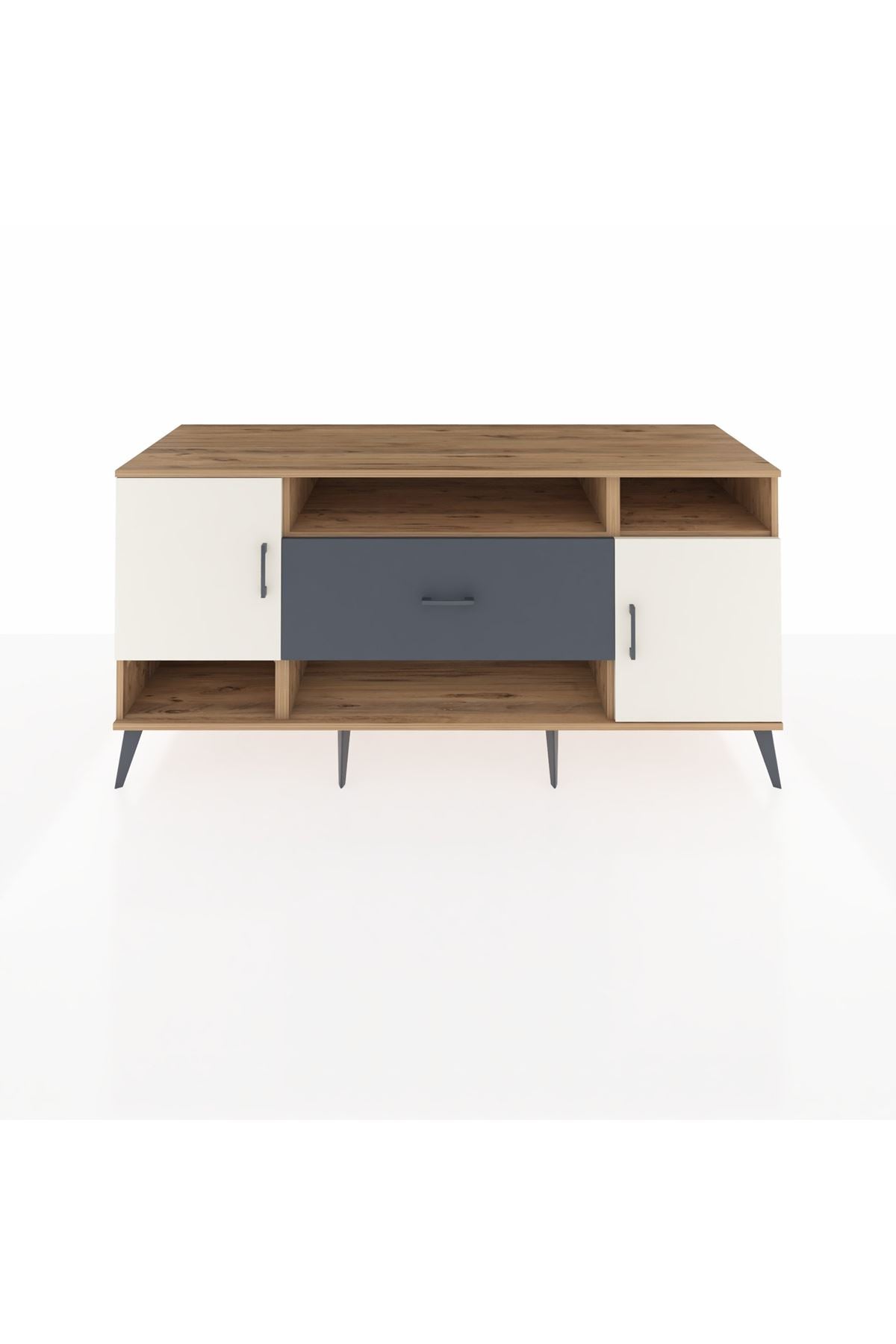 📌 Kronos Konsol 5 Raflı Tek Çekmeceli 2 Kapaklı 176x59x83