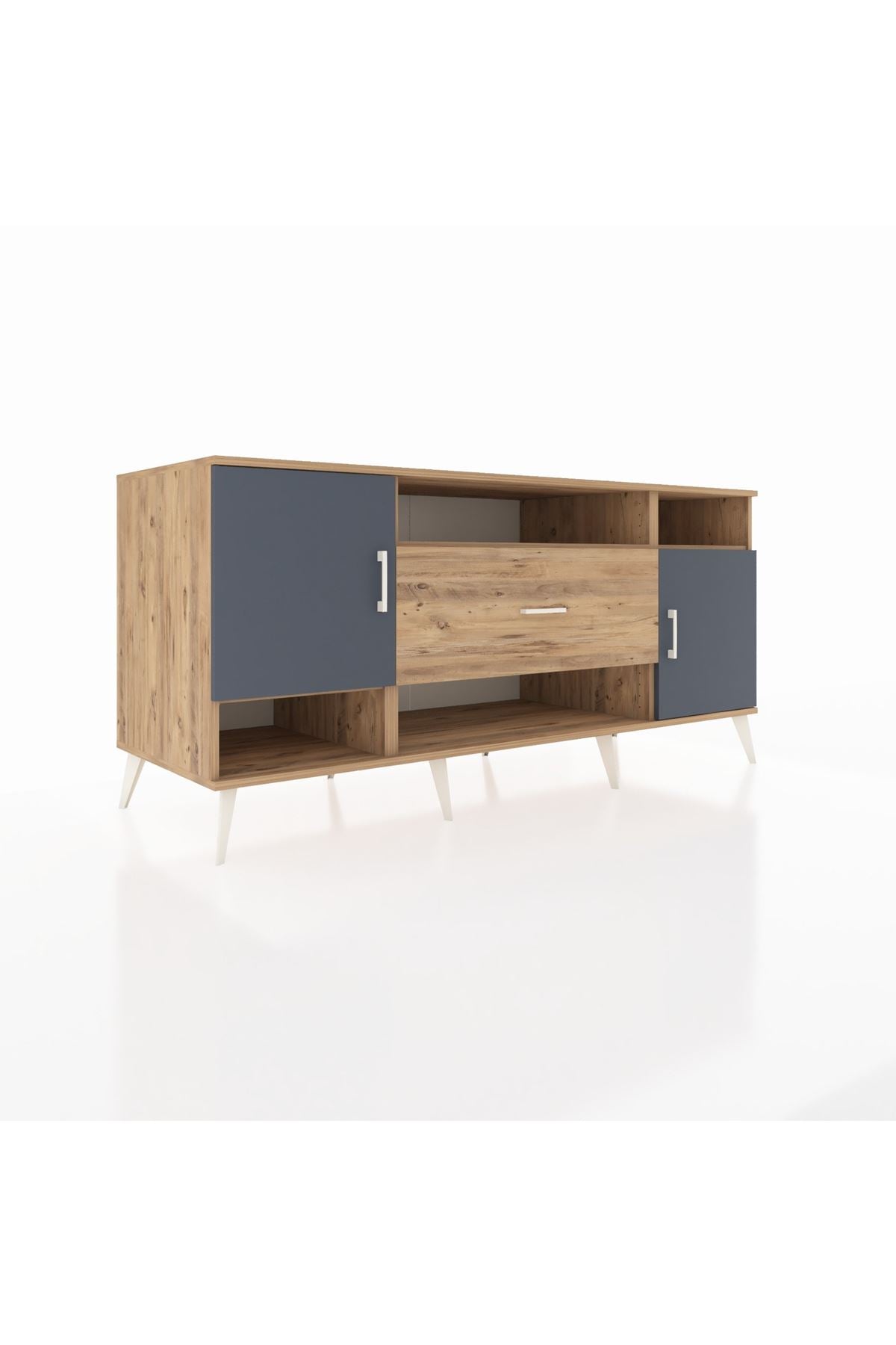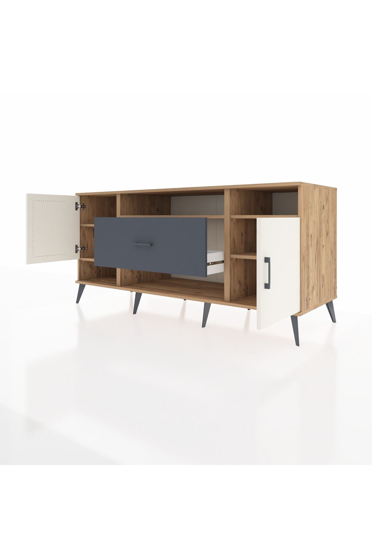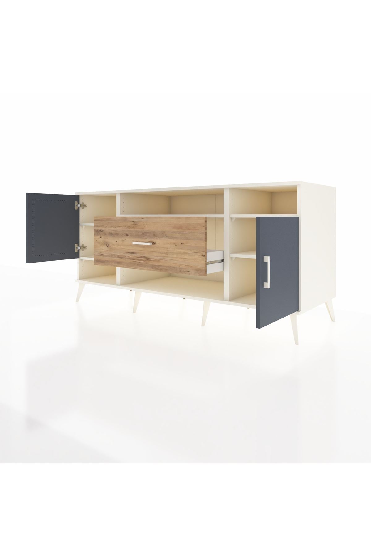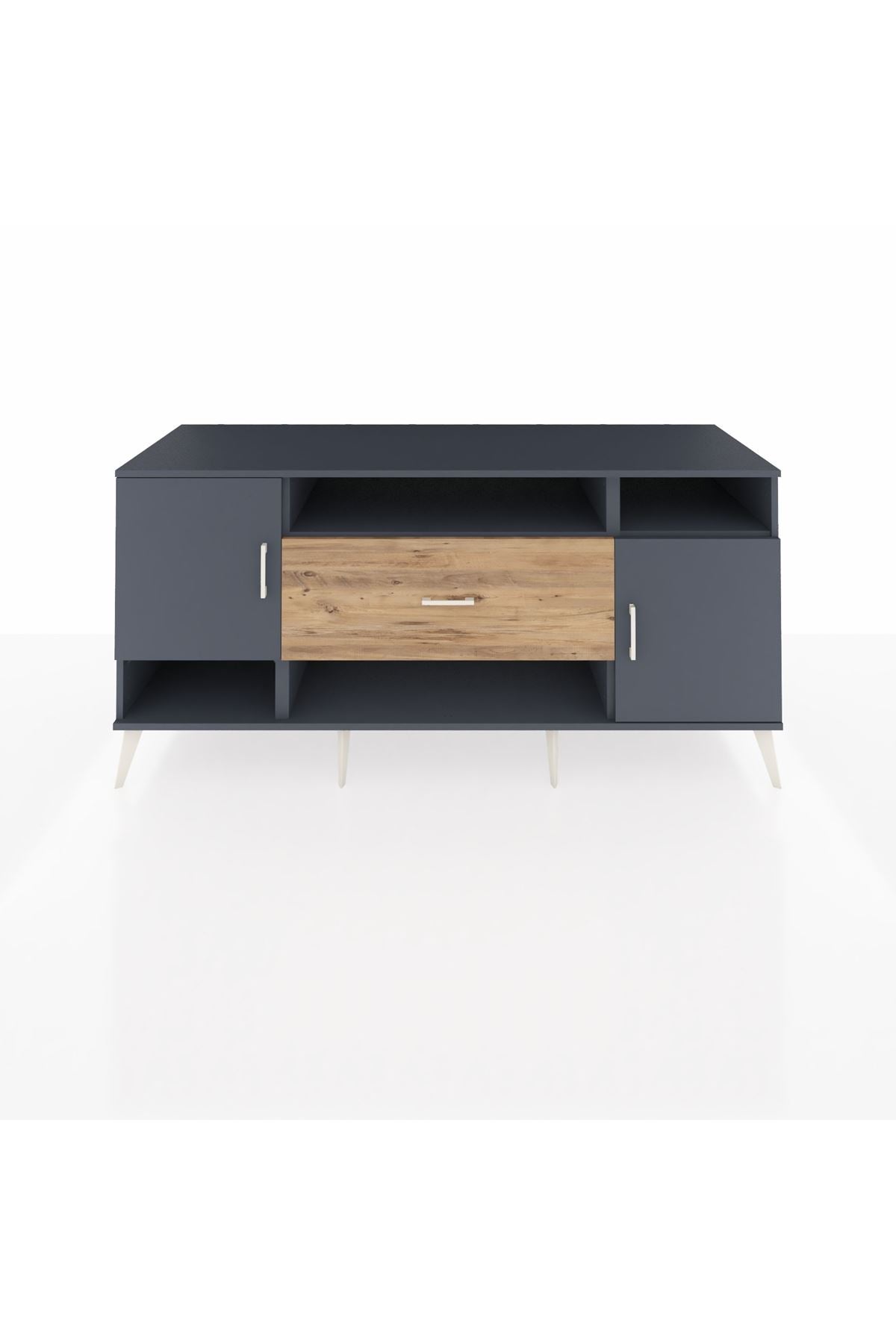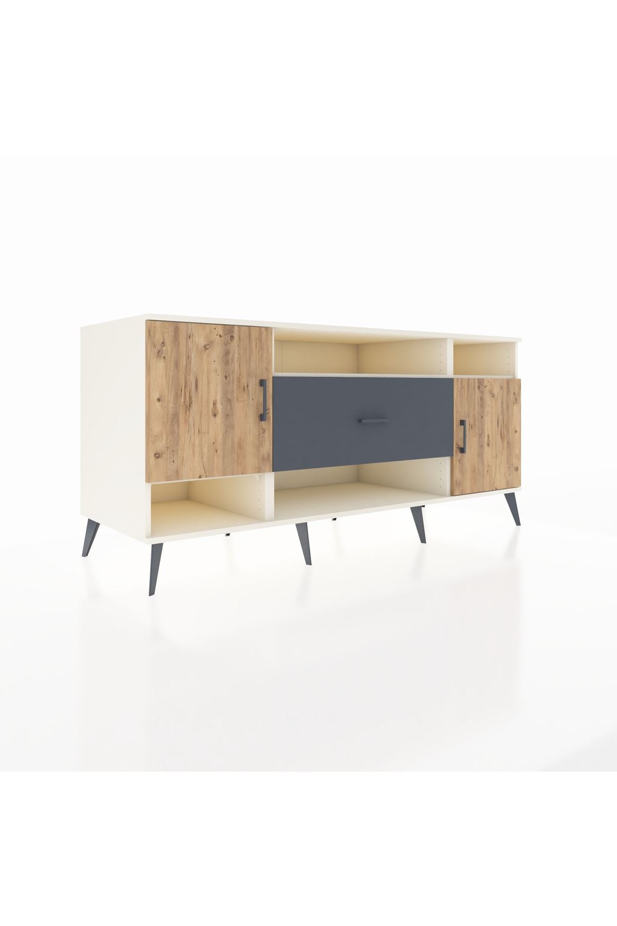 📌 Kronos Konsol 5 Raflı Tek Çekmeceli 2 Kapaklı 176x59x83