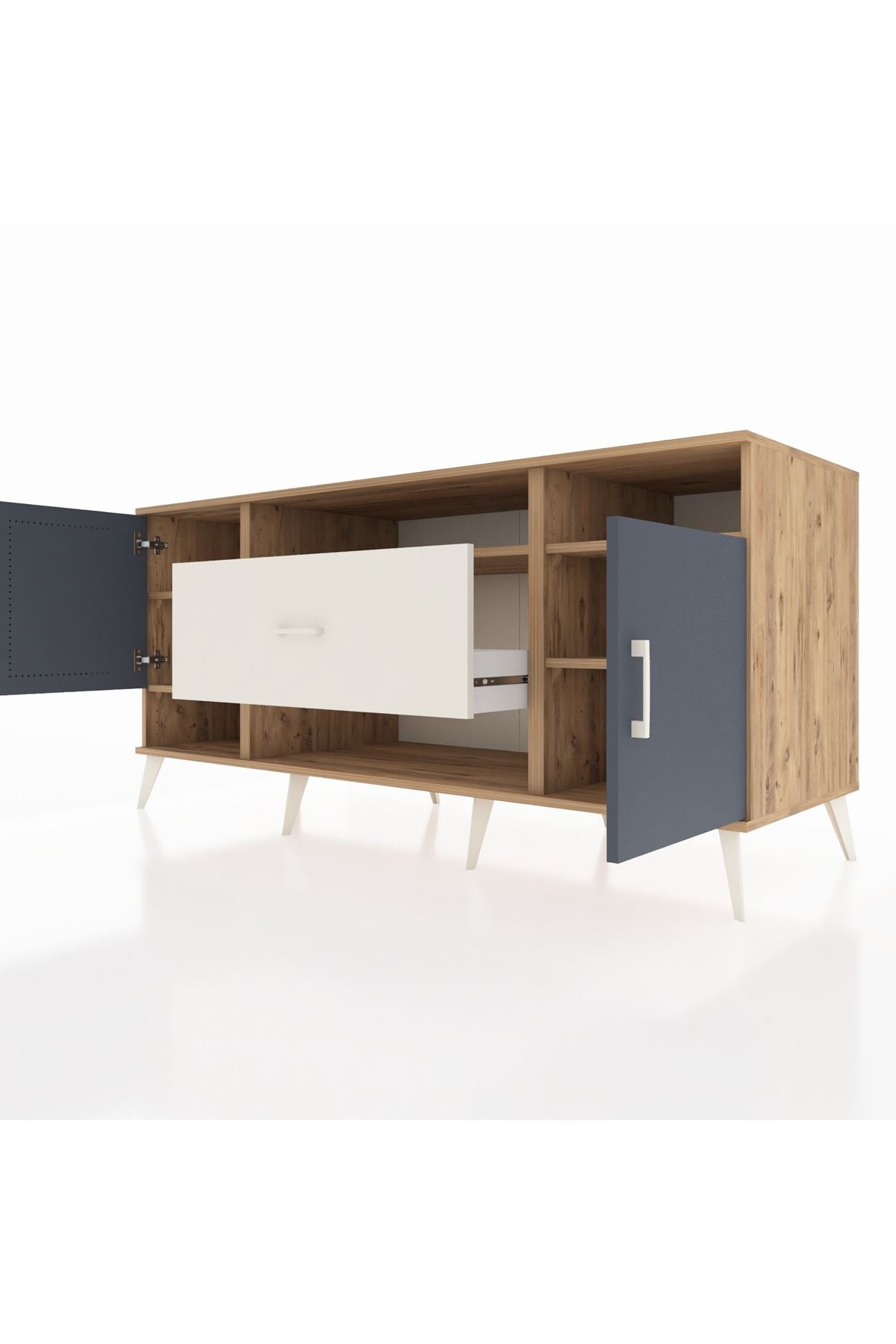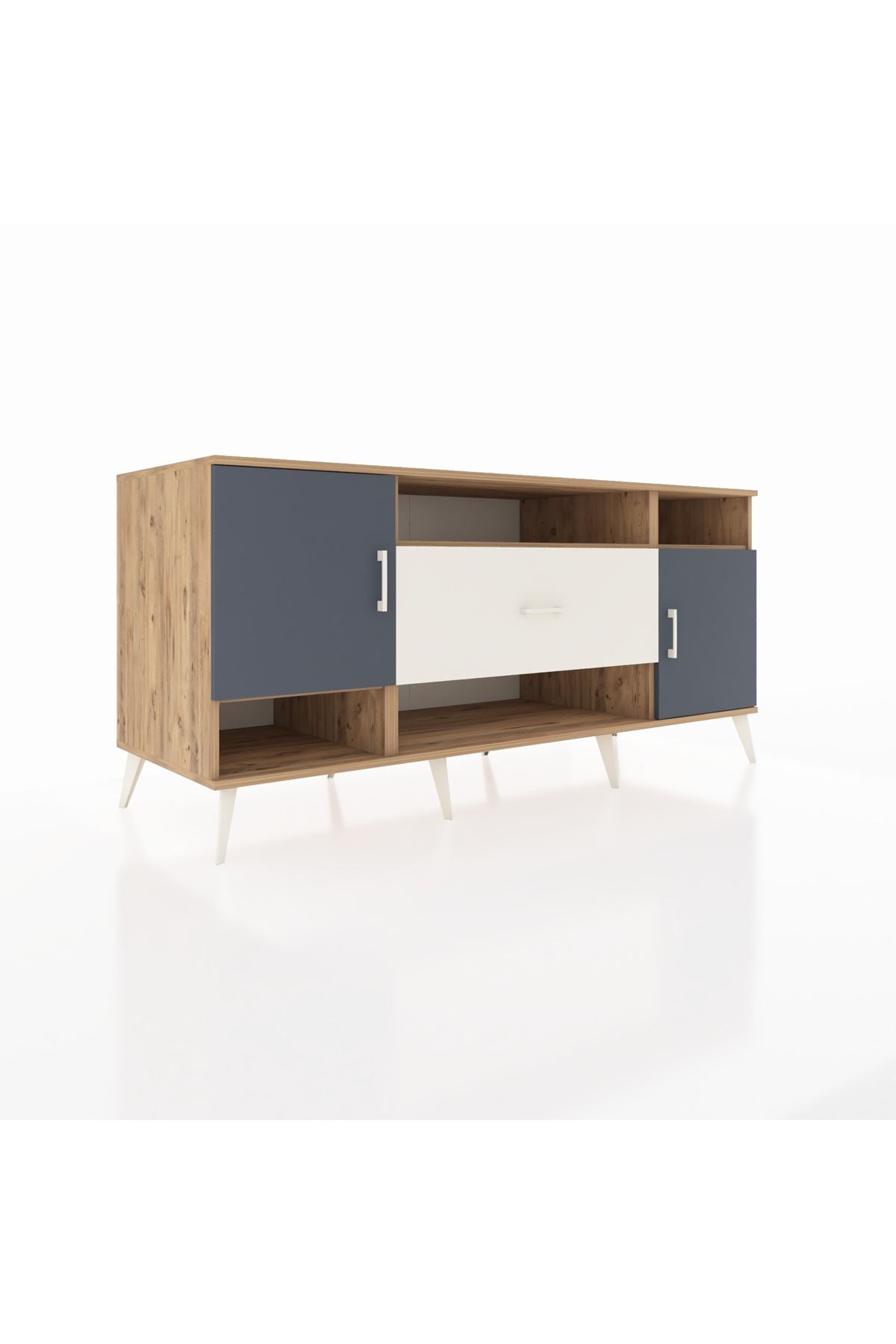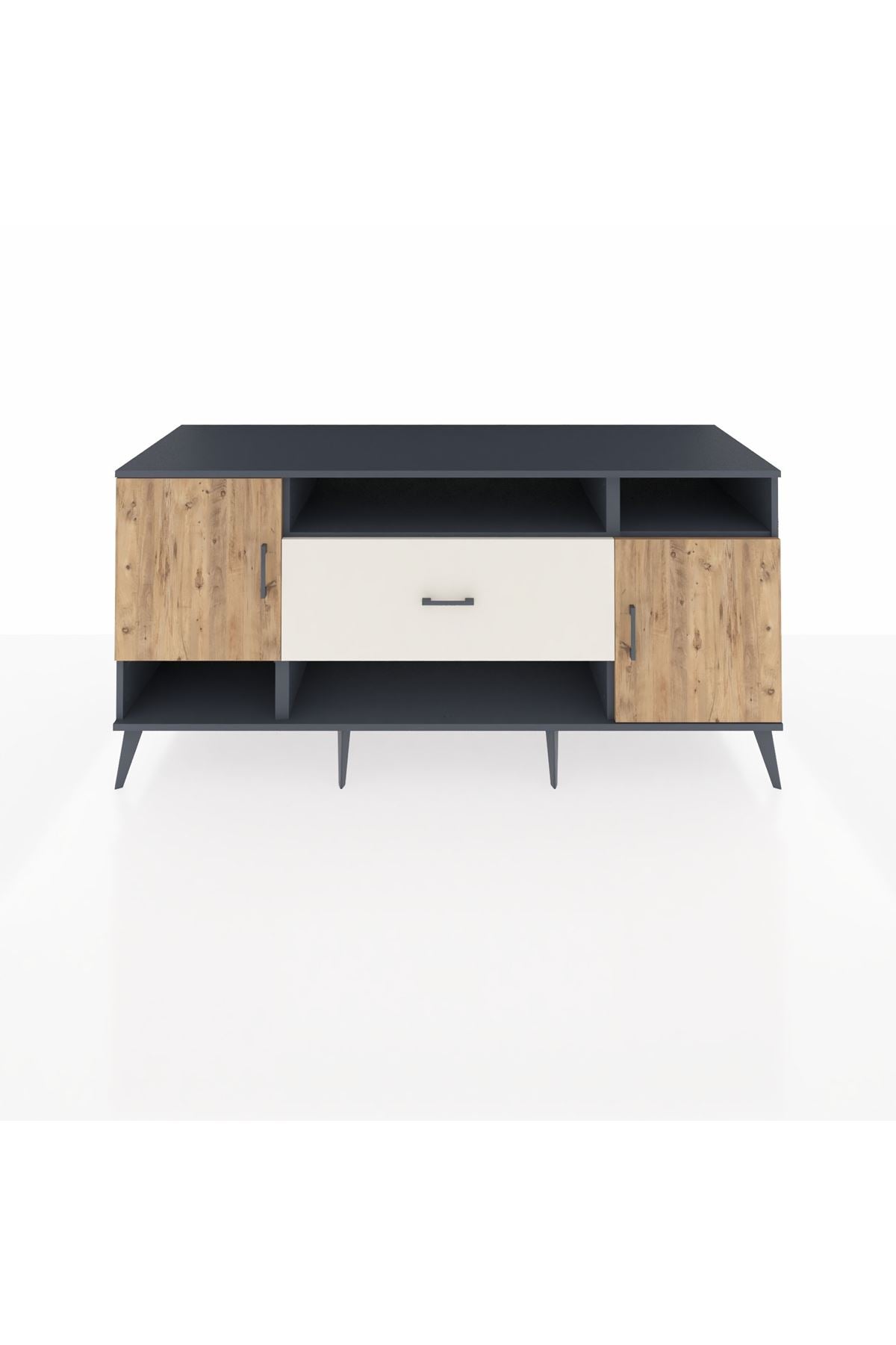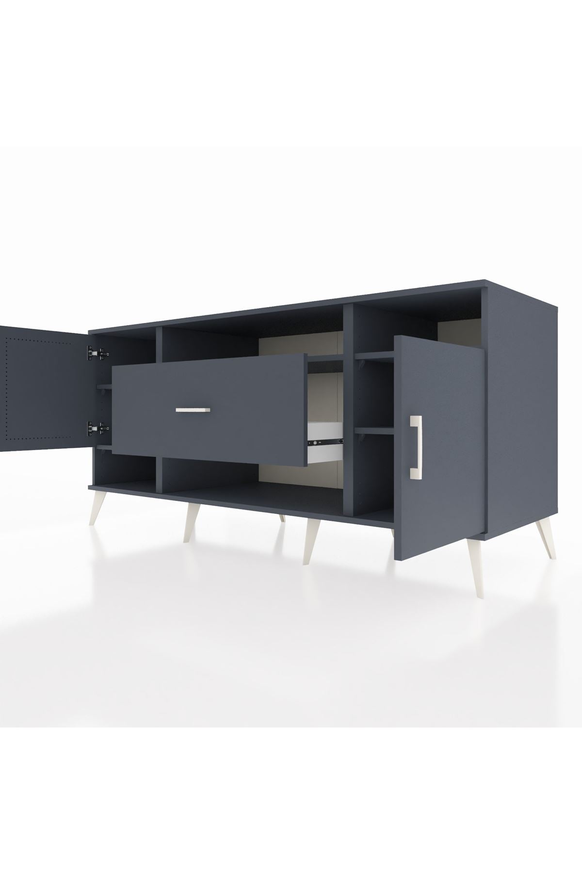 📌 Kronos Konsol 5 Raflı Tek Çekmeceli 2 Kapaklı 176x59x83