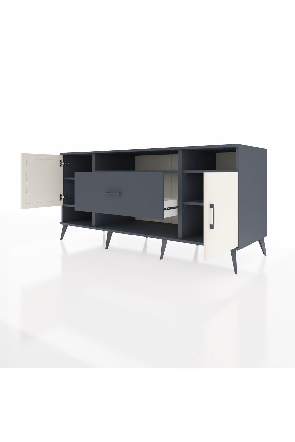 Kronos Konsol 5 Raflı Tek Çekmeceli 2 Kapaklı 176x59x83