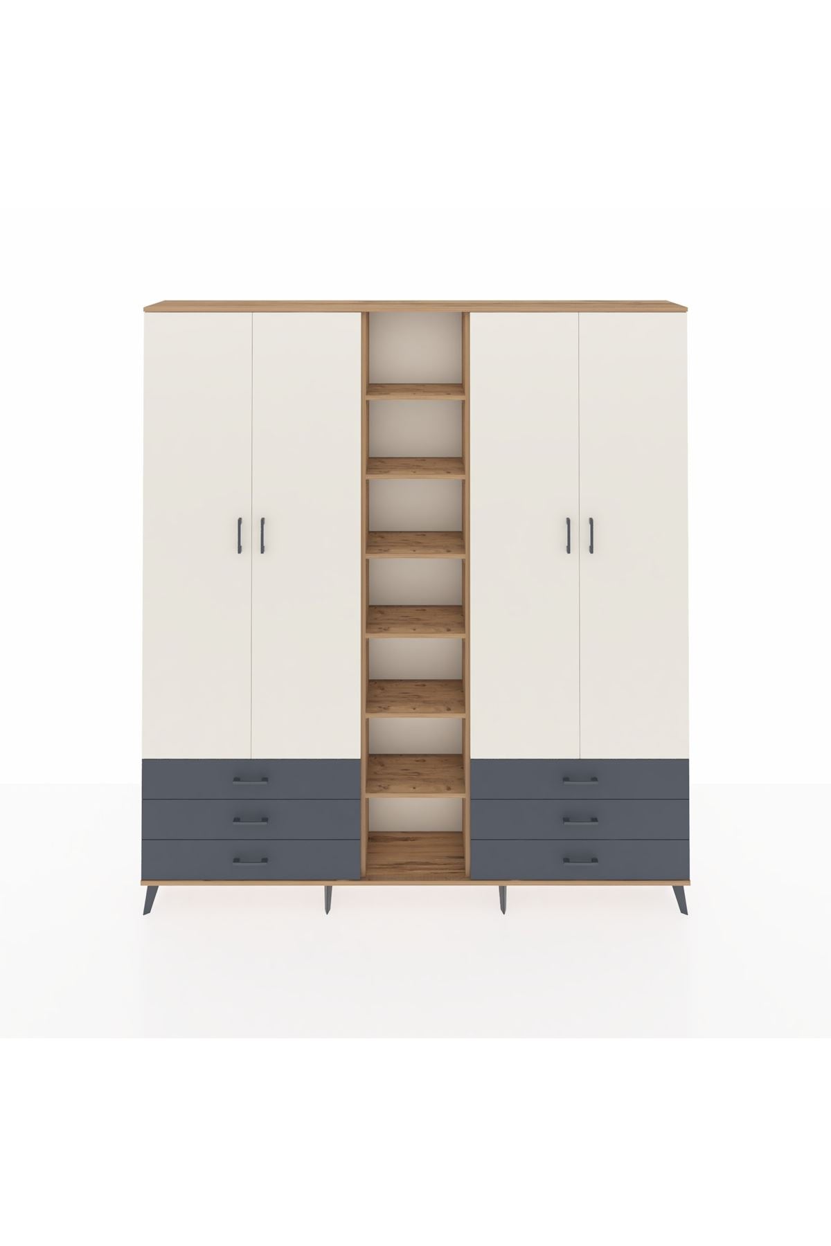 Arges Dolap 13 Raflı 6 Çekmeceli 2 Askılı 220x30x243 Antrasit-Aytaşı/Antrasit