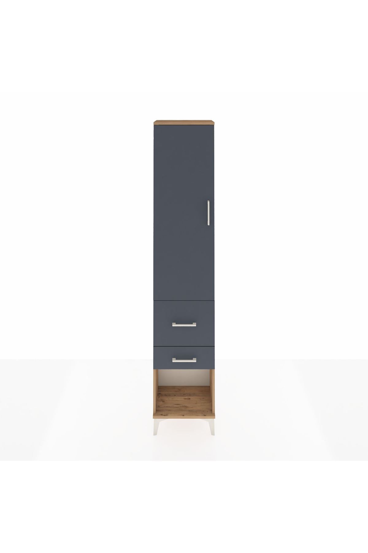 Arges Dolap 2 Raflı 2 Çekmeceli Tek Askılı 44x30x221 Çam-Antrasit