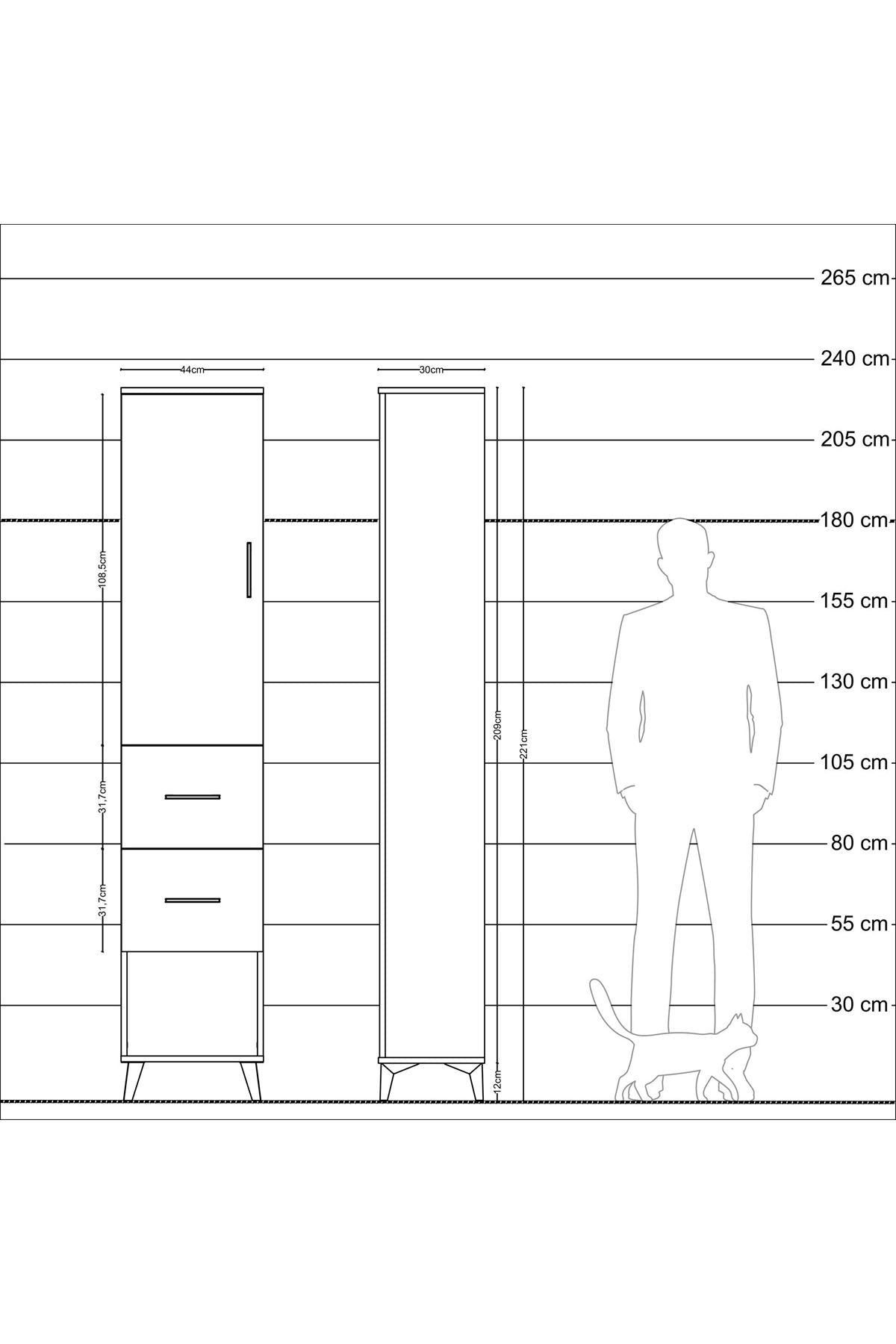 Arges Dolap 2 Raflı 2 Çekmeceli Tek Askılı 44x30x221 Çam-Çam