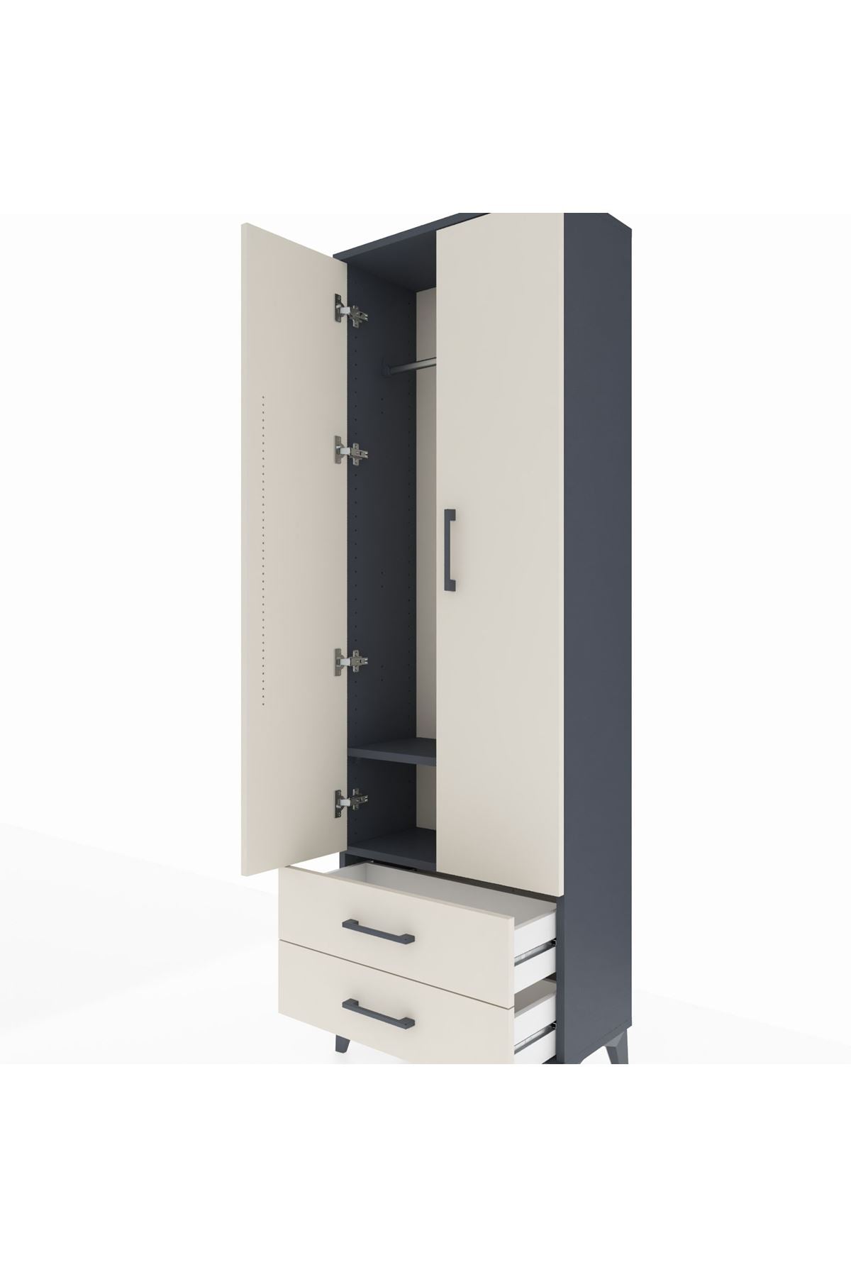 Arges Dolap 2 Raflı 2 Çekmeceli Tek Askılı 60x30x182 Antrasit-Aytaşı