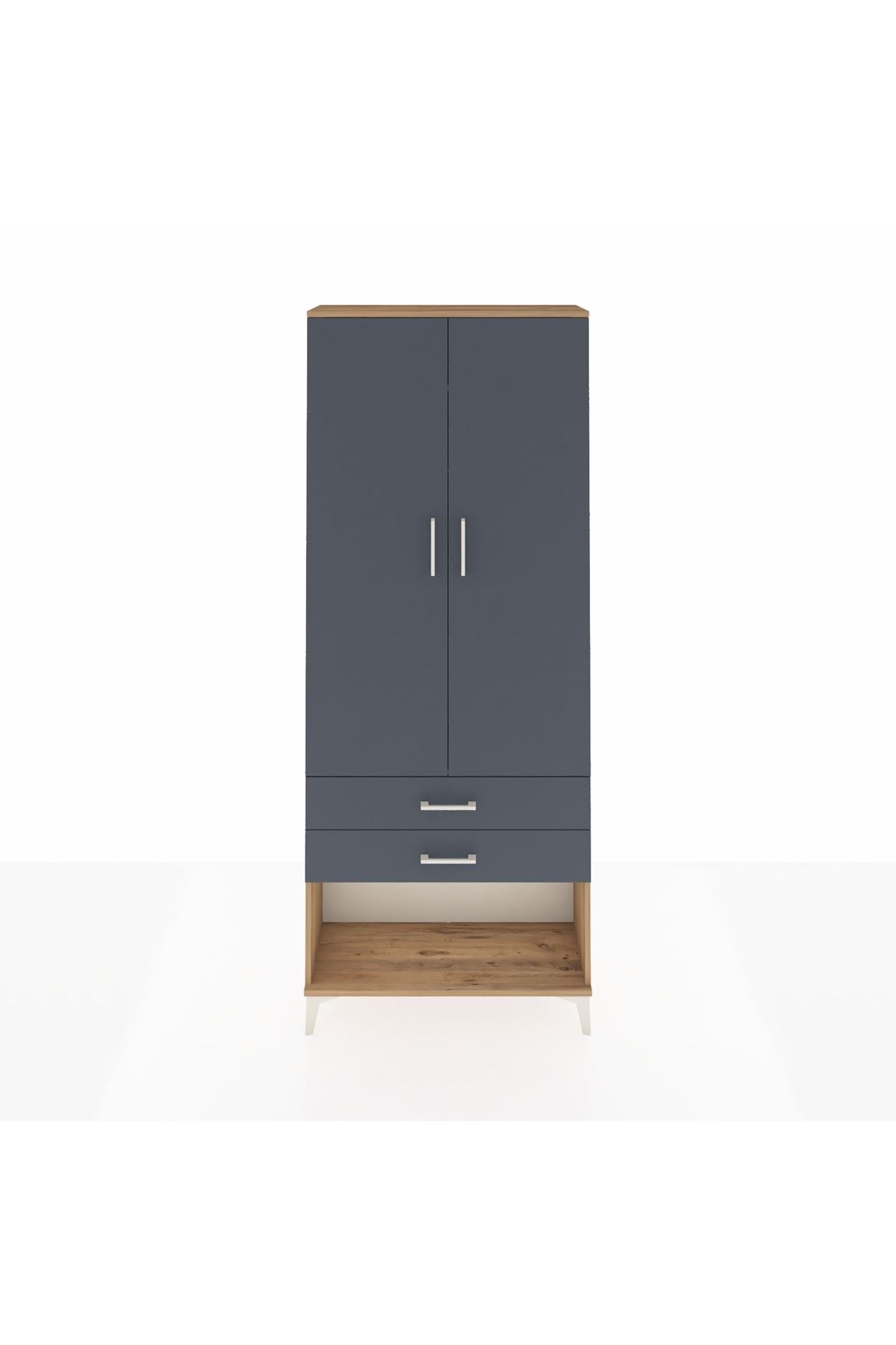Arges Dolap 2 Raflı 2 Çekmeceli Tek Askılı 88x30x221 Çam-Antrasit