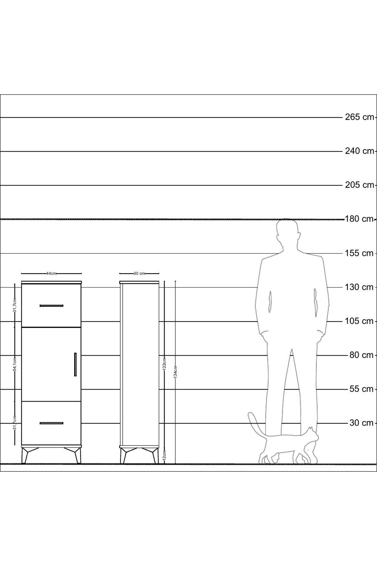 Arges Dolap 2 Raflı 2 Çekmeceli Tek Kapaklı 44x30x134 Çam-Antrasit