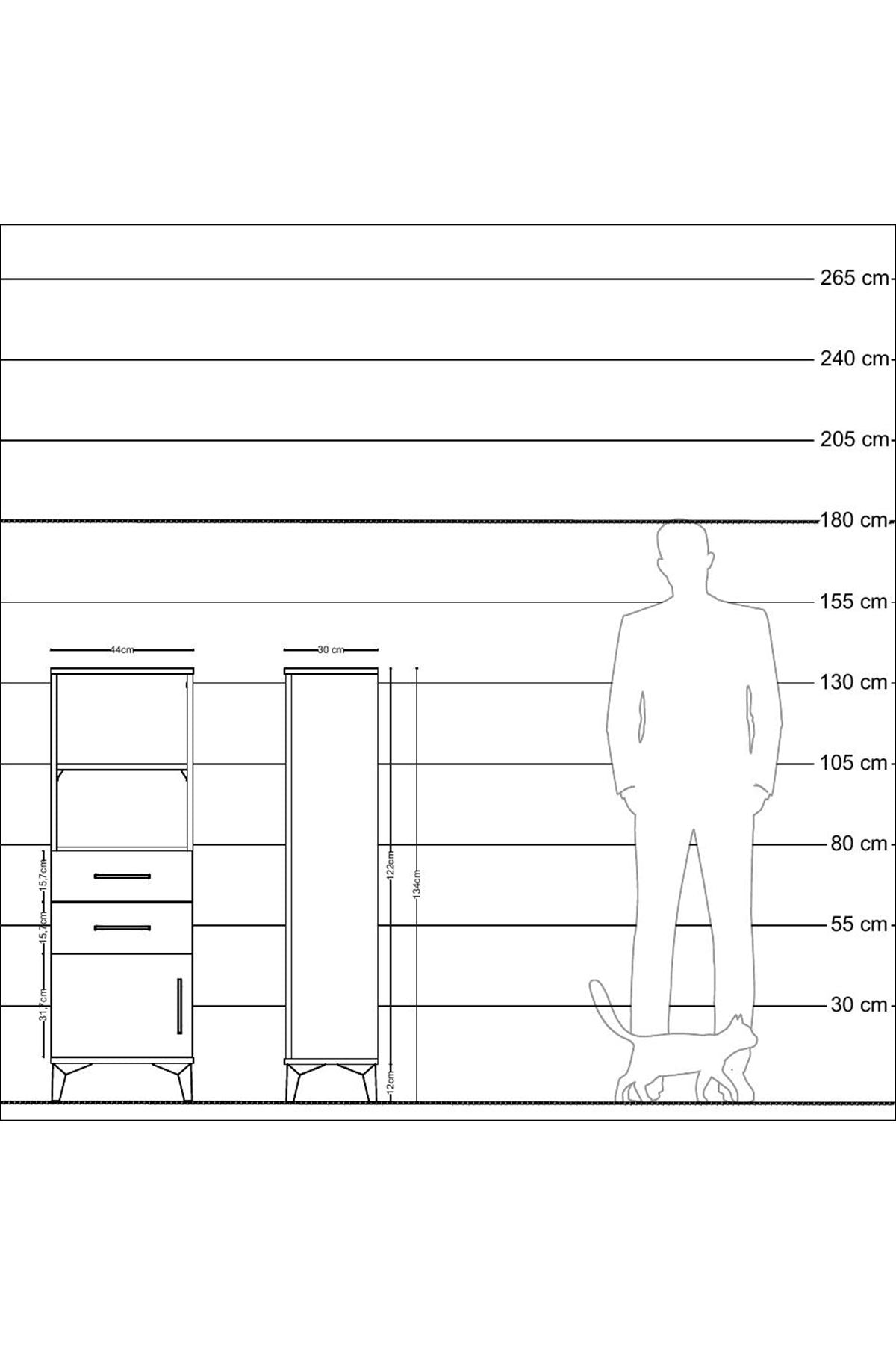 Arges Dolap 2 Raflı 2 Çekmeceli Tek Kapaklı 44x30x134 Çam-Antrasit