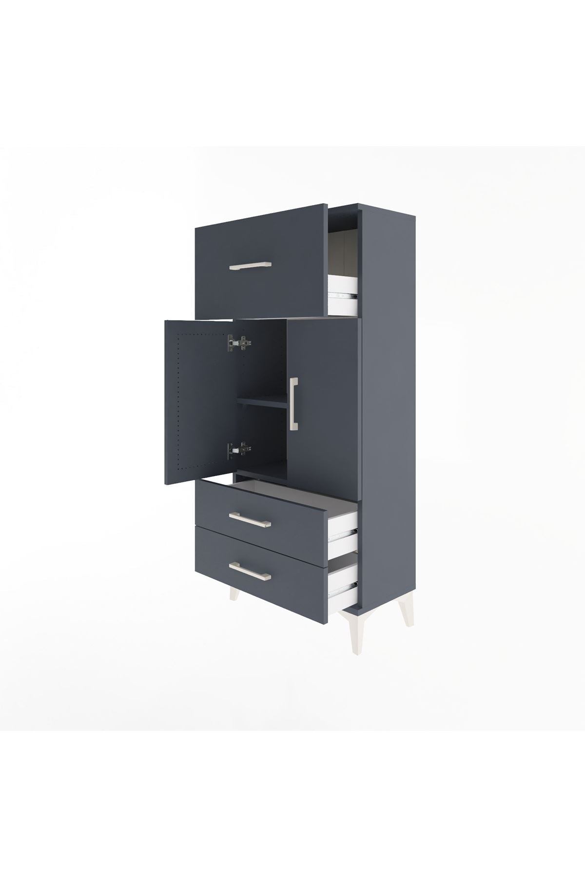 Arges Dolap 2 Raflı 3 Çekmeceli 2 Kapaklı 60x30x134 Antrasit-Antrasit