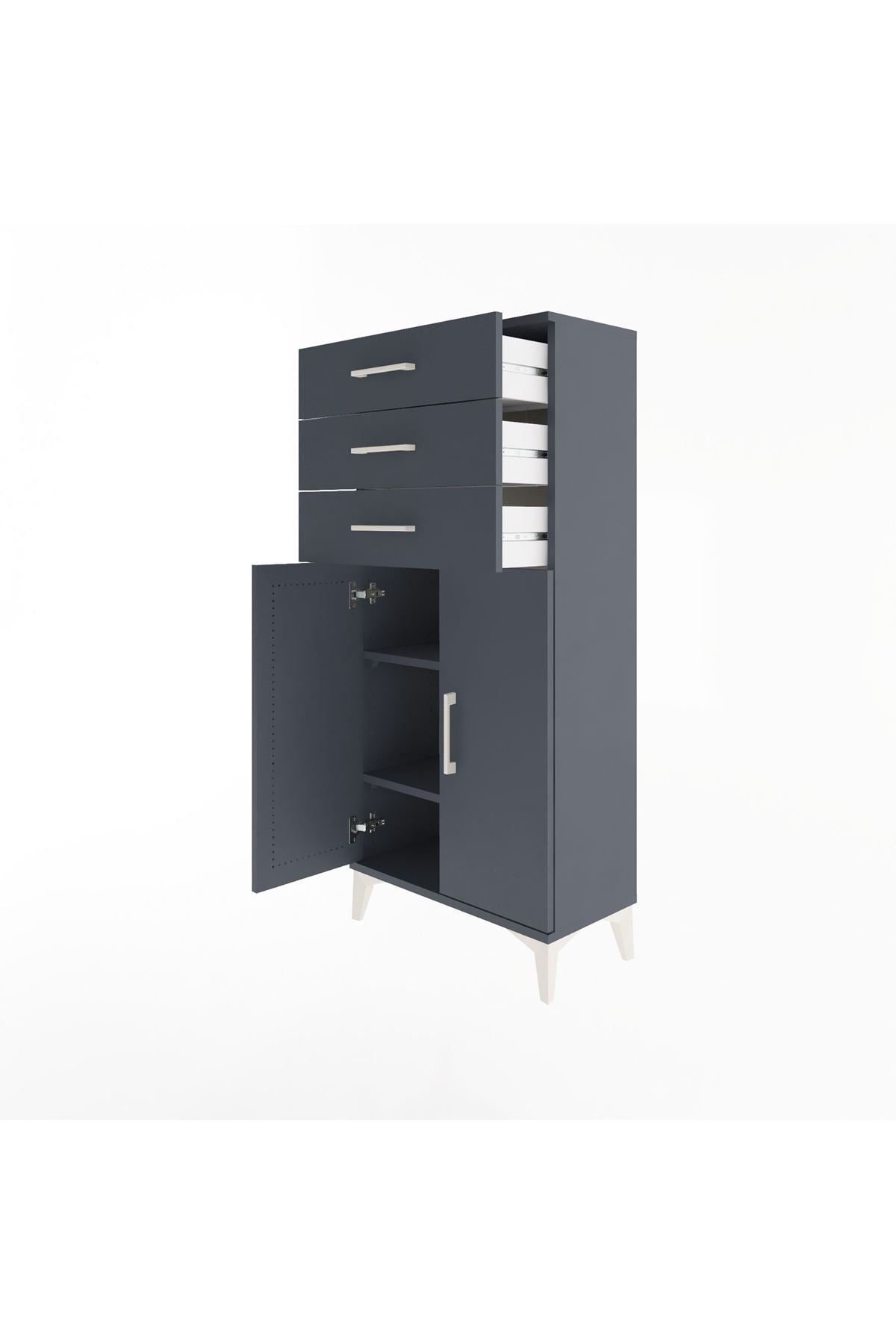 Arges Dolap 2 Raflı 3 Çekmeceli 2 Kapaklı 60x30x134 Antrasit-Antrasit