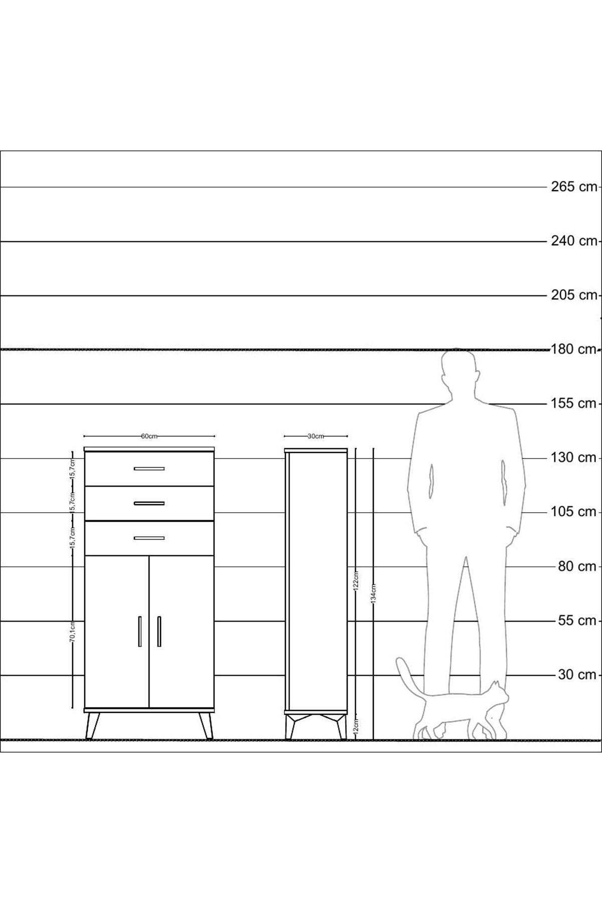 Arges Dolap 2 Raflı 3 Çekmeceli 2 Kapaklı 60x30x134 Aytaşı-Çam