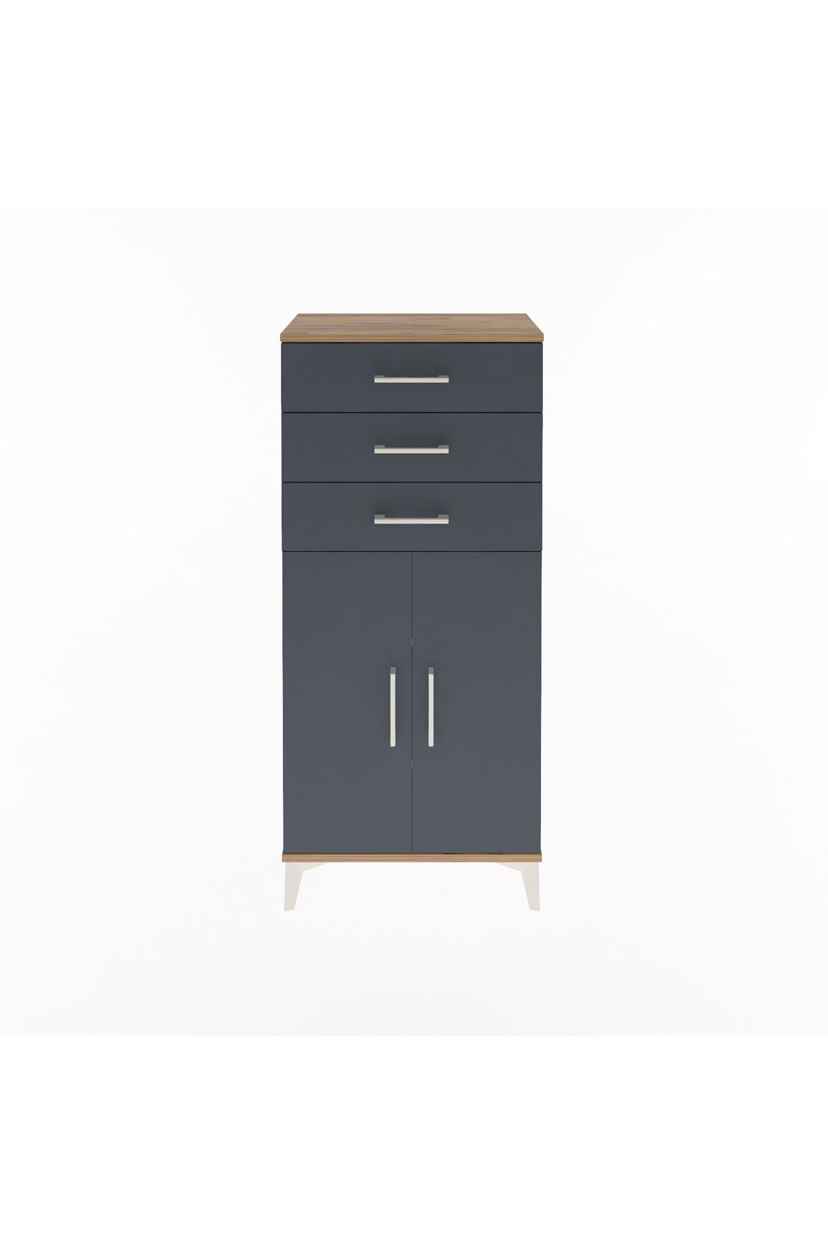 Arges Dolap 2 Raflı 3 Çekmeceli 2 Kapaklı 60x30x134 Çam-Antrasit