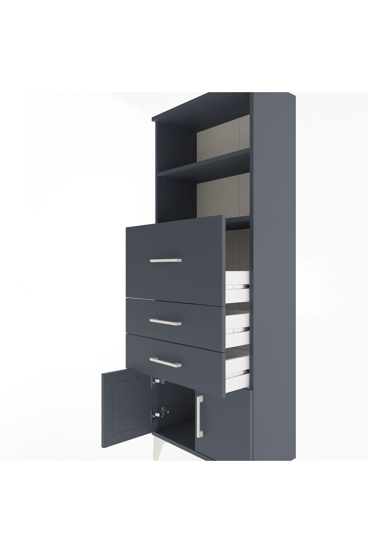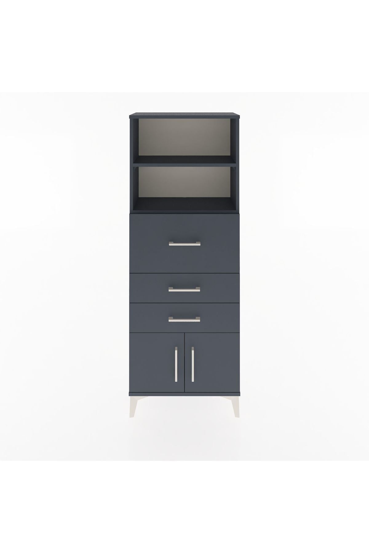 Arges Dolap 2 Raflı 3 Çekmeceli 2 Kapaklı 60x30x163 Antrasit-Antrasit
