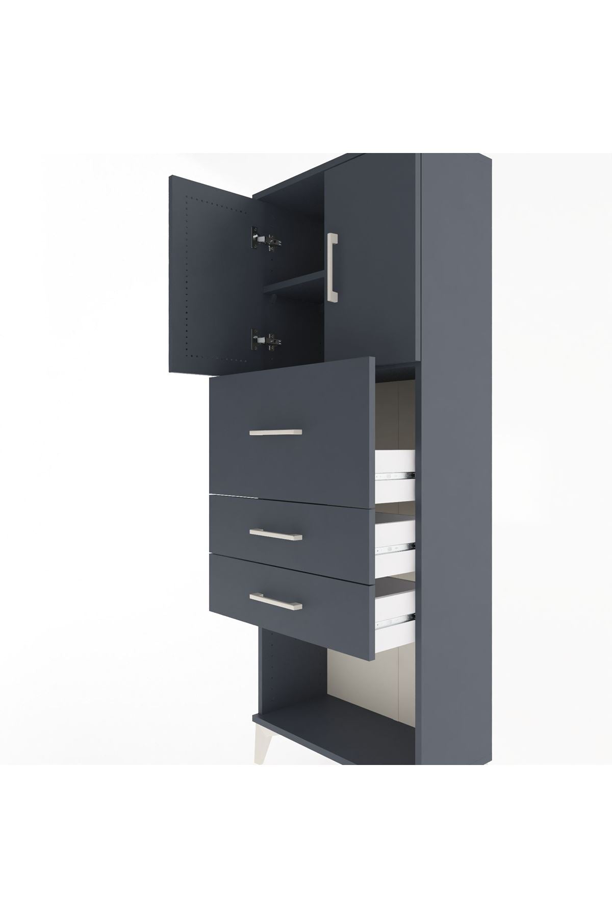 Arges Dolap 2 Raflı 3 Çekmeceli 2 Kapaklı 60x30x163 Antrasit-Antrasit