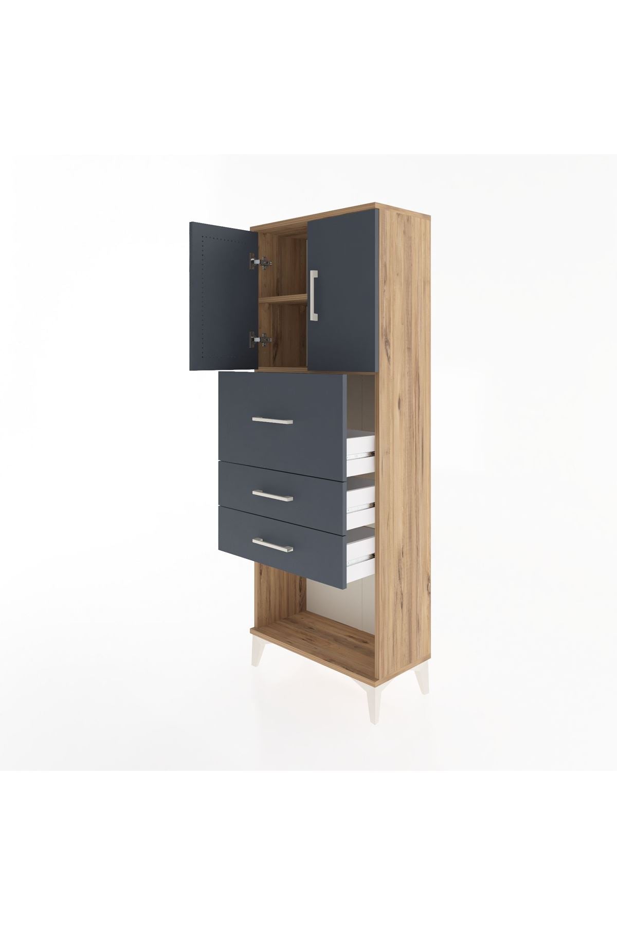 Arges Dolap 2 Raflı 3 Çekmeceli 2 Kapaklı 60x30x163 Çam-Antrasit
