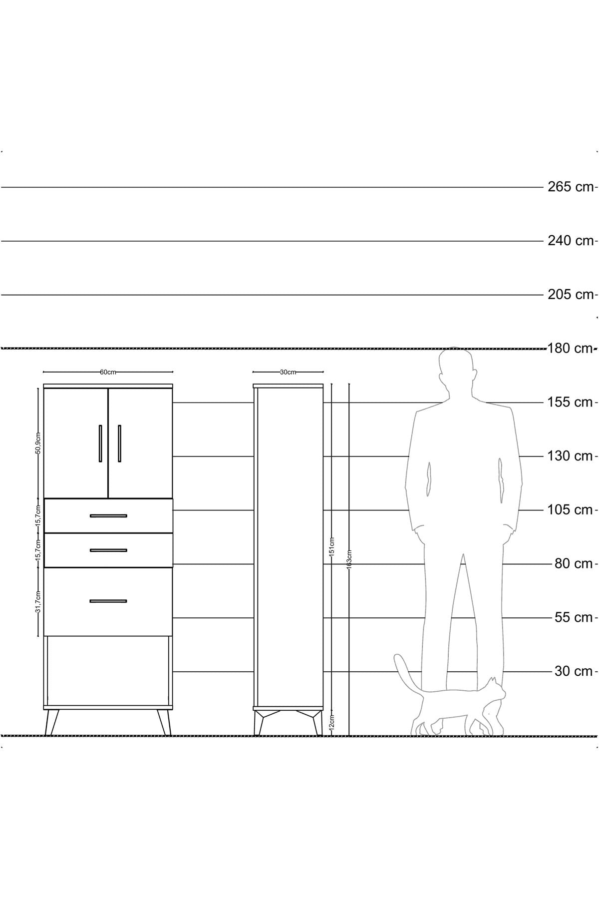 Arges Dolap 2 Raflı 3 Çekmeceli 2 Kapaklı 60x30x163 Çam-Aytaşı