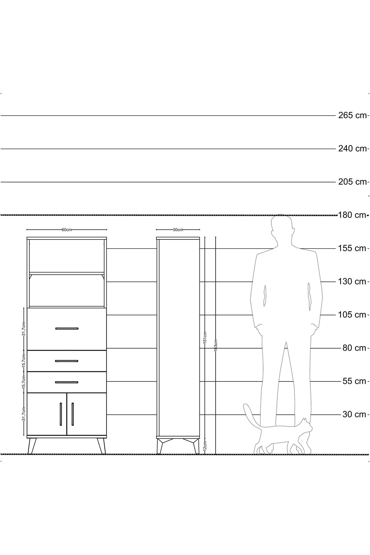 Arges Dolap 2 Raflı 3 Çekmeceli 2 Kapaklı 60x30x163 Çam-Çam