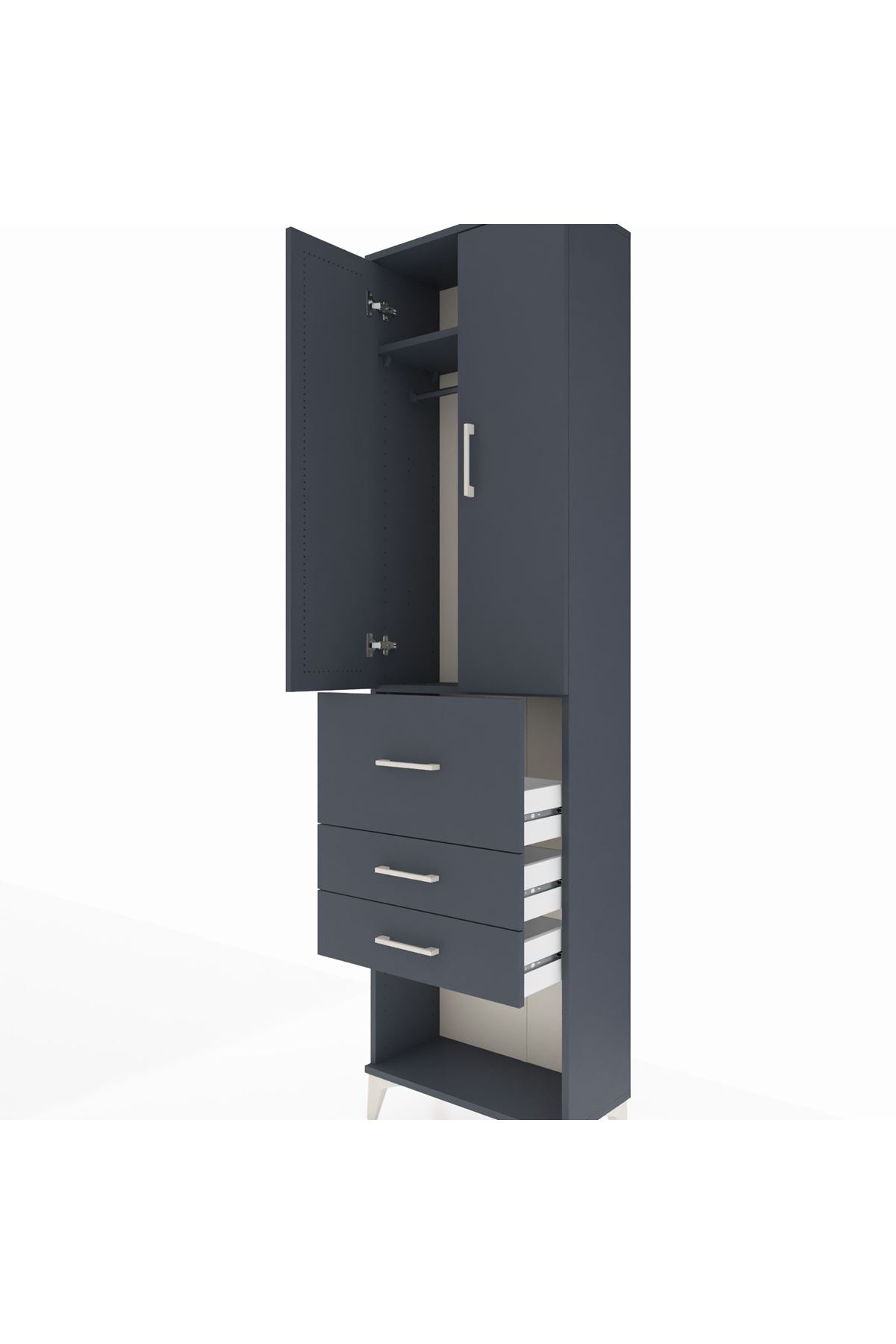 Arges Dolap 2 Raflı 3 Çekmeceli 2 Kapaklı 60x30x221 Antrasit-Antrasit