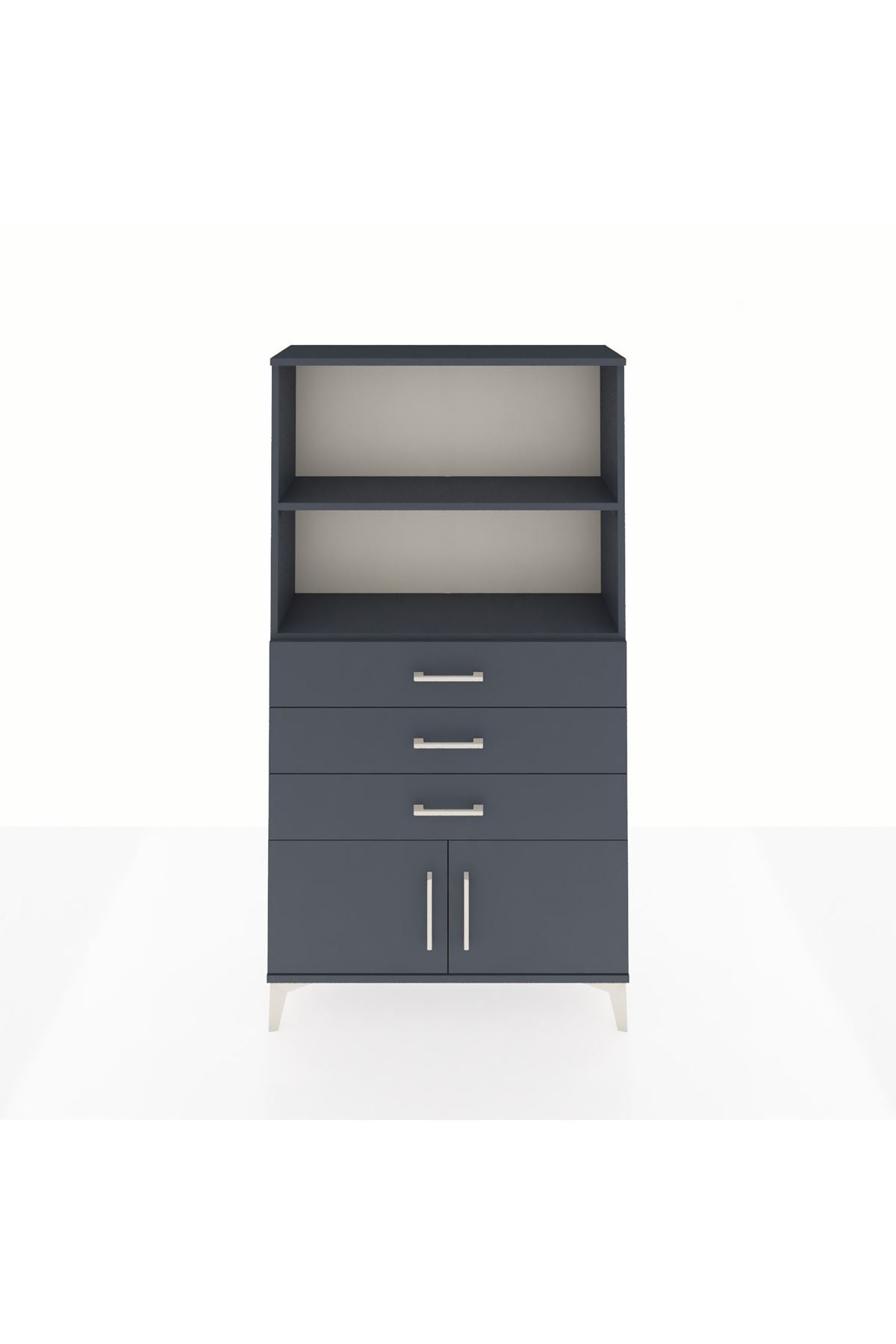 Arges Dolap 2 Raflı 3 Çekmeceli 2 Kapaklı 88x30x163 Antrasit-Antrasit