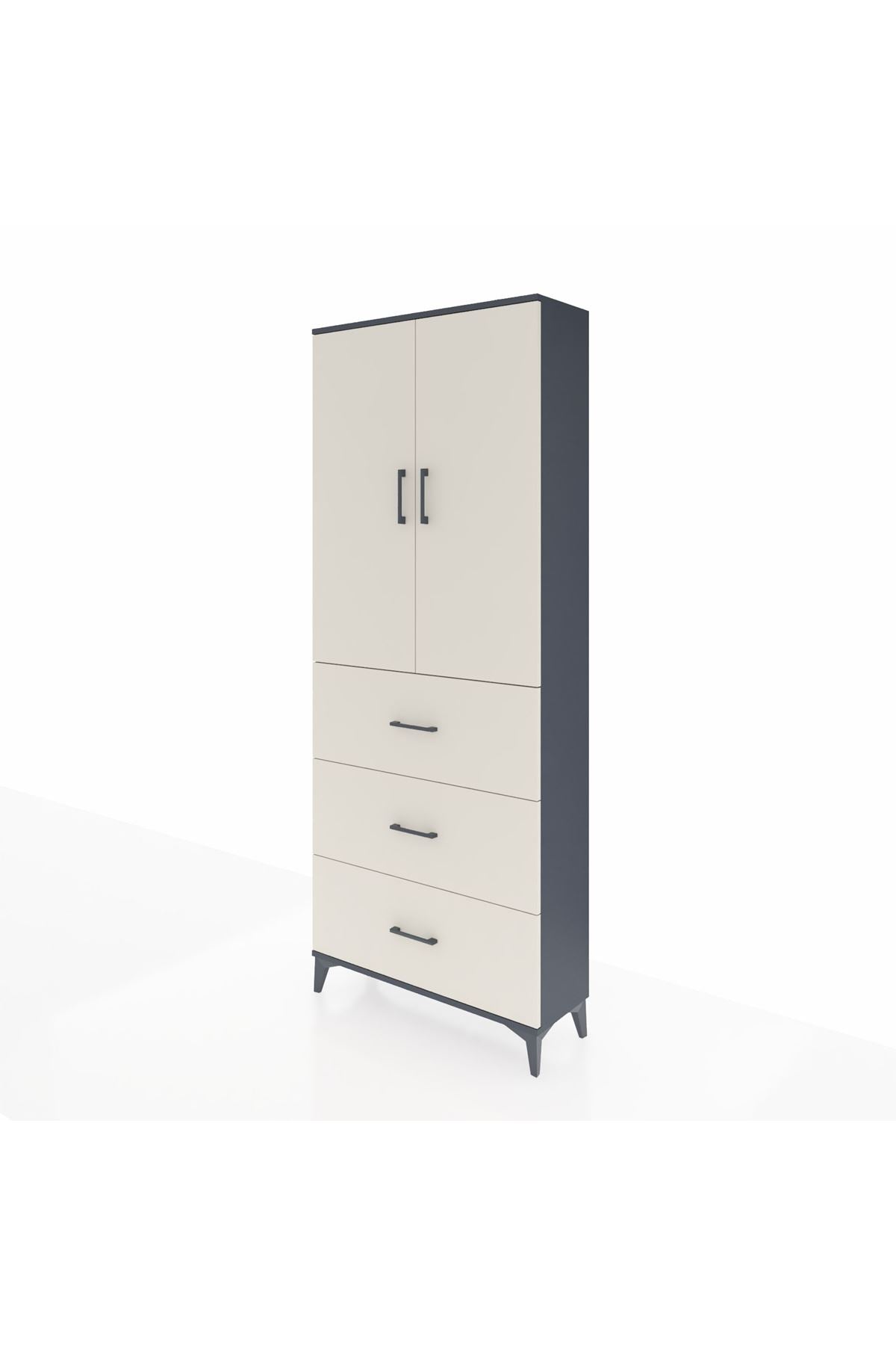 Arges Dolap 2 Raflı 3 Çekmeceli 2 Kapaklı 88x30x221 Antrasit-Aytaşı