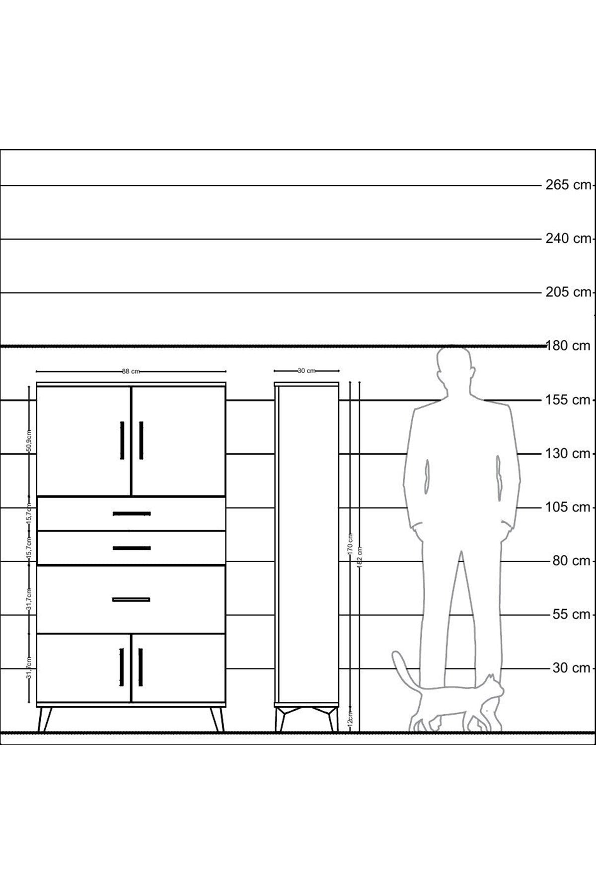 Arges Dolap 2 Raflı 3 Çekmeceli 4 Kapaklı 88x30x163 Aytaşı-Aytaşı