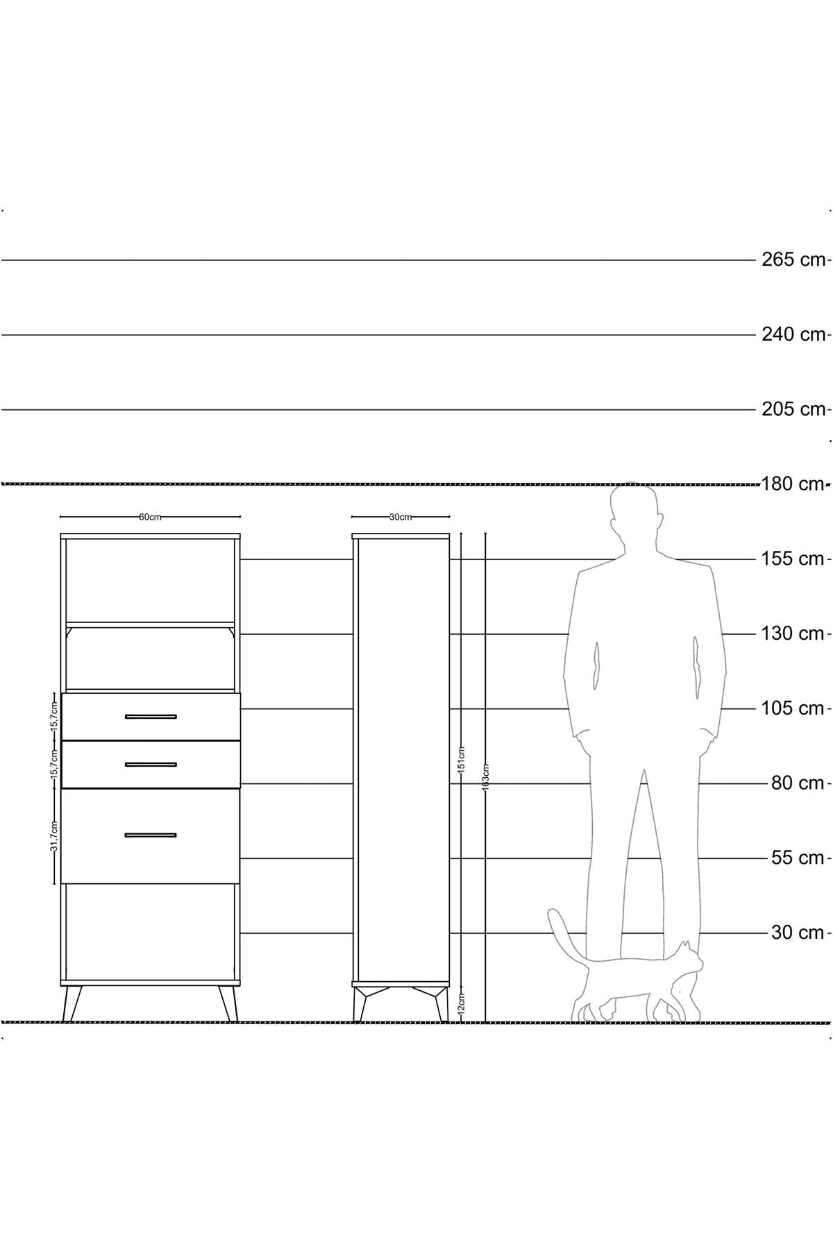 Arges Dolap 2 Raflı 3 Çekmeceli 60x30x163 Aytaşı-Antrasit