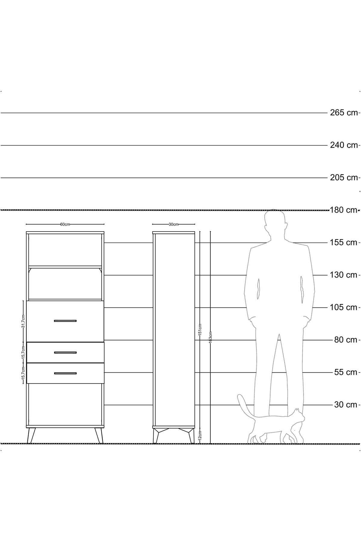 Arges Dolap 2 Raflı 3 Çekmeceli 60x30x163 Çam-Çam