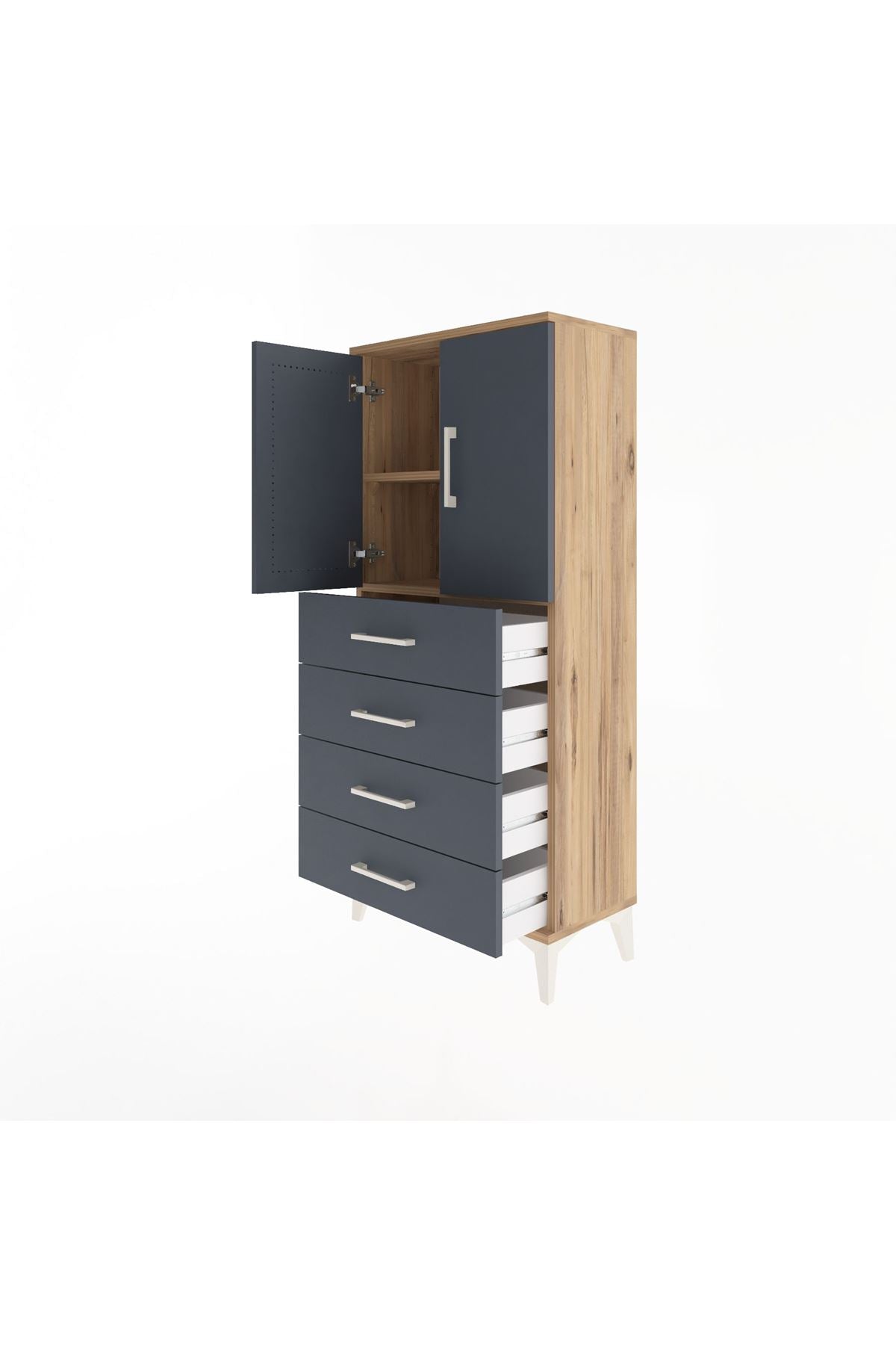 Arges Dolap 2 Raflı 4 Çekmeceli 2 Kapaklı 60x30x134 Çam-Antrasit