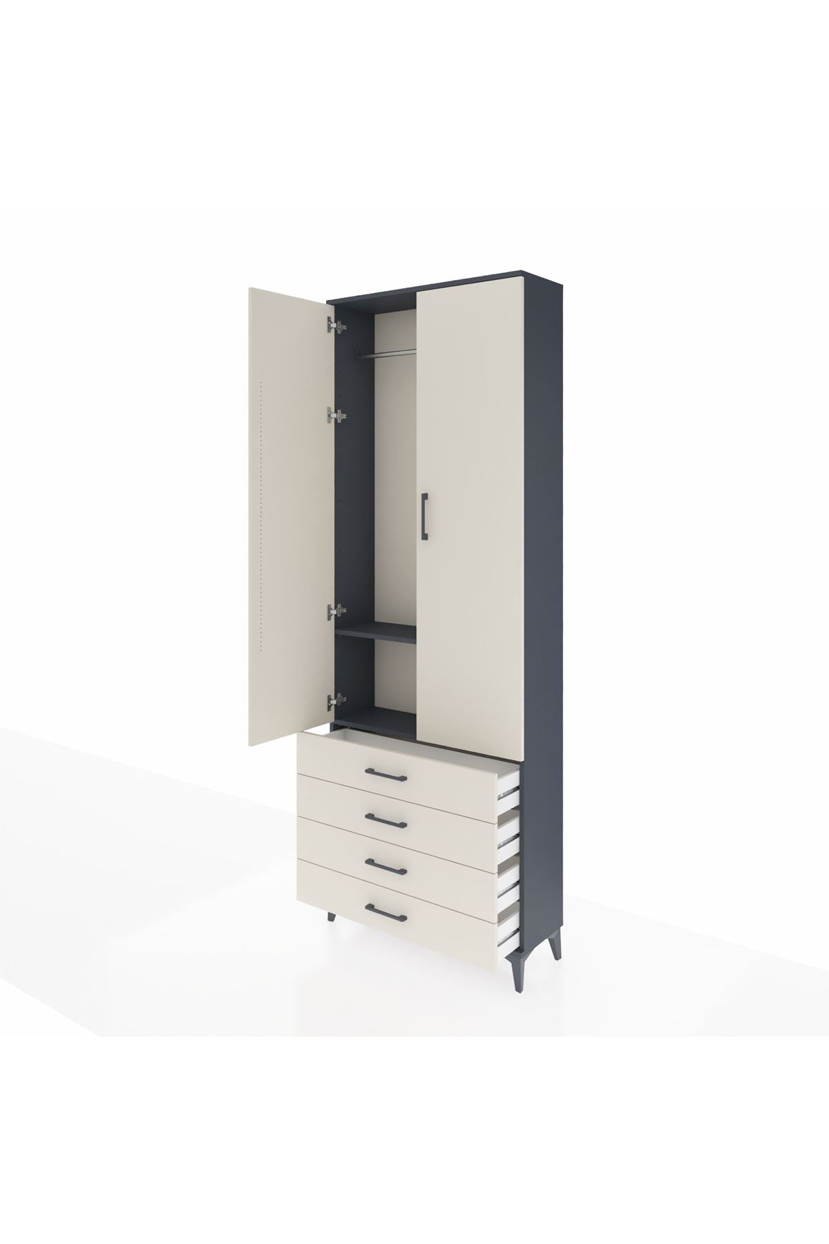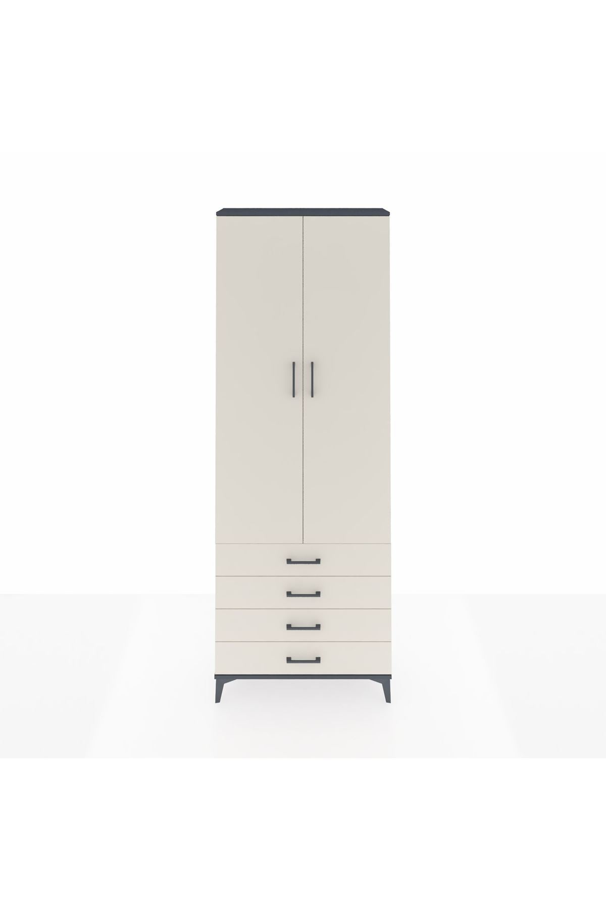 Arges Dolap 2 Raflı 4 Çekmeceli Tek Askılı 88x30x243 Antrasit-Aytaşı